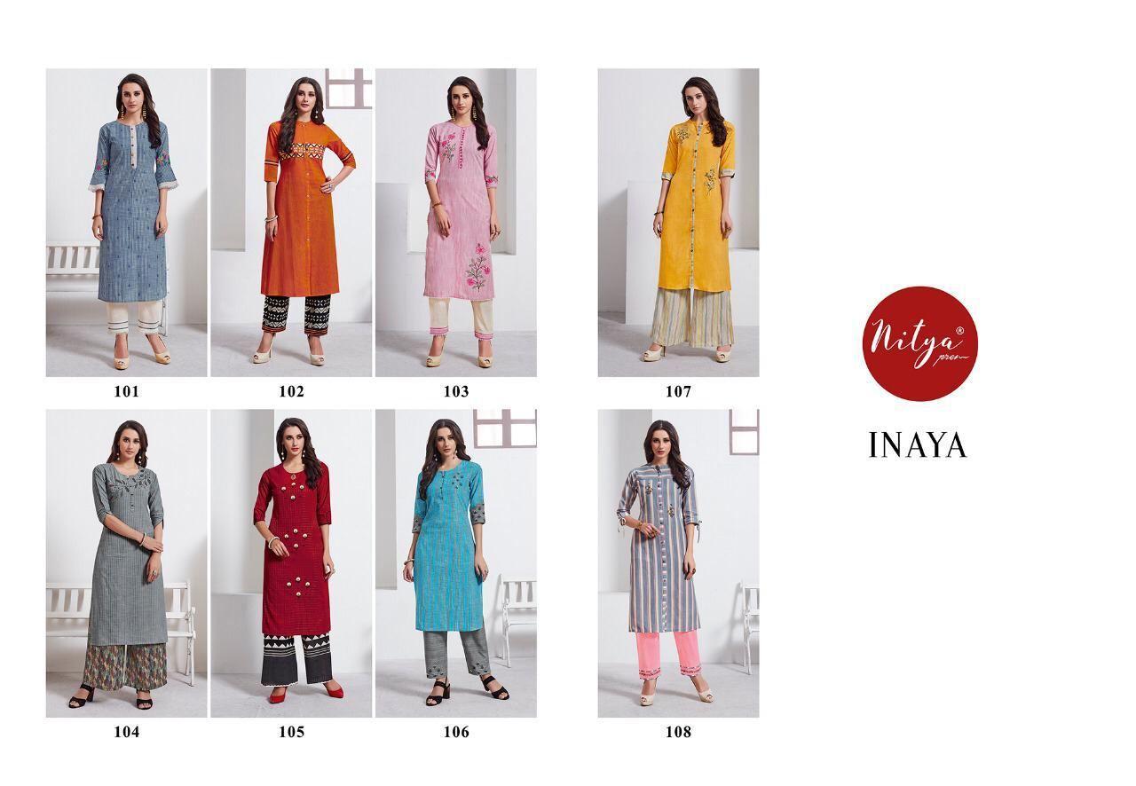 Buy Online Lt Nitya Inaya Kurtis With Bottom Wholesale Supplier And Dealer Surat 8 Pcs of Full Catalogue at Wholesale Price. Looking for Lt Nitya Inaya Kurtis With Bottom Wholesale Supplier And Dealer Surat Full Catalouge at Best Price? Buy Now Lt Nitya Inaya Kurtis With Bottom Wholesale Supplier And Dealer Surat at Wholesale Rate of Rs 7200 with Total 8 Pcs from authroized dealer and supplier of LT FABRICS Brand. Cost of Each piece is just only Rs 900 which is very low and affordable price to resale the product in your retail store ,This is Surat based Wholesale Supplier & Dealer of LT FABRICS Brand. Click on Brand name to Know more about LT FABRICS Brand's products.Call or Whatsapp on 9898838984 for booking or enquiry