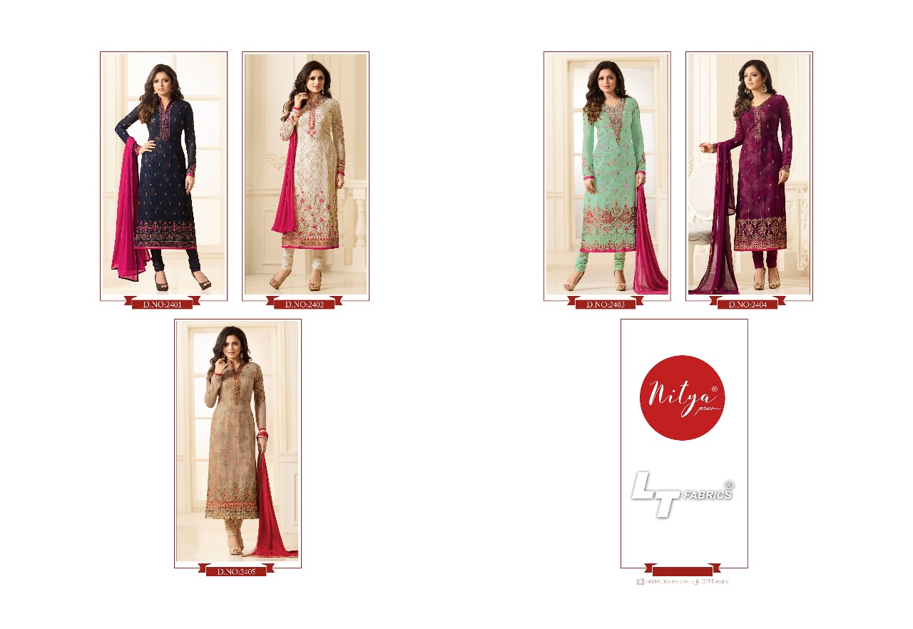 Buy Online Lt Nitya Vol 114 2401 Series Designer Salwar Kameez Collection Wholesale Dealer Surat 5 Pcs of Full Catalogue at Wholesale Price. Looking for Lt Nitya Vol 114 2401 Series Designer Salwar Kameez Collection Wholesale Dealer Surat Full Catalouge at Best Price? Buy Now Lt Nitya Vol 114 2401 Series Designer Salwar Kameez Collection Wholesale Dealer Surat at Wholesale Rate of Rs 6995 with Total 5 Pcs from authroized dealer and supplier of LT FABRICS Brand. Cost of Each piece is just only Rs 1399 which is very low and affordable price to resale the product in your retail store ,This is Surat based Wholesale Supplier & Dealer of LT FABRICS Brand. Click on Brand name to Know more about LT FABRICS Brand's products.Call or Whatsapp on 9898838984 for booking or enquiry