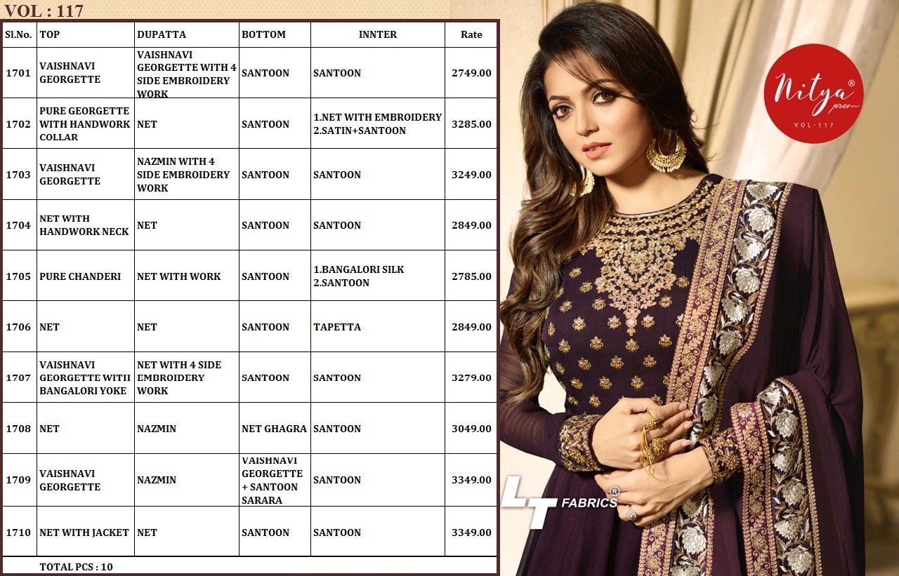 Lt Nitya Vol 117 1701 Series Designer Gown Suit Dealer Surat