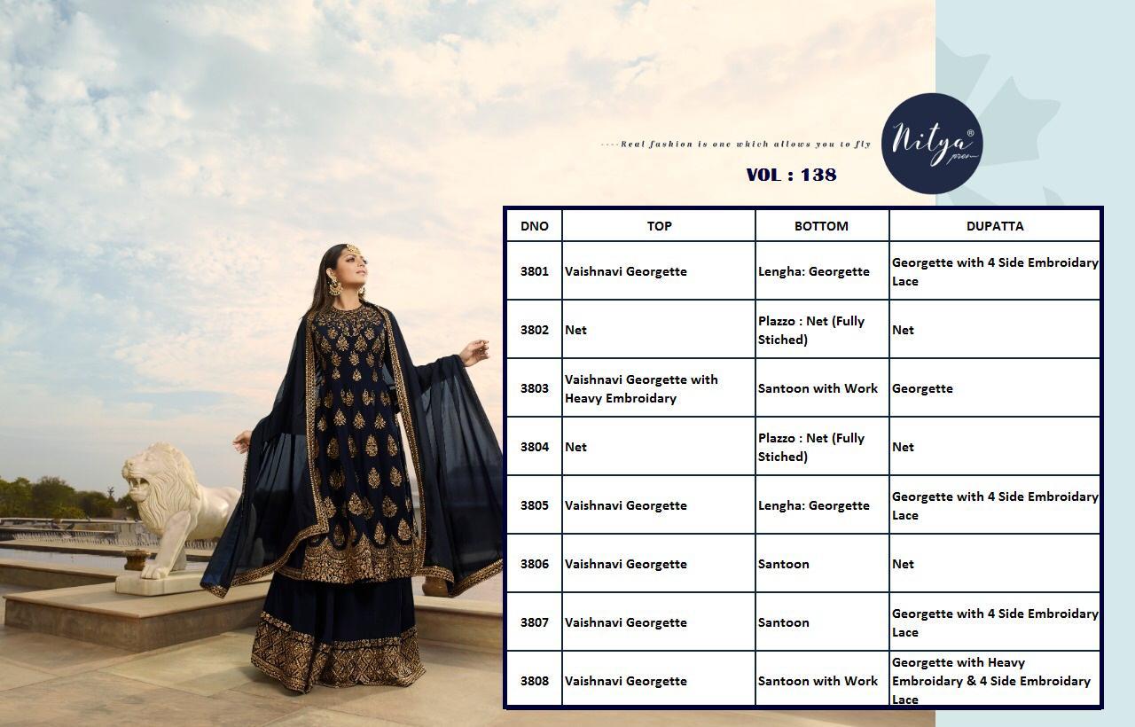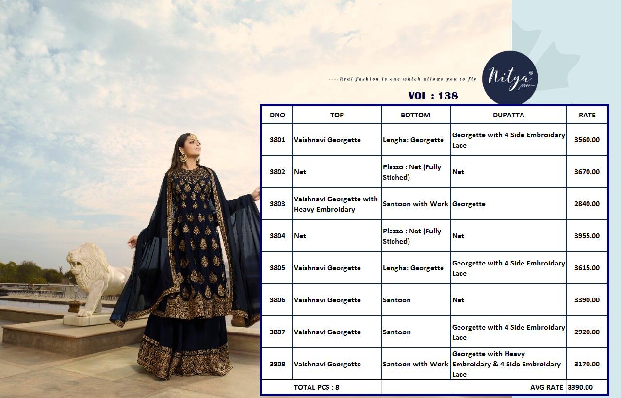 *Lt Nitya Vol 138* *Rates n fabrics in pictures * *Gst 5% Extta * *Dispached after 3 Days * |