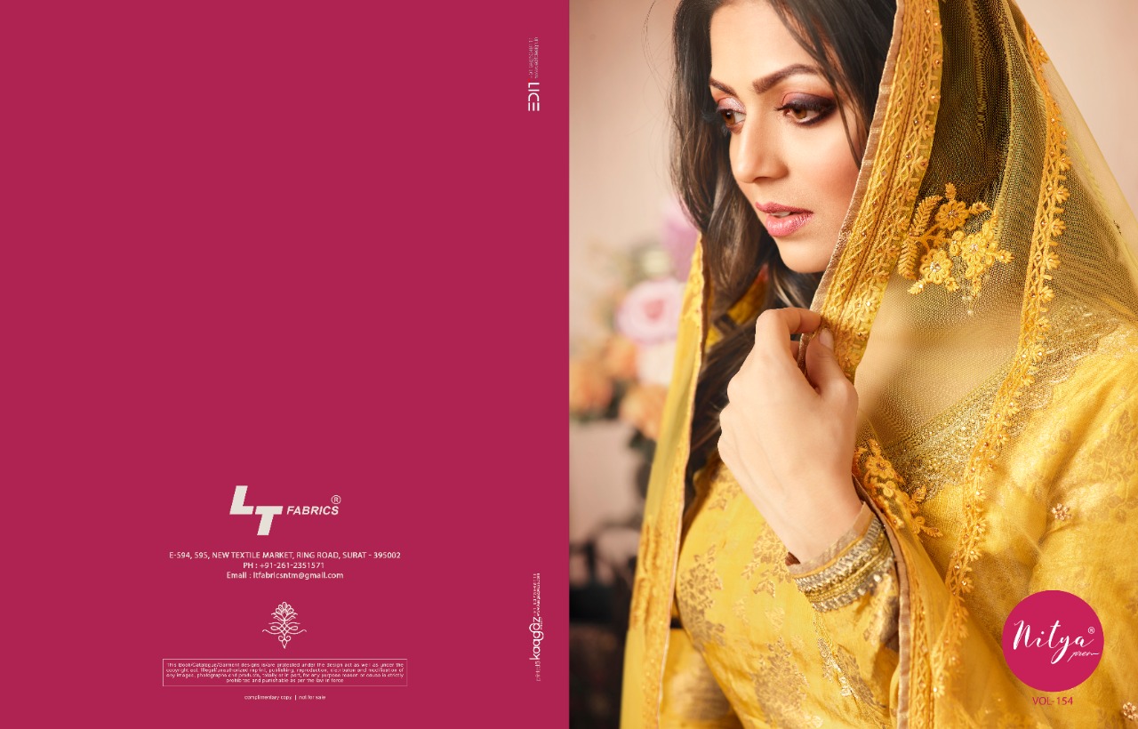 Buy Online Lt Nitya Vol 154 Series 5401 To 5407 Designer Party Wear Suits Set And Single Wholesale Supplier And Dealer Gujarat 7 Pcs of Full Catalogue at Wholesale Price. Looking for Lt Nitya Vol 154 Series 5401 To 5407 Designer Party Wear Suits Set And Single Wholesale Supplier And Dealer Gujarat Full Catalouge at Best Price? Buy Now Lt Nitya Vol 154 Series 5401 To 5407 Designer Party Wear Suits Set And Single Wholesale Supplier And Dealer Gujarat at Wholesale Rate of Rs 22750 with Total 7 Pcs from authroized dealer and supplier of LT FABRICS Brand. Cost of Each piece is just only Rs 3250 which is very low and affordable price to resale the product in your retail store ,This is Surat based Wholesale Supplier & Dealer of LT FABRICS Brand. Click on Brand name to Know more about LT FABRICS Brand's products.Call or Whatsapp on 9898838984 for booking or enquiry