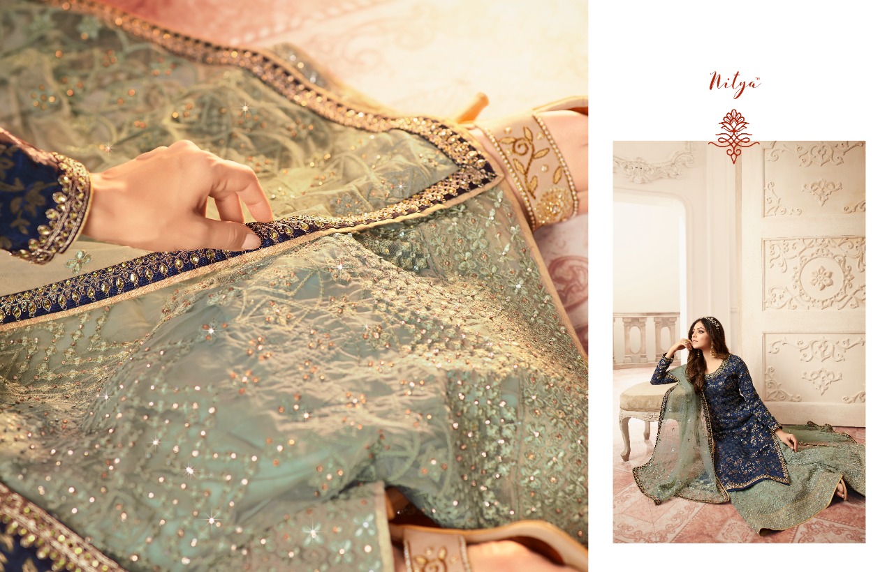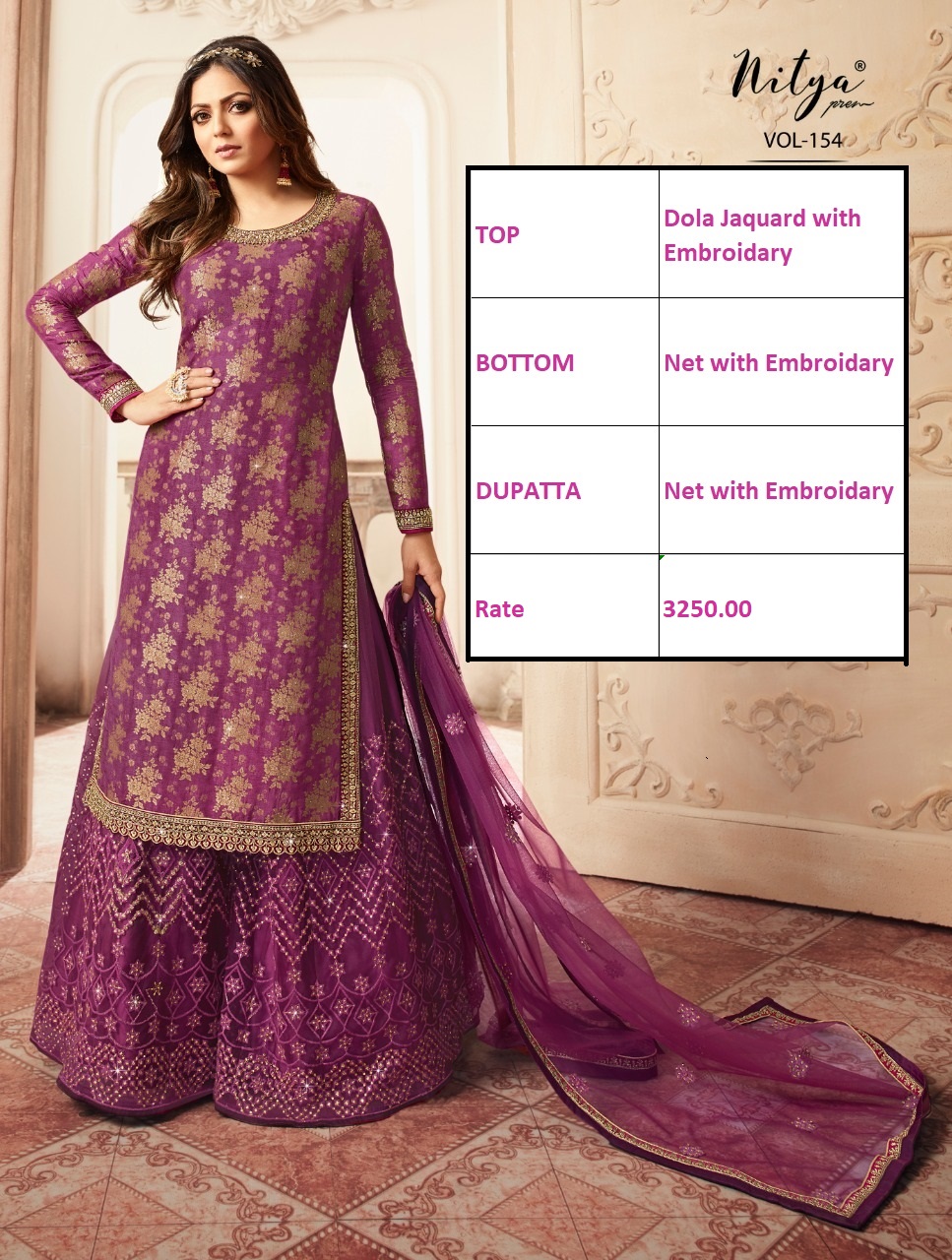 Lt nitya Vol 154 Seriss 5401 to 5407 *Top - - Dola Jaquard with embroidery* *Bottom-- Net with embroidery* *Dupatta -- Net with embroidery* Single price ask personally |