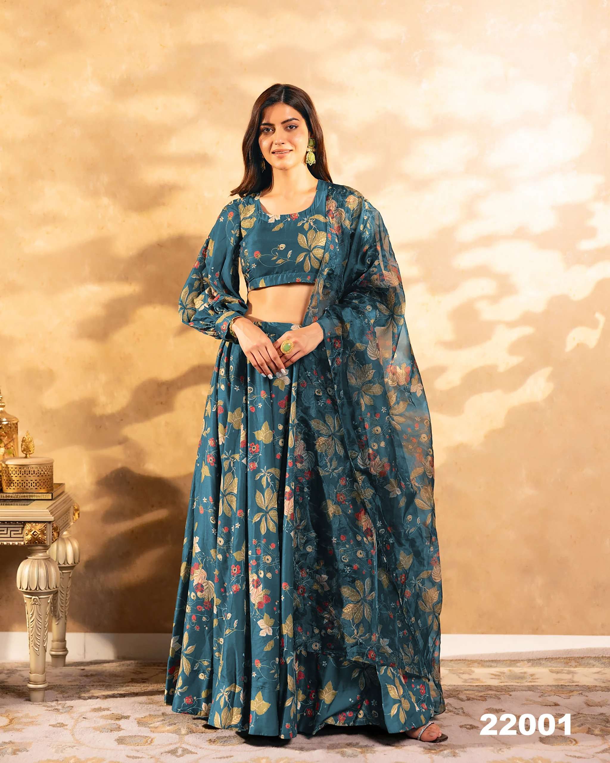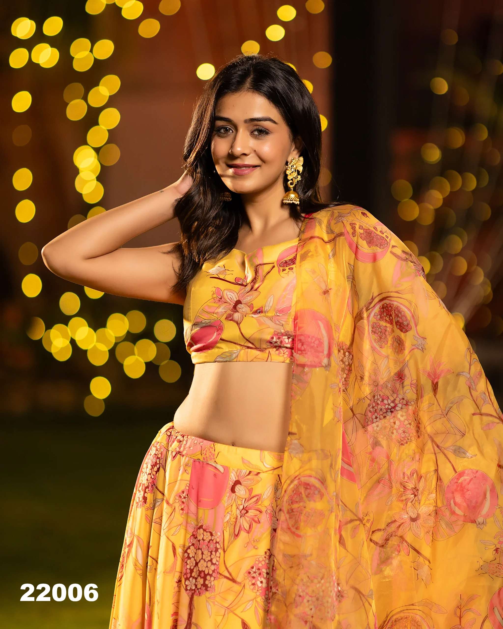 Introducing this stunning 3-piece floral printed tier lehenga full stitched collection (set of 7 beautiful design 22001 to 22007)