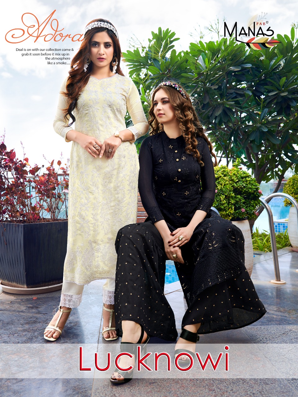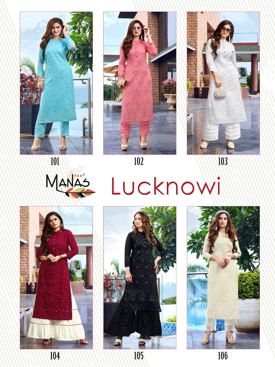 Lucknowi By Manas Series 101 Designer Party Wear Kurtis With Bottom Set And Single Wholesale Supplier And Dealer Surat