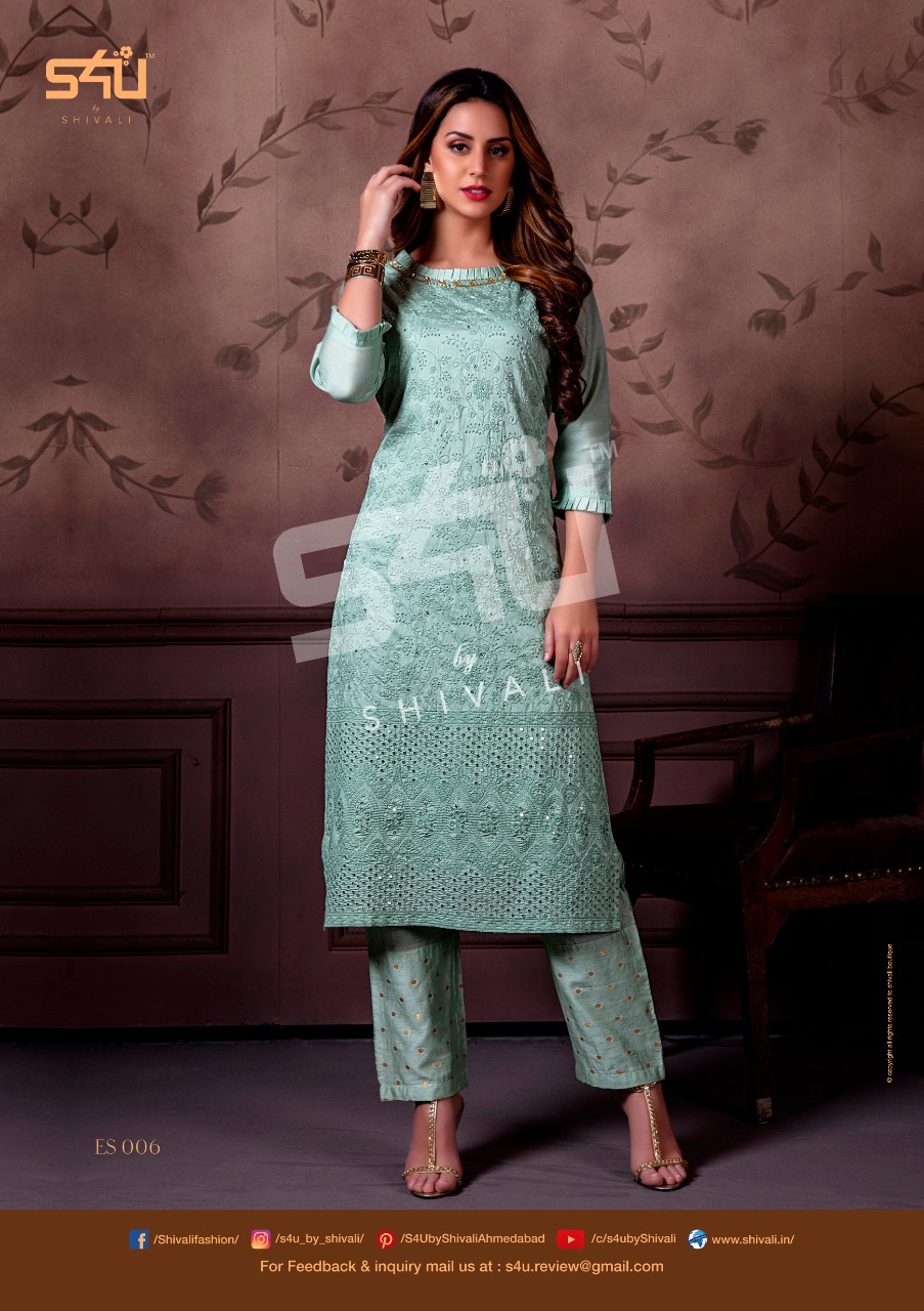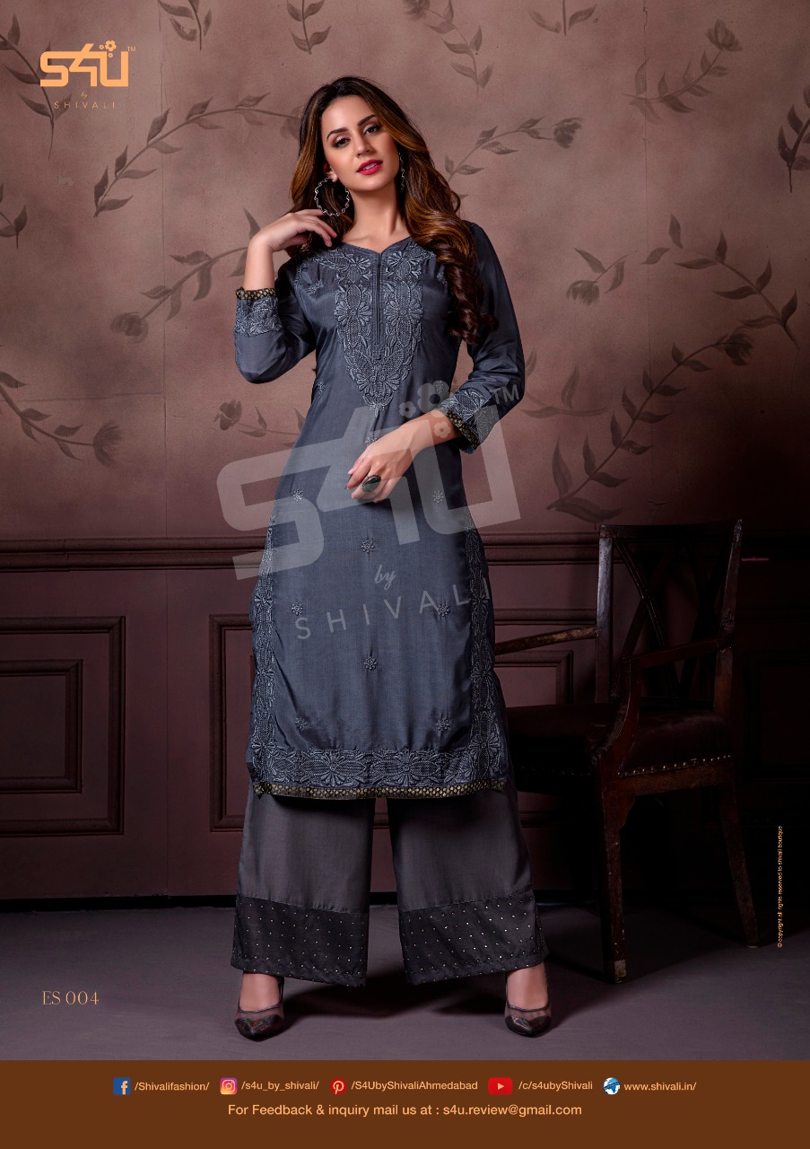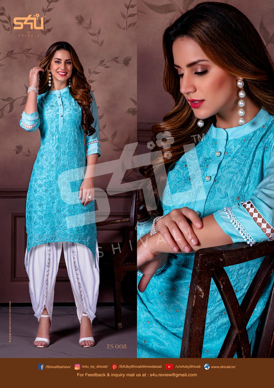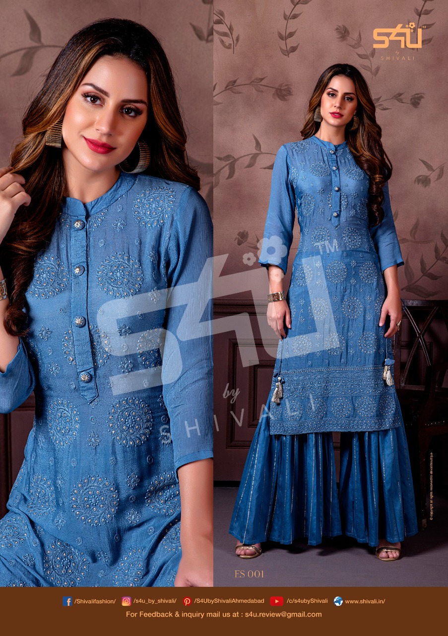 This Diwali, embrace the artistry from the city of Nawabs. S4U by Shivali brings forward Â?LucknowiÂ?, embroidered kurta n bottom sets played over with intricate mukaish! No. Of designs: 8 Sizes: L-XL-XXL Rate: 1475 Sizes M & 3XL available on request. Dispatching one week Gst 5 percent as billing of top n bottom is different ??happy purchasing |