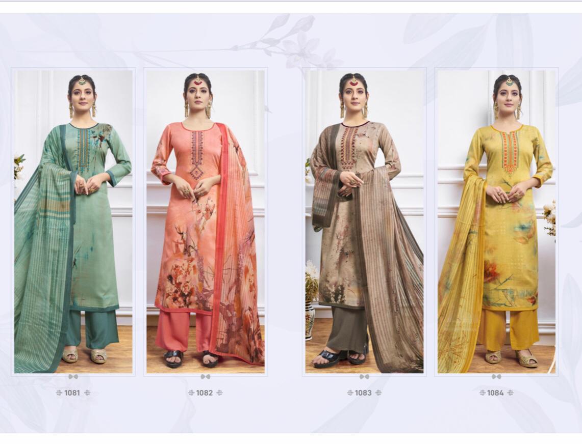 ? *Kalarang.* has launched _Catalog name_ : *Lupin* ? _Fabric Details_ ? ?Top:- JAM SILK DIGITAL PRINT WITH EMBROIDERY WORK AND SWAROVSKI DIAMOND WORK ?Bottom:- SILK SLUB RAYON (CUT: 2.70) ?Dupatta:- FANCY STRIPES DIGITAL PRINT ?Total Design:- 4 Rate - 895 per Pcs. Set to set GST 5 Percent Extra ?Dispatching 5 to 6 days later ?Booking started from now... ?Order yours soon.... |