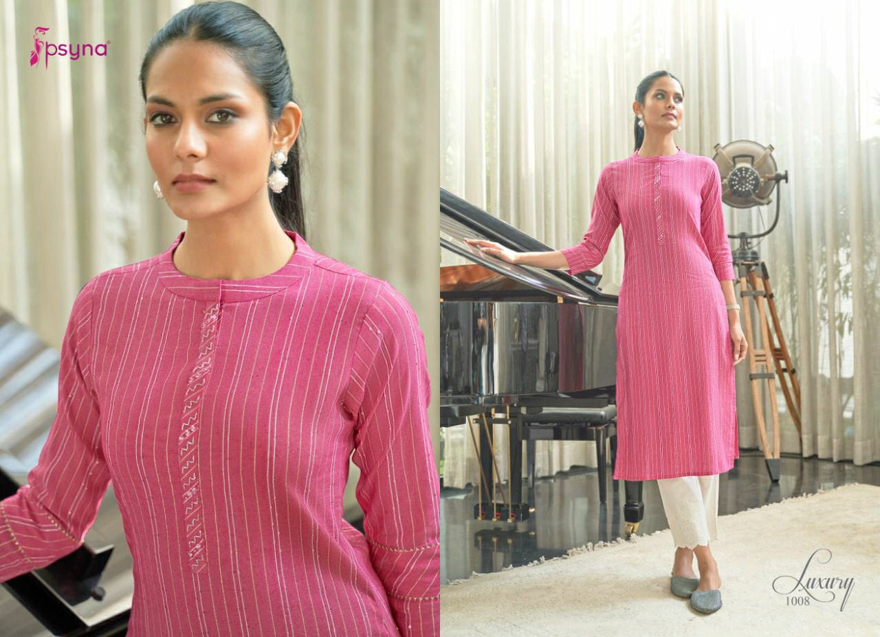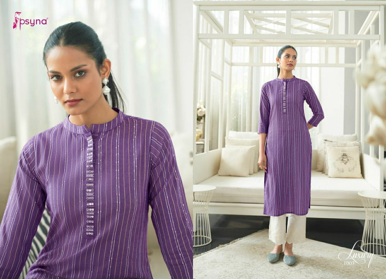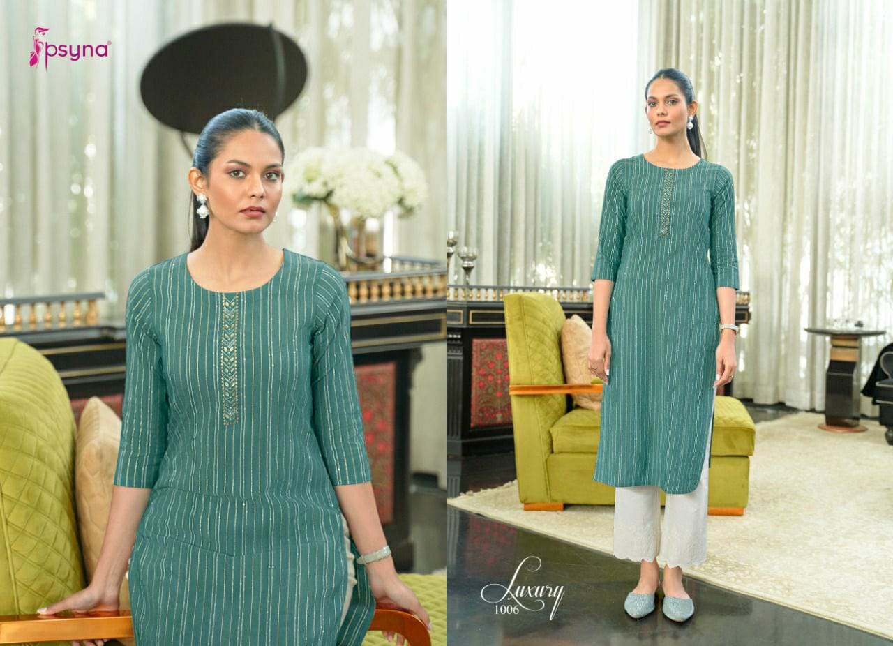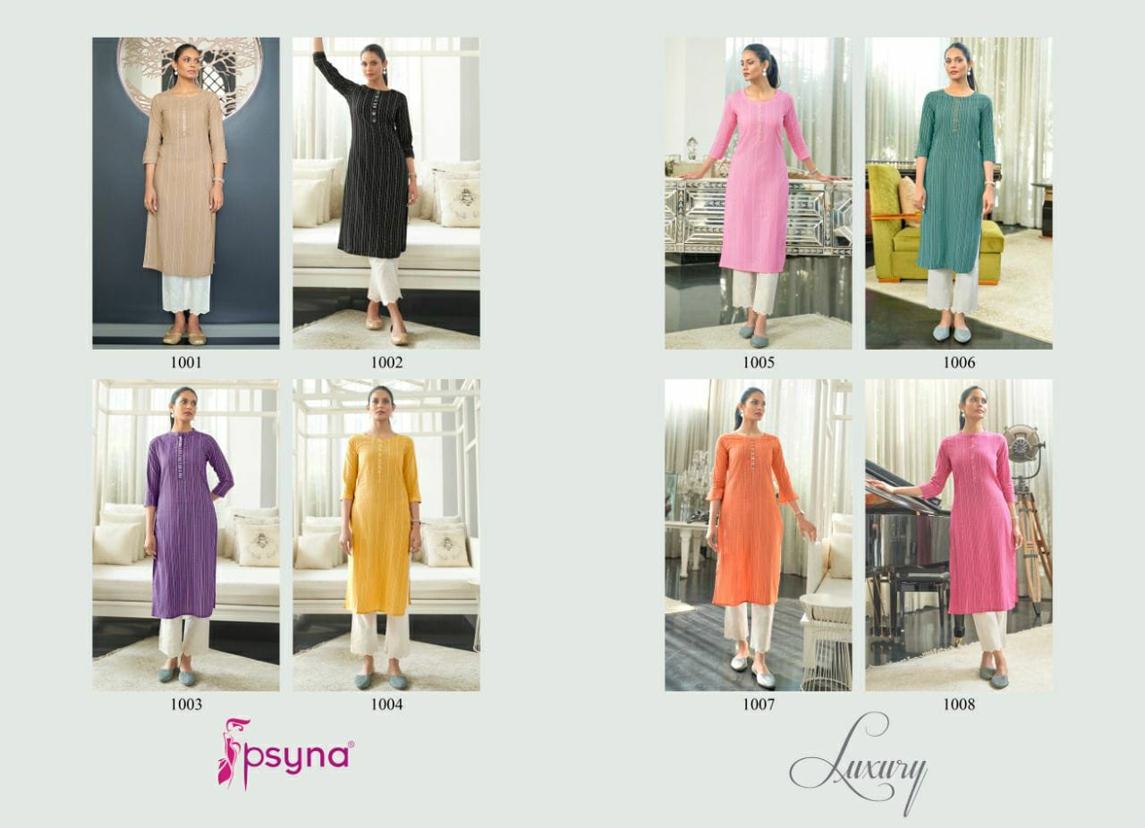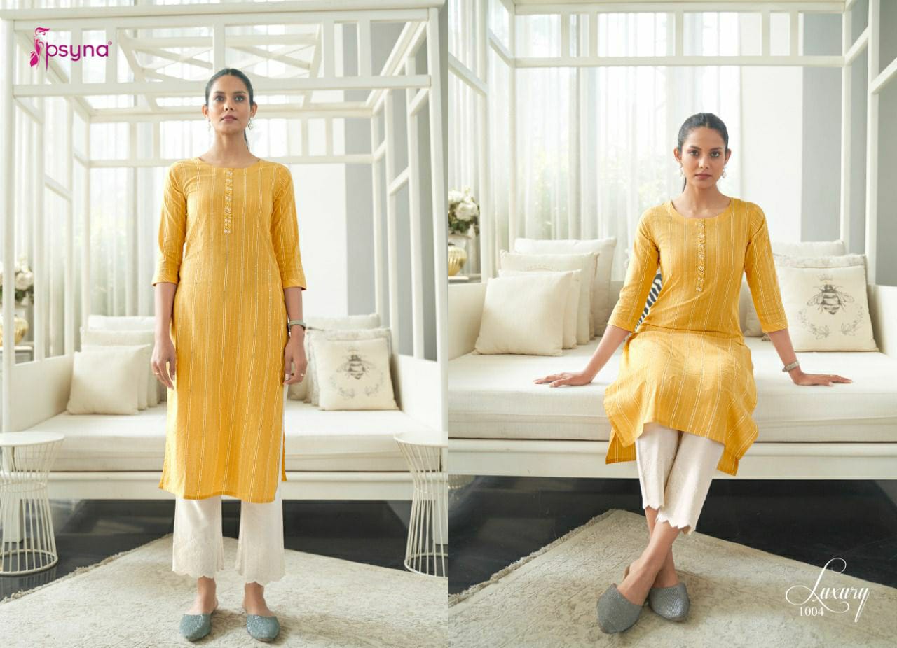 Buy Online Luxury By Psyna Dealer And Exporter Surat Gujarat 8 Pcs of Full Catalogue at Wholesale Price. Looking for Luxury By Psyna Dealer And Exporter Surat Gujarat Full Catalouge at Best Price? Buy Now Luxury By Psyna Dealer And Exporter Surat Gujarat at Wholesale Rate of Rs 3400 with Total 8 Pcs from authroized dealer and supplier of PSYNA Brand. Cost of Each piece is just only Rs 425 which is very low and affordable price to resale the product in your retail store ,This is Surat based Wholesale Supplier & Dealer of PSYNA Brand. Click on Brand name to Know more about PSYNA Brand's products.Call or Whatsapp on 9898838984 for booking or enquiry