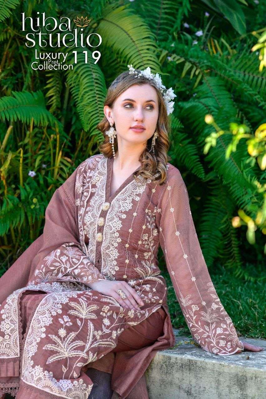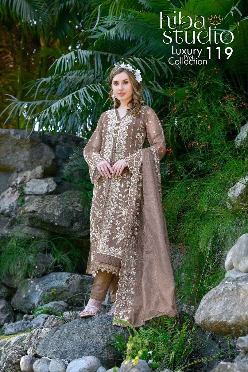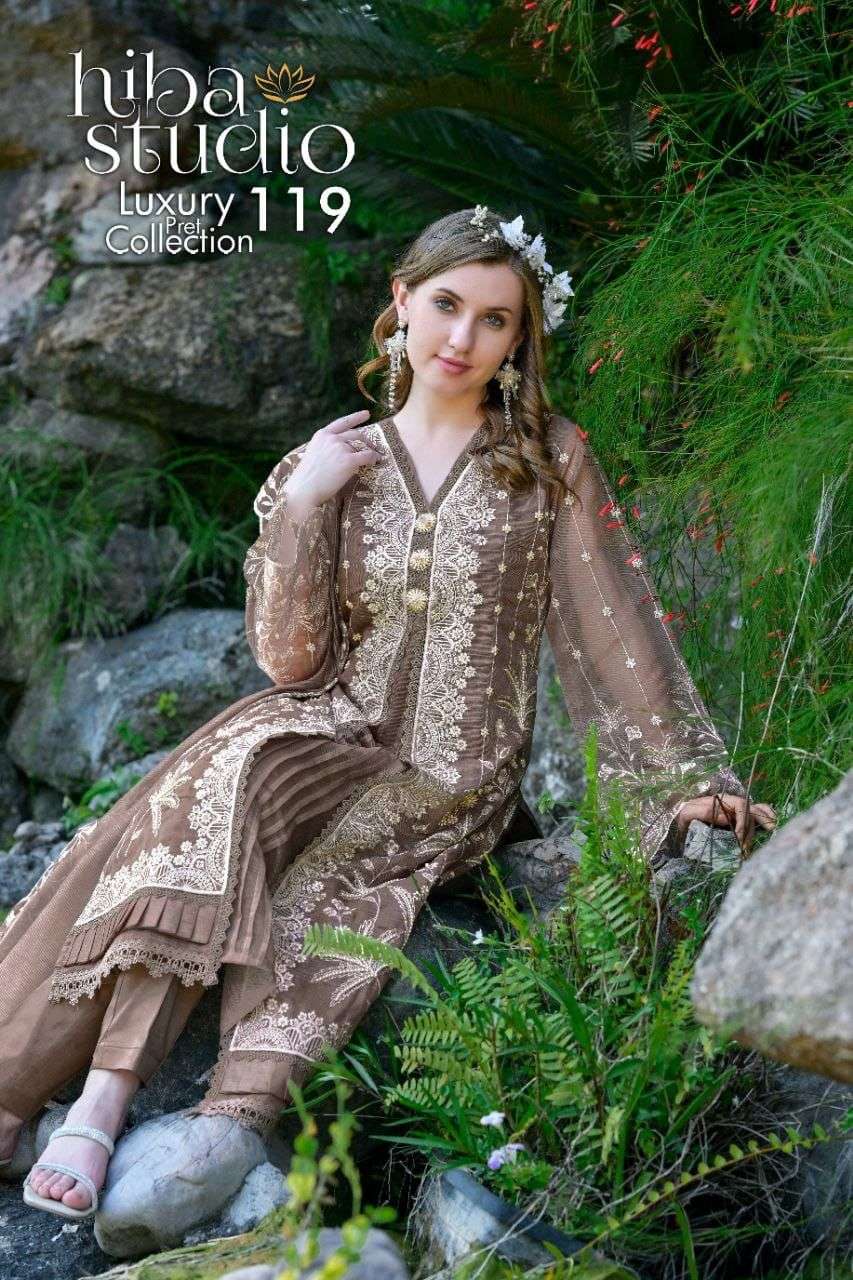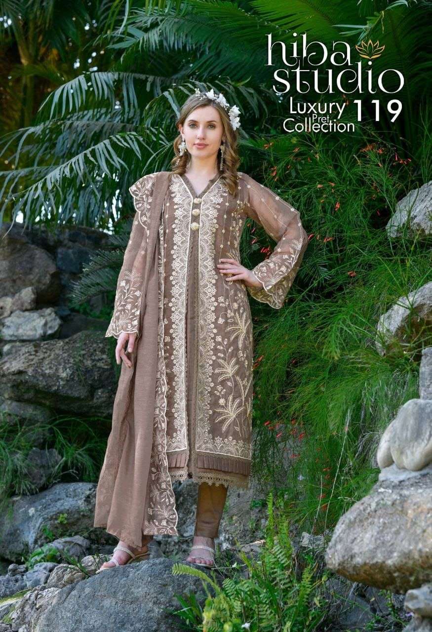 Luxury Pret 119 by HIBA STUDIO organza silk kurti collection manufacturer surat