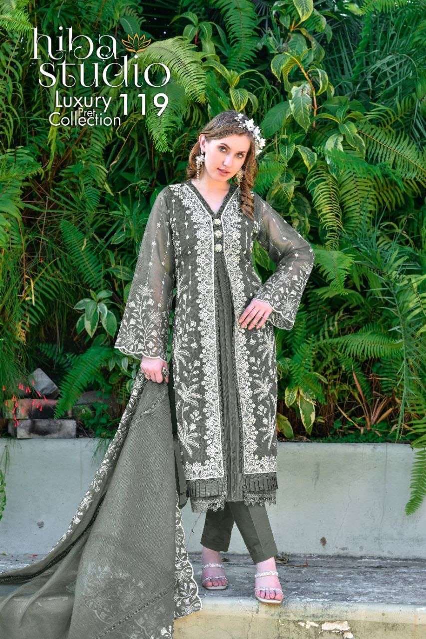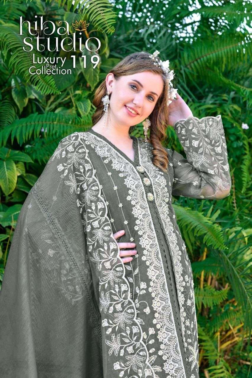 Buy Online Luxury Pret 119 by HIBA STUDIO organza silk kurti collection manufacturer surat 12 Pcs of Full Catalogue at Wholesale Price. Looking for Luxury Pret 119 by HIBA STUDIO organza silk kurti collection manufacturer surat Full Catalouge at Best Price? Buy Now Luxury Pret 119 by HIBA STUDIO organza silk kurti collection manufacturer surat at Wholesale Rate of Rs 35988 with Total 12 Pcs from authroized dealer and supplier of HIBA FASHION Brand. Cost of Each piece is just only Rs 2999 which is very low and affordable price to resale the product in your retail store ,This is Surat based Wholesale Supplier & Dealer of HIBA FASHION Brand. Click on Brand name to Know more about HIBA FASHION Brand's products.Call or Whatsapp on 9898838984 for booking or enquiry