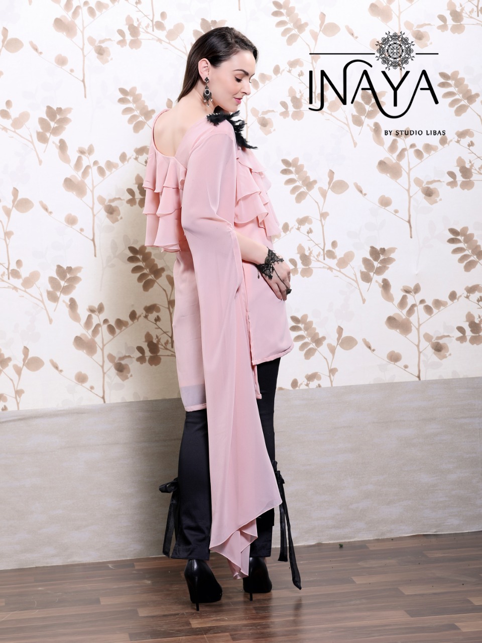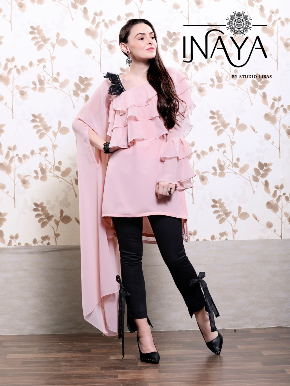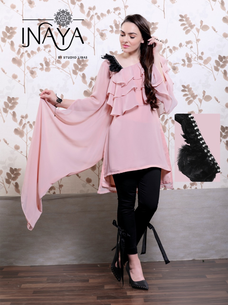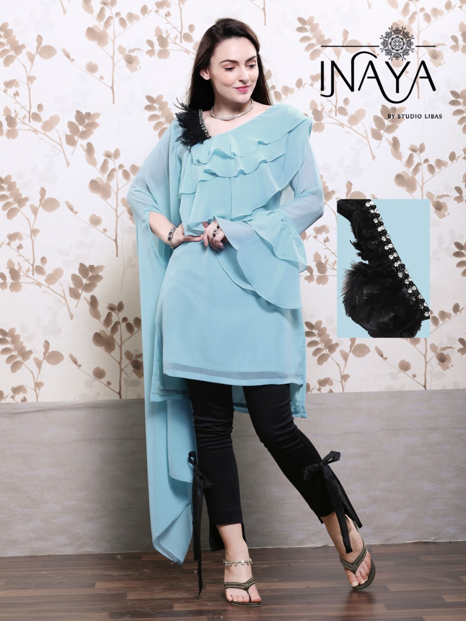*Tunic n Cigarette Pants* ??????? *Luxury p?et Collection* (9) ???????? Look Sizzling Hot??in our new *Designer Festive Special collection* ???????? *Inaya* by *Studio Libas* ???????? ? *Description*? ??????? *Designer Tunic* with front n back ruffles.... *Pearl , Diamond n Feather handwork* with one side *designer long sleeves* n other with *ruffle sleeves*...paired with Designer high-low *Cigarette Bow Pants*... ? *Details*? ??????? ? *Top*:- Georgette with crape inner ? *Bottom* :- pure cotton stretchable ? *Colour* :- Peachy pink Pestal Grey Pestal blue ? *Top L size chest* (38) ? *Bottom L size* (28-34) ? *Top xl size chest* (42) ? *Bottom xl size* (36-42) ? *Rate* 1299/- each +5% gst ?Full set only? (3 pair of same size n different colours) *Plz note* ?Very Limited Stock? ? *Delivery Ready*? |