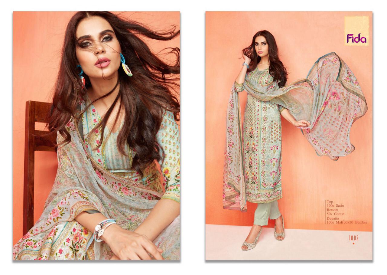 Lydia By Fida 1001 Series Fancy Satin Printed Salwar Kameez Catlog Wholesaler Surat
