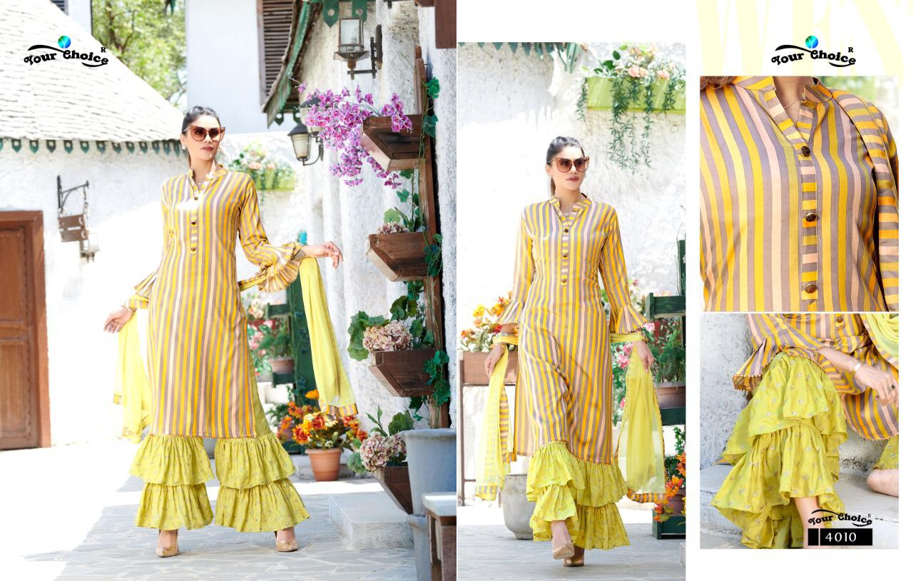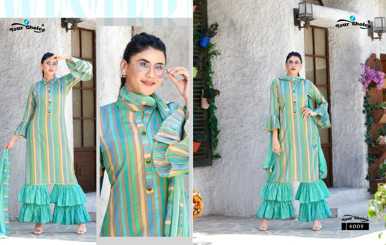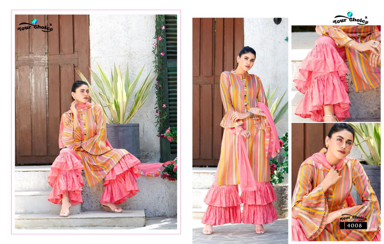 Buy Online Lyner By Your Choice Series 4008 To 4011designer Suits Wholesale Supplier India 4 Pcs of Full Catalogue at Wholesale Price. Looking for Lyner By Your Choice Series 4008 To 4011designer Suits Wholesale Supplier India Full Catalouge at Best Price? Buy Now Lyner By Your Choice Series 4008 To 4011designer Suits Wholesale Supplier India at Wholesale Rate of Rs 3980 with Total 4 Pcs from authroized dealer and supplier of YOUR CHOICE Brand. Cost of Each piece is just only Rs 995 which is very low and affordable price to resale the product in your retail store ,This is Surat based Wholesale Supplier & Dealer of YOUR CHOICE Brand. Click on Brand name to Know more about YOUR CHOICE Brand's products.Call or Whatsapp on 9898838984 for booking or enquiry