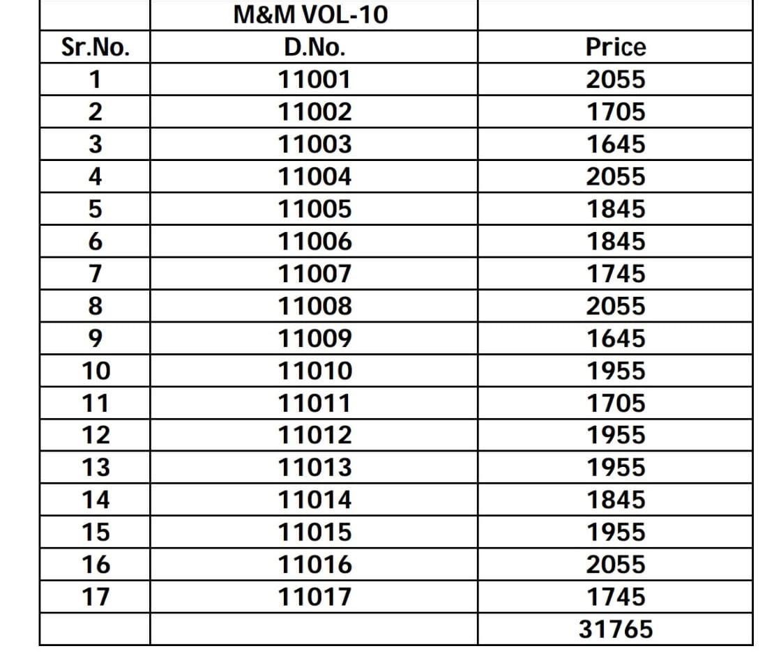 Buy Online M And M Vol 10 Series 11001 To 11017 Fancy Designer Party Wear Sarees Set And Single Wholesale Supplier And Dealer India 17 Pcs of Full Catalogue at Wholesale Price. Looking for M And M Vol 10 Series 11001 To 11017 Fancy Designer Party Wear Sarees Set And Single Wholesale Supplier And Dealer India Full Catalouge at Best Price? Buy Now M And M Vol 10 Series 11001 To 11017 Fancy Designer Party Wear Sarees Set And Single Wholesale Supplier And Dealer India at Wholesale Rate of Rs 0 with Total 17 Pcs from authroized dealer and supplier of BRAND'S Brand. Cost of Each piece is just only Rs 0 which is very low and affordable price to resale the product in your retail store ,This is Surat based Wholesale Supplier & Dealer of BRAND'S Brand. Click on Brand name to Know more about BRAND'S Brand's products.Call or Whatsapp on 9898838984 for booking or enquiry
