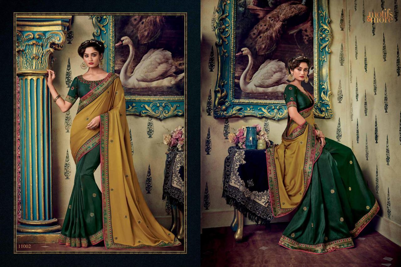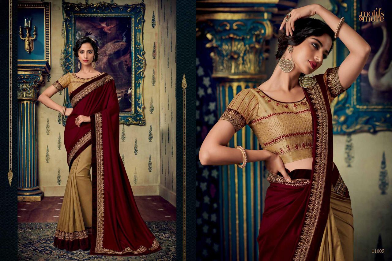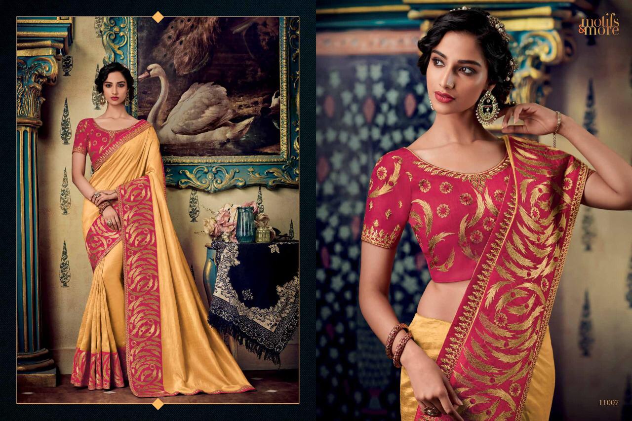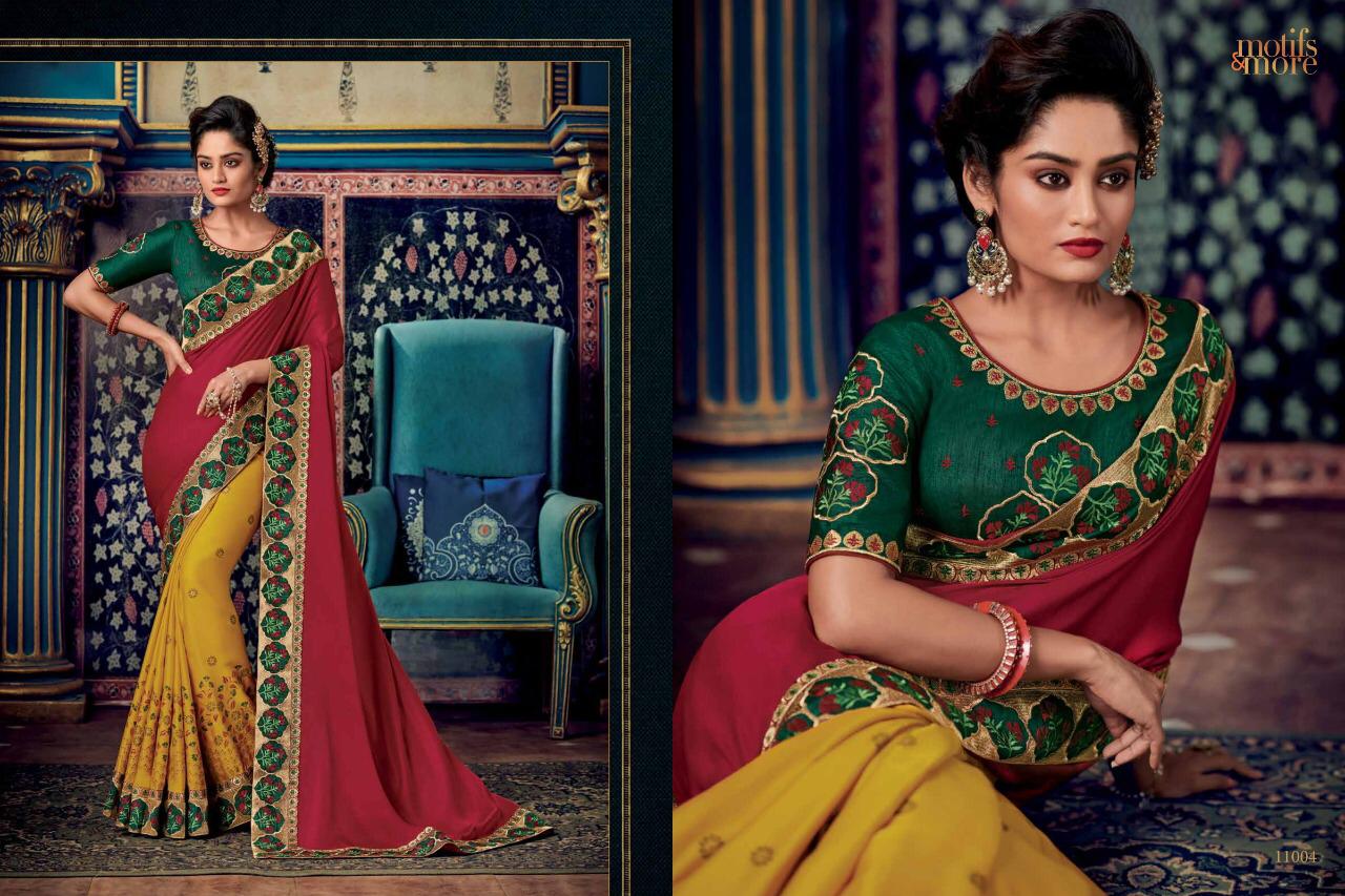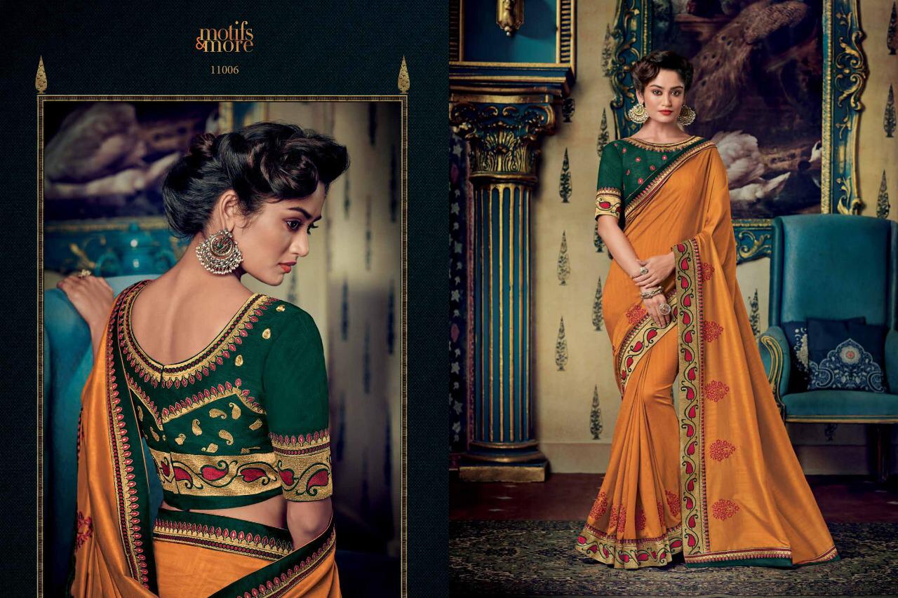 Brand - Motifs & More . Series -11001 to 11017. * set & loose * Single Extra 100 on company price list GST 5 Percent Extra. All New Fancy Fabric with Heavy blouse . Delivery from tomorrow |