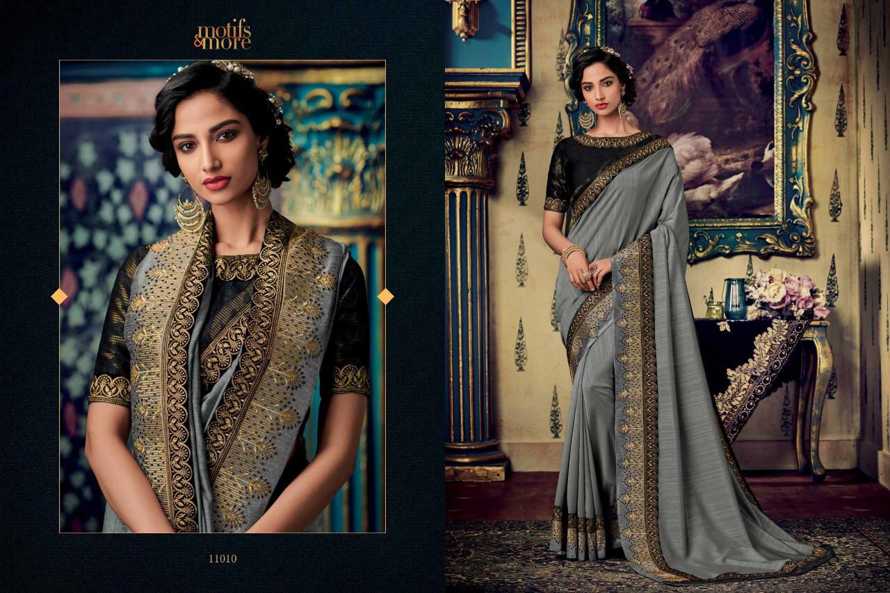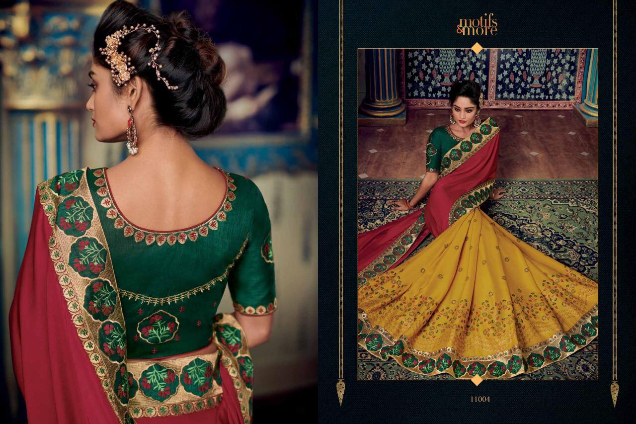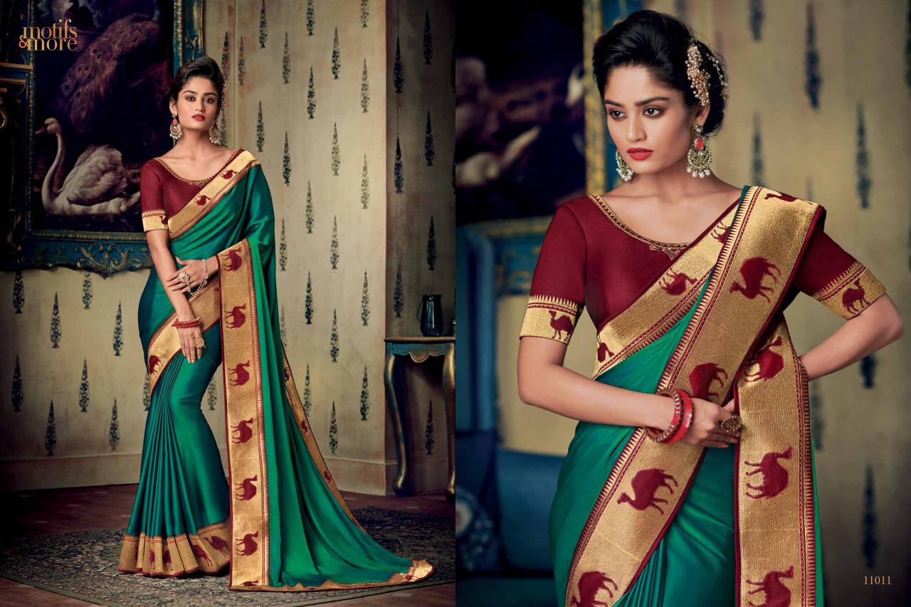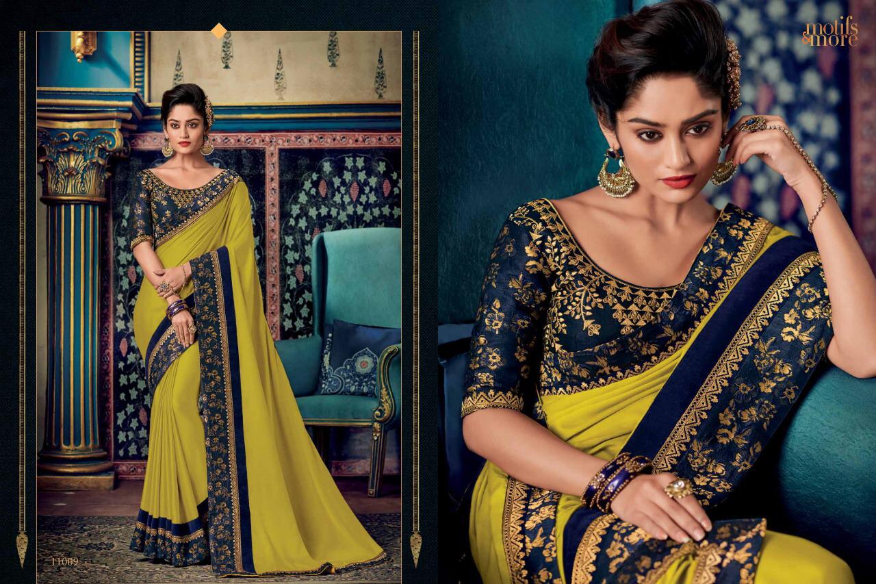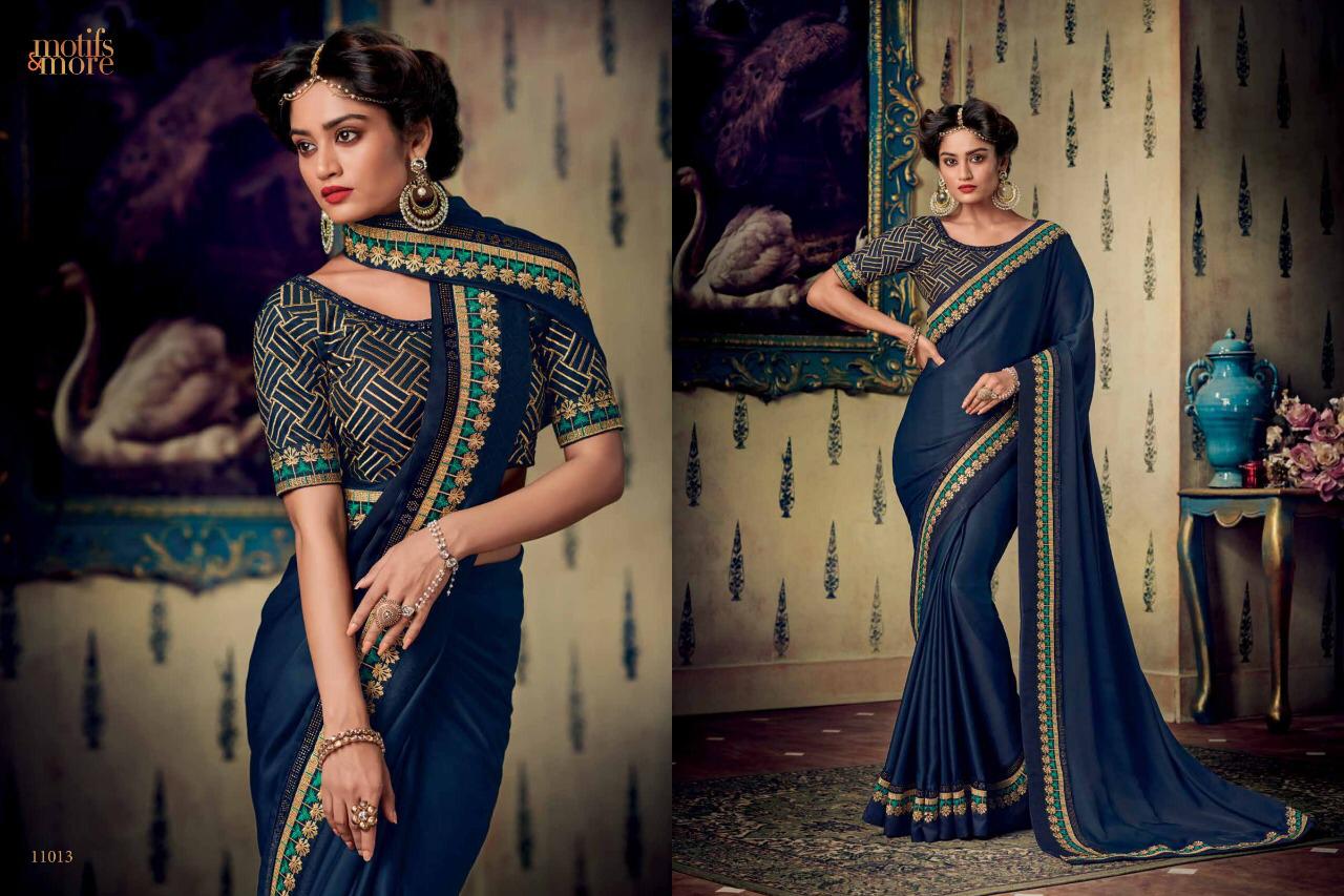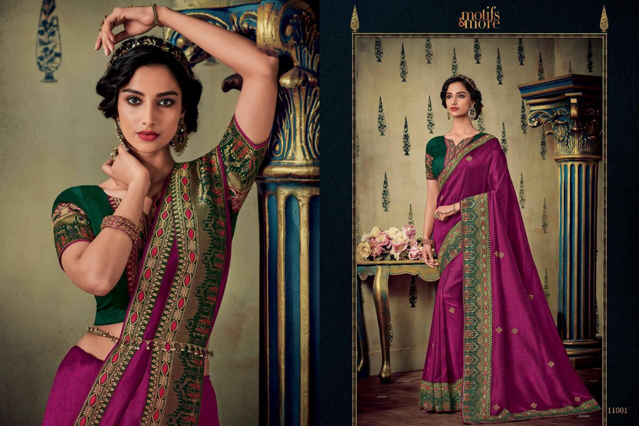 Brand - Motifs & More . Series -11001 to 11017. * set & loose * Single Extra 100 on company price list GST 5 Percent Extra. All New Fancy Fabric with Heavy blouse . Delivery from tomorrow |