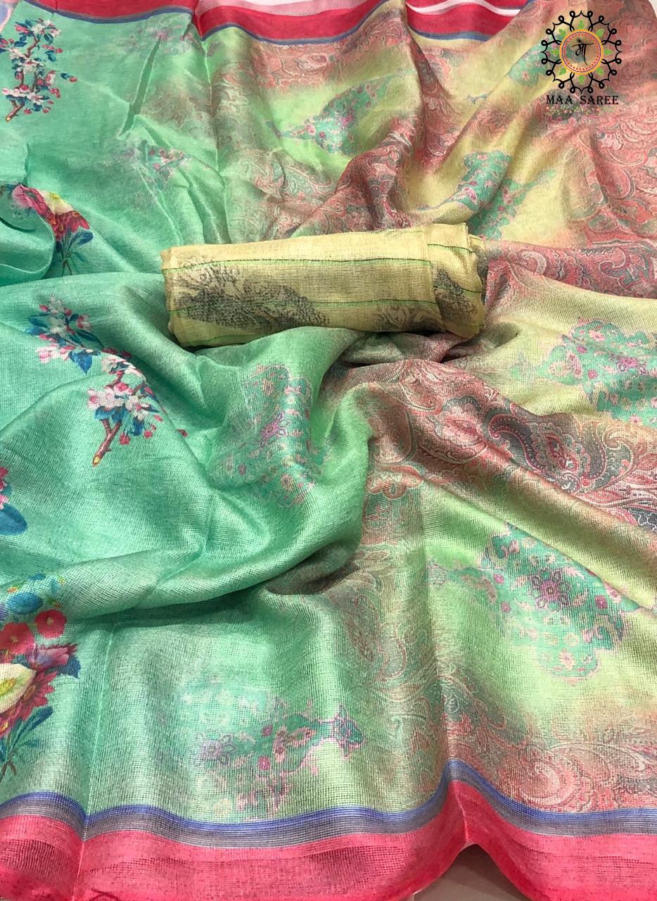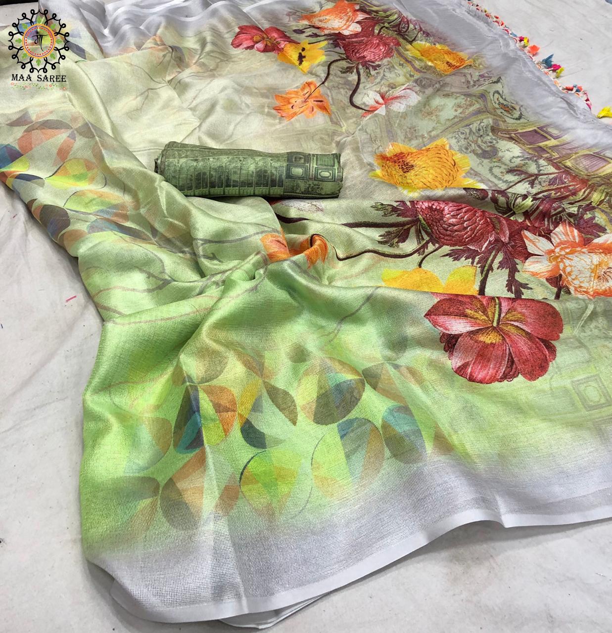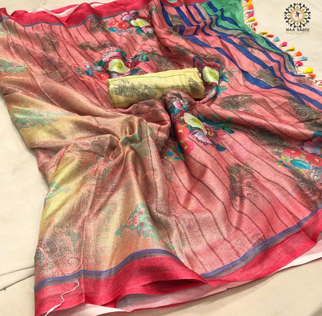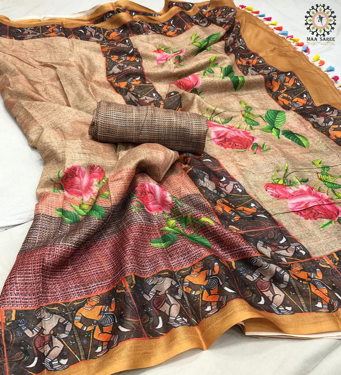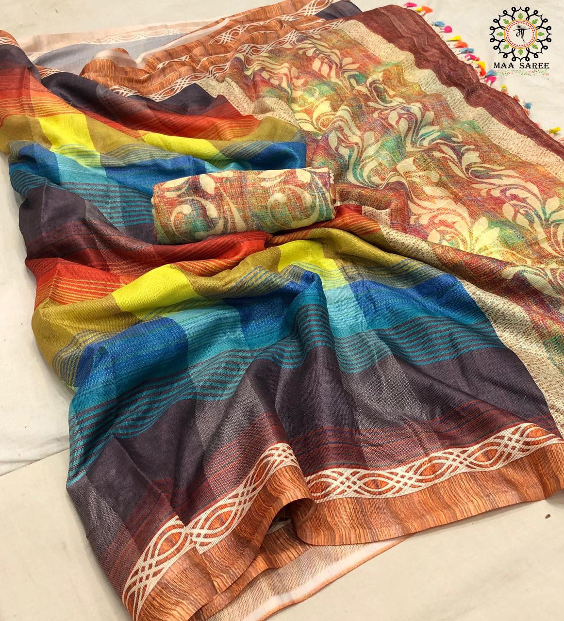 Maa Sarees Jute Mix Linen Printed Sarees Wholesale Supplier And Dealer Gujarat