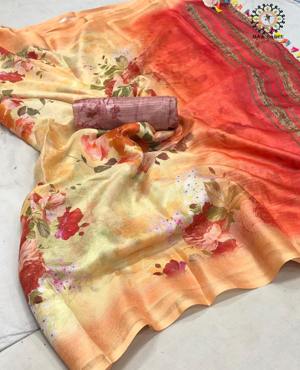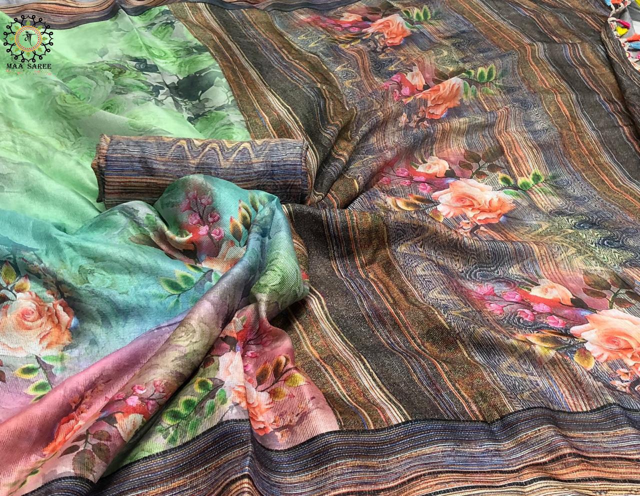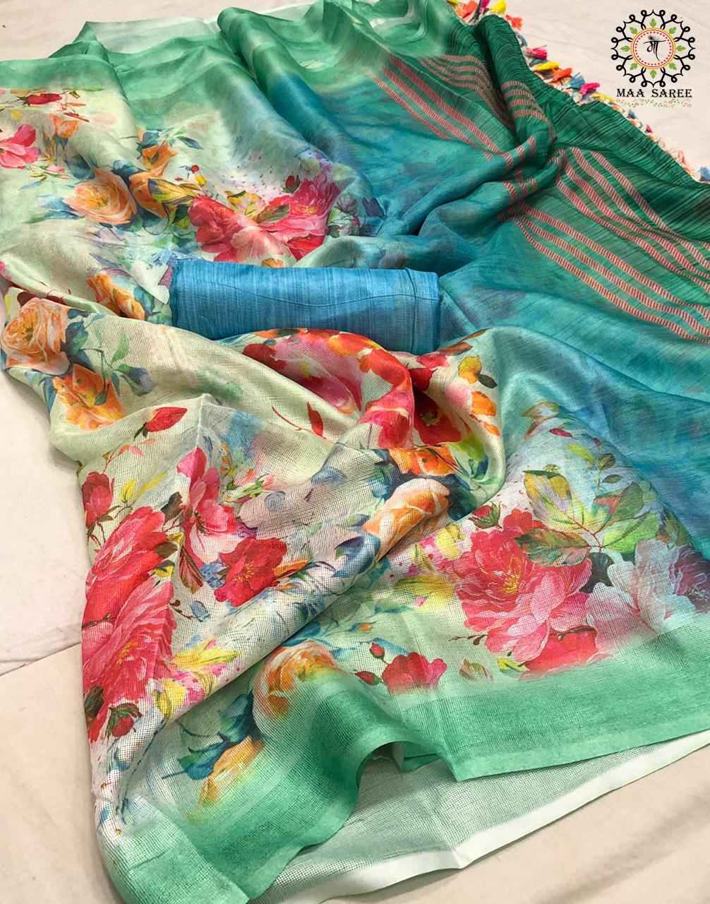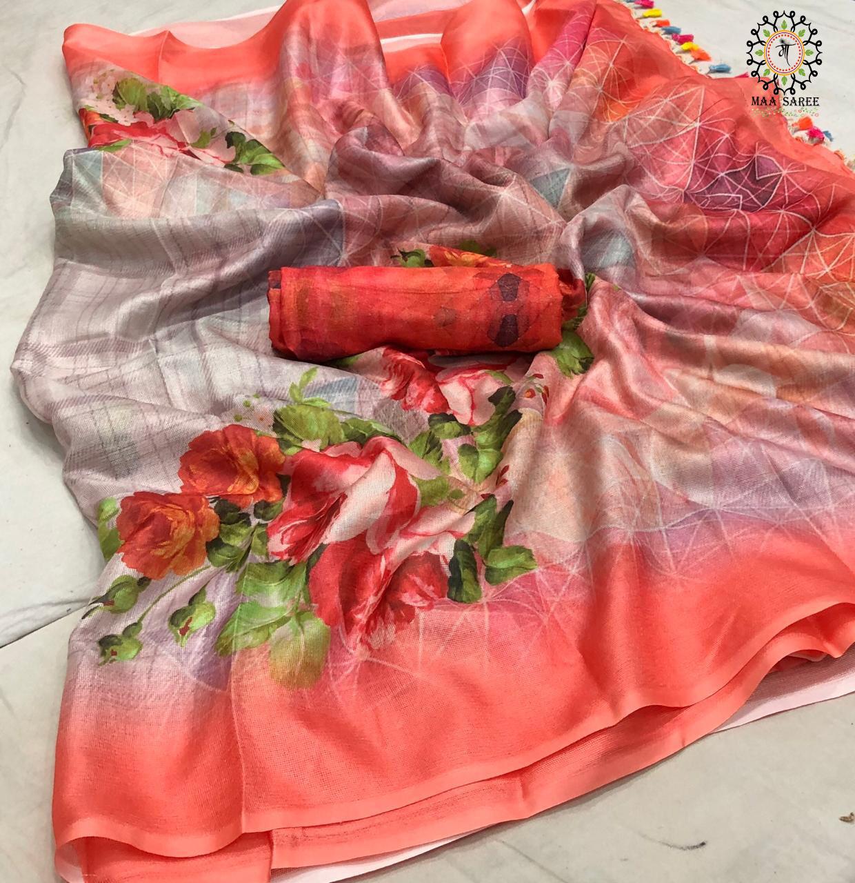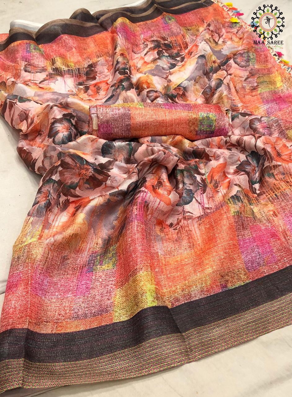 Maa Sarees Jute Mix Linen Printed Sarees Wholesale Supplier And Dealer Gujarat