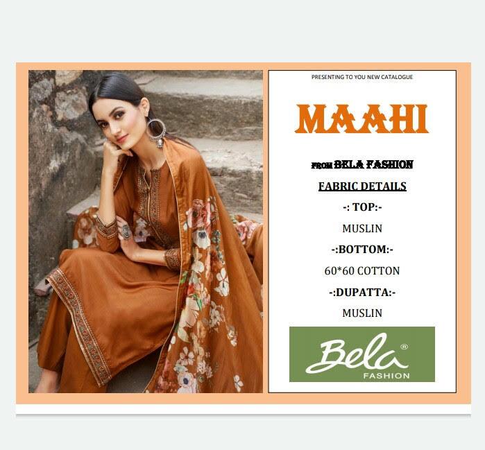 Brand - Bela . Catlog name - MAAHI. Series - 1161 to 1169. Set & loose . Single extra 100 GST 5 Percent Extra. Delivery 2-3 days |