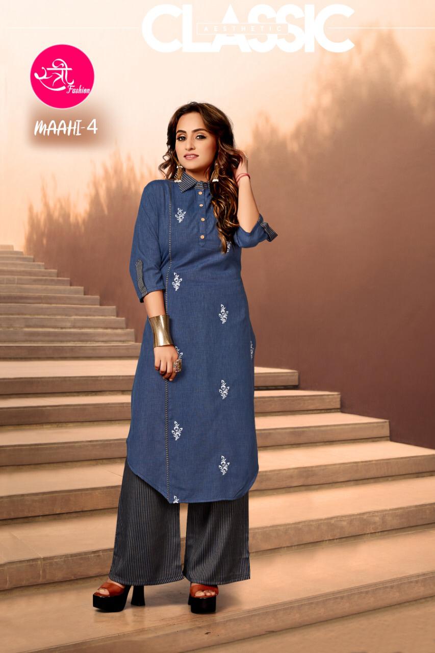 Maahi By Stree Fashion Reyon Kurtis With Plazzo Wholesale Supplier Gujarat