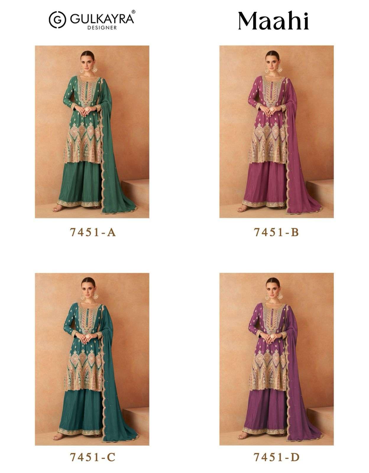 Buy Online maahi series 7451 colour by gulkayra designer 4 Pcs of Full Catalogue at Wholesale Price. Looking for maahi series 7451 colour by gulkayra designer Full Catalouge at Best Price? Buy Now maahi series 7451 colour by gulkayra designer at Wholesale Rate of Rs 11180 with Total 4 Pcs from authroized dealer and supplier of Gulkayra designer Brand. Cost of Each piece is just only Rs 2795 which is very low and affordable price to resale the product in your retail store ,This is Surat based Wholesale Supplier & Dealer of Gulkayra designer Brand. Click on Brand name to Know more about Gulkayra designer Brand's products.Call or Whatsapp on 9898838984 for booking or enquiry
