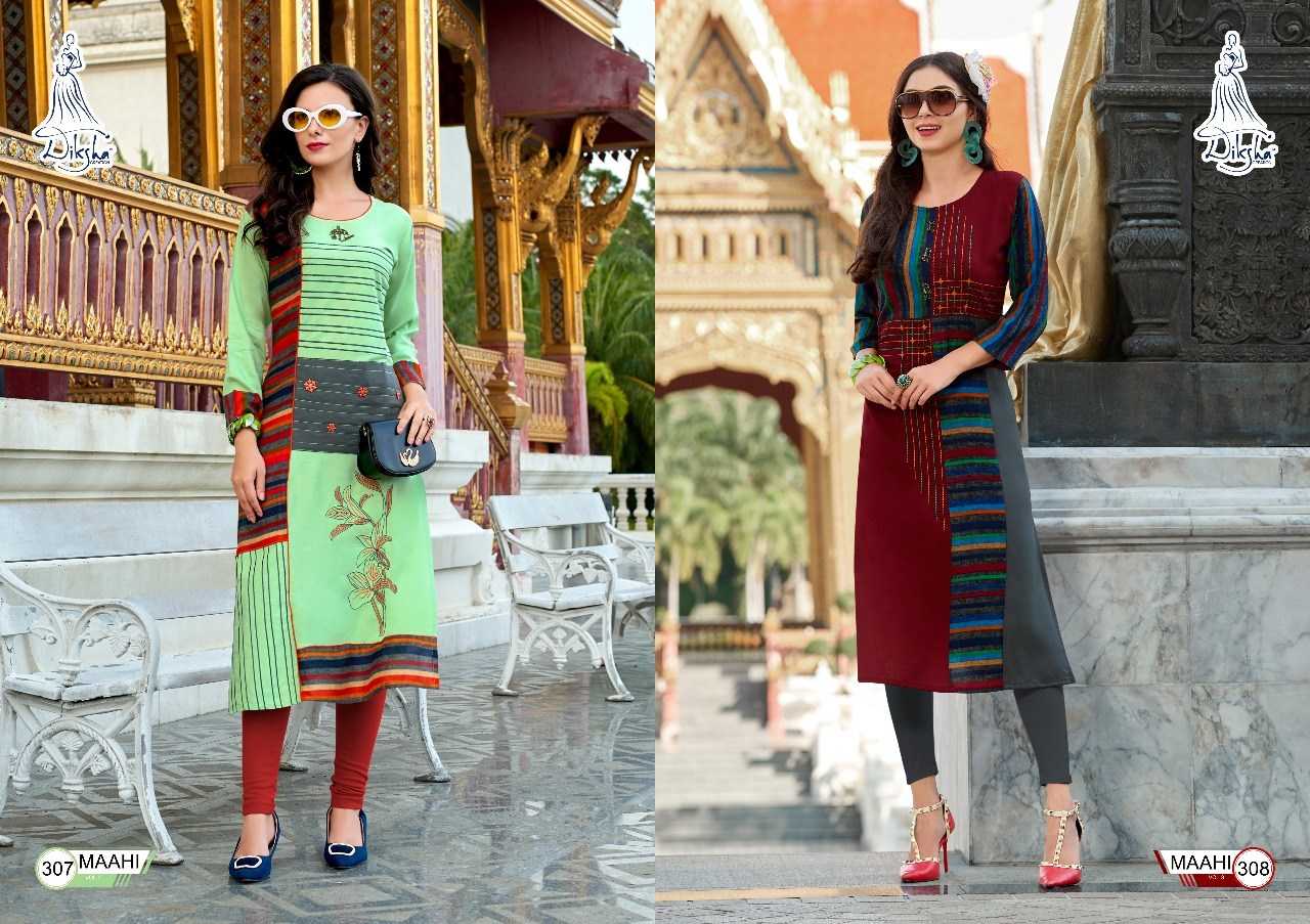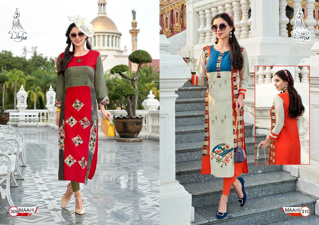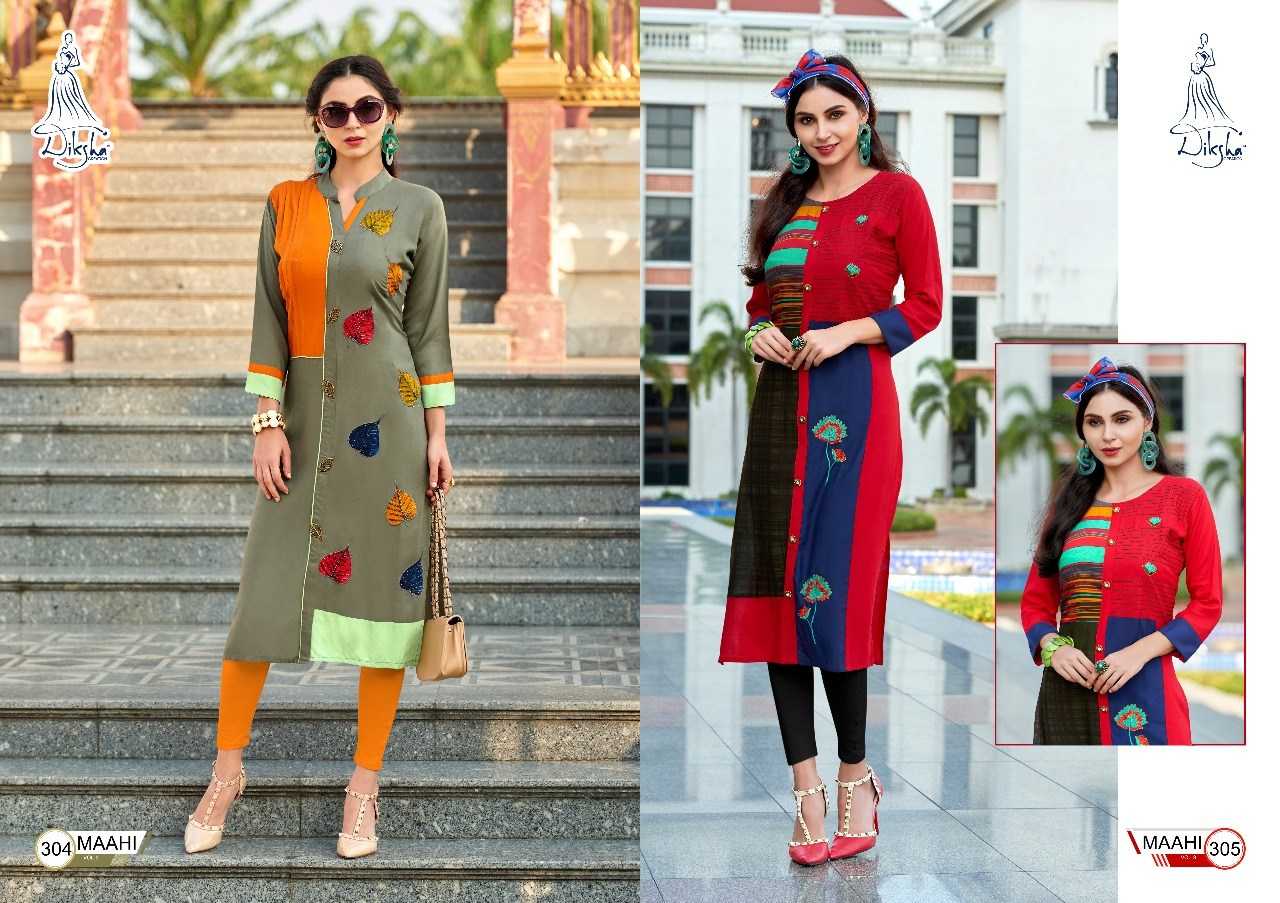 Buy Online Maahi Vol 3 By Diksha Fashion Reyon Printed Kurtis Wholesale Supplier Surat 14 Pcs of Full Catalogue at Wholesale Price. Looking for Maahi Vol 3 By Diksha Fashion Reyon Printed Kurtis Wholesale Supplier Surat Full Catalouge at Best Price? Buy Now Maahi Vol 3 By Diksha Fashion Reyon Printed Kurtis Wholesale Supplier Surat at Wholesale Rate of Rs 5950 with Total 14 Pcs from authroized dealer and supplier of KRISHRYAA Brand. Cost of Each piece is just only Rs 425 which is very low and affordable price to resale the product in your retail store ,This is Surat based Wholesale Supplier & Dealer of KRISHRYAA Brand. Click on Brand name to Know more about KRISHRYAA Brand's products.Call or Whatsapp on 9898838984 for booking or enquiry