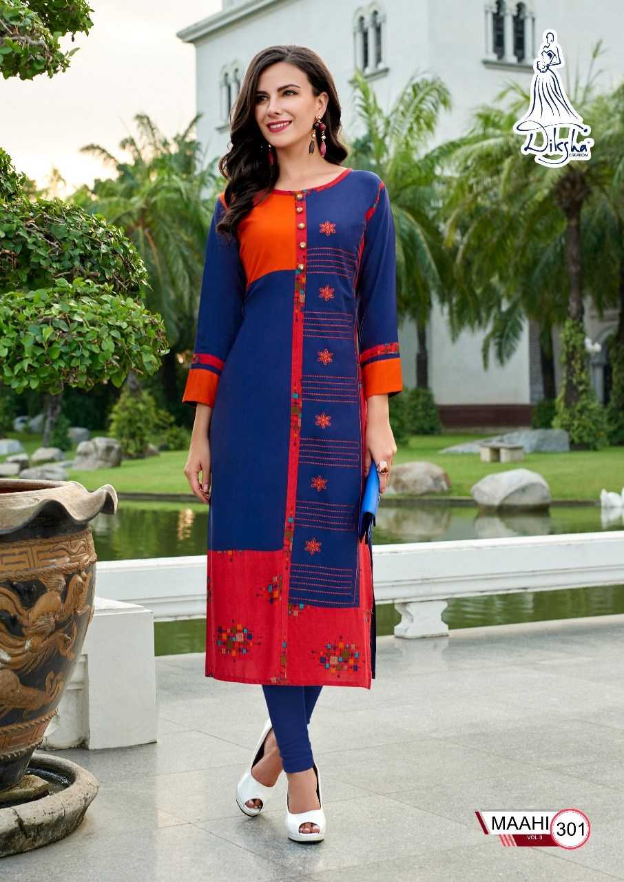Maahi Vol 3 By Diksha Fashion Reyon Printed Kurtis Wholesale Supplier Surat