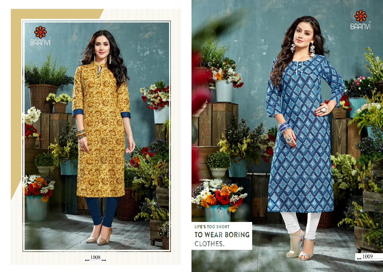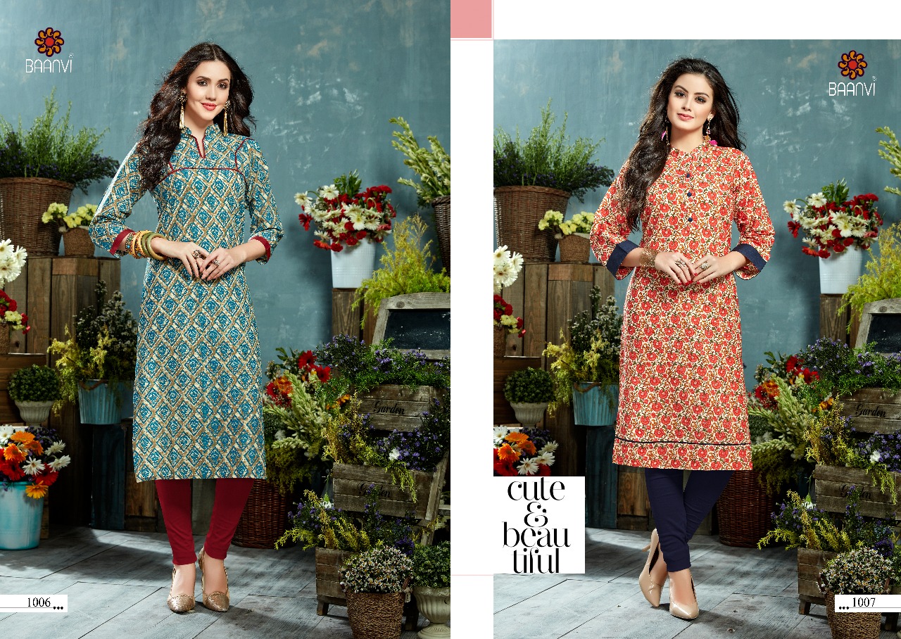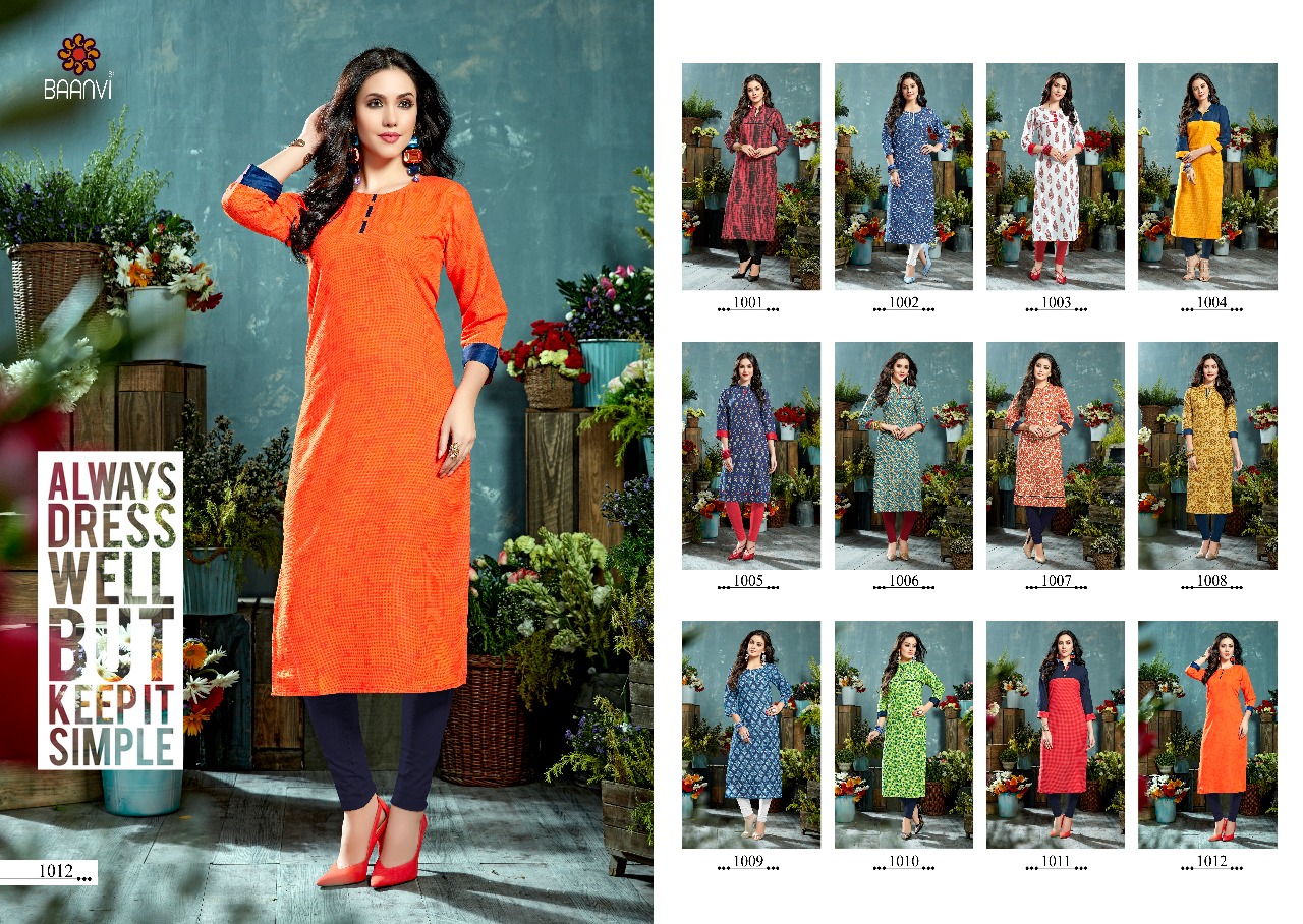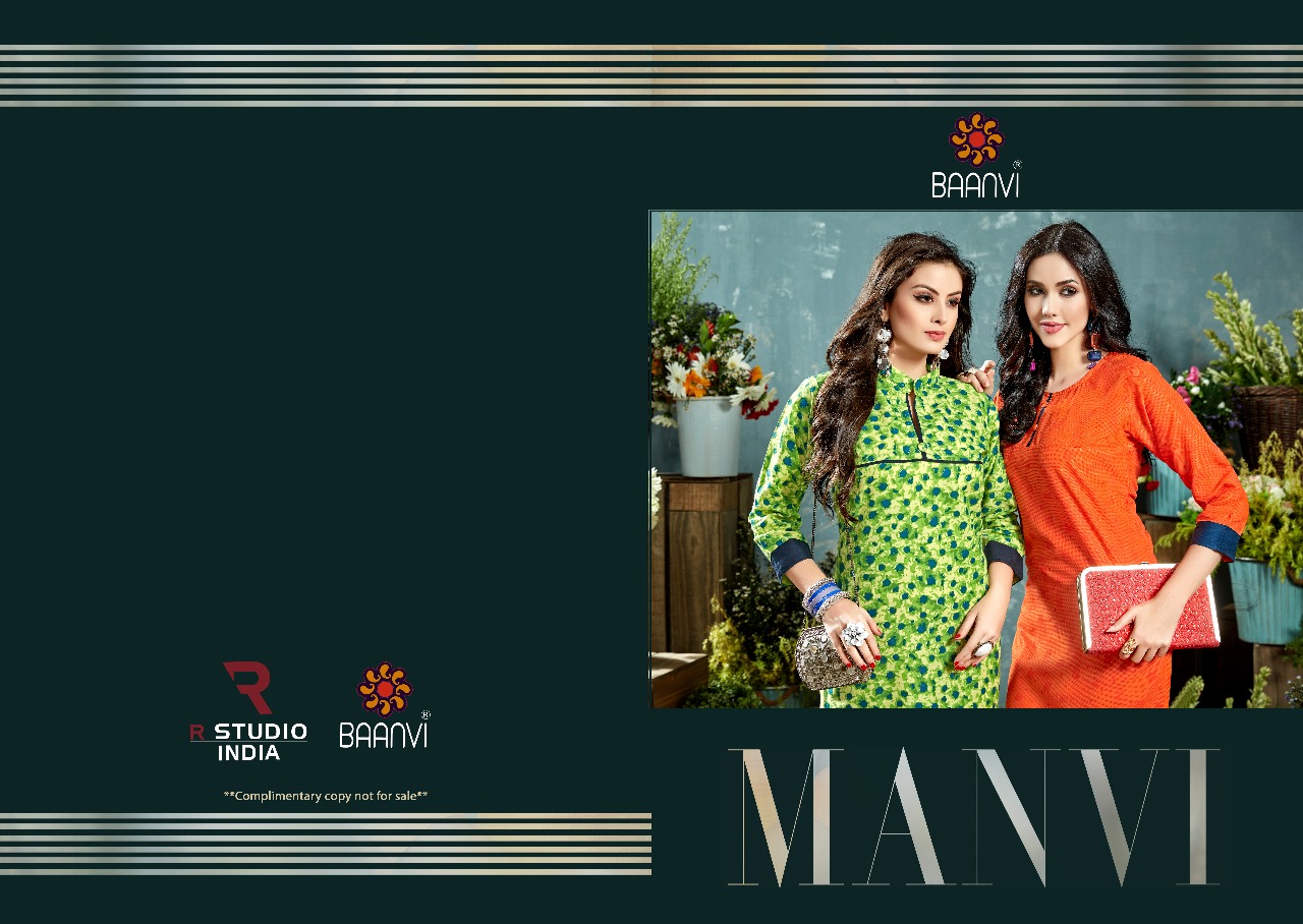 ? *R STUDIO launches exclusive designer kurti* ? *BAANVI* ?Catalogue name- *MAANVI* ?Fabric - *COTTON PRINT* ?Size - *S-36 M38,L-40, XL -42,XXL-44 3XL-46* ?Length - 46 ?Designs- 12 ?Rate:- 225/-? per Pcs Set to set . Delivery 2-3 days *GST +5% ADD ON BILL AMT* |