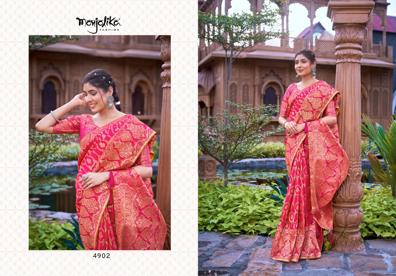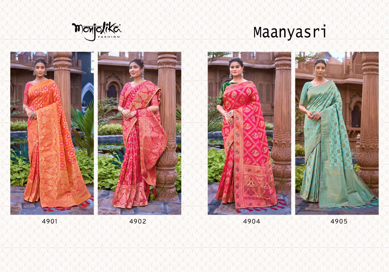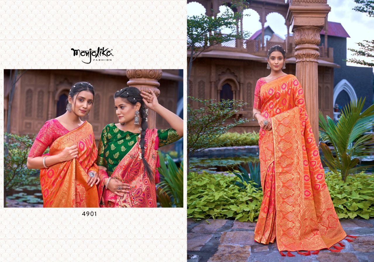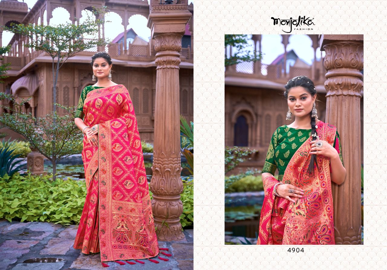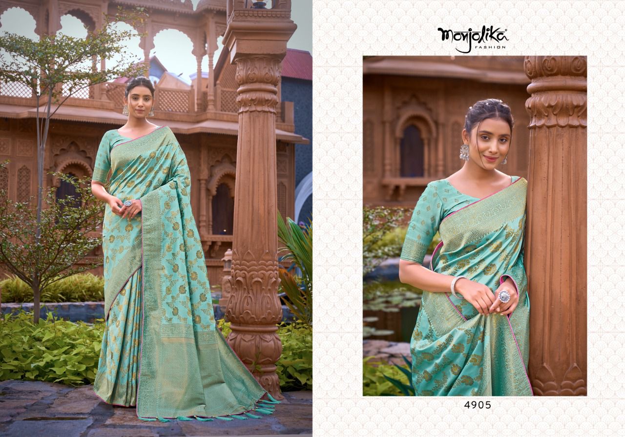 Maanyasri 4900 By Monjolika Fashion Banarasi Silk Saree Single And Set Stockiest And Supplier From Surat