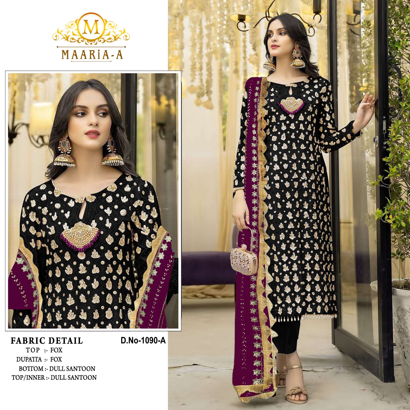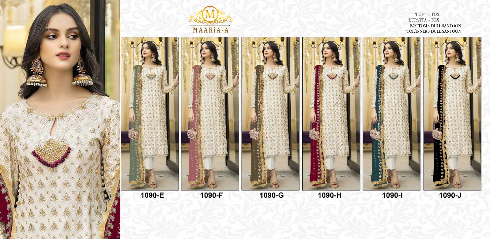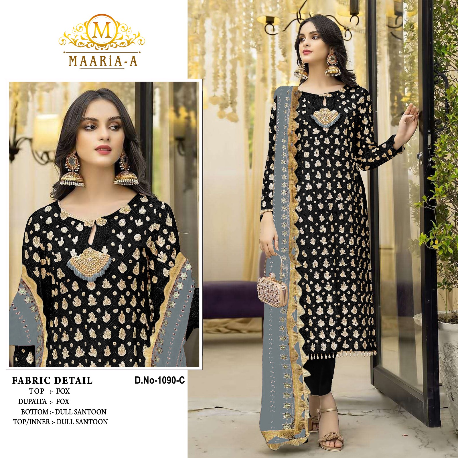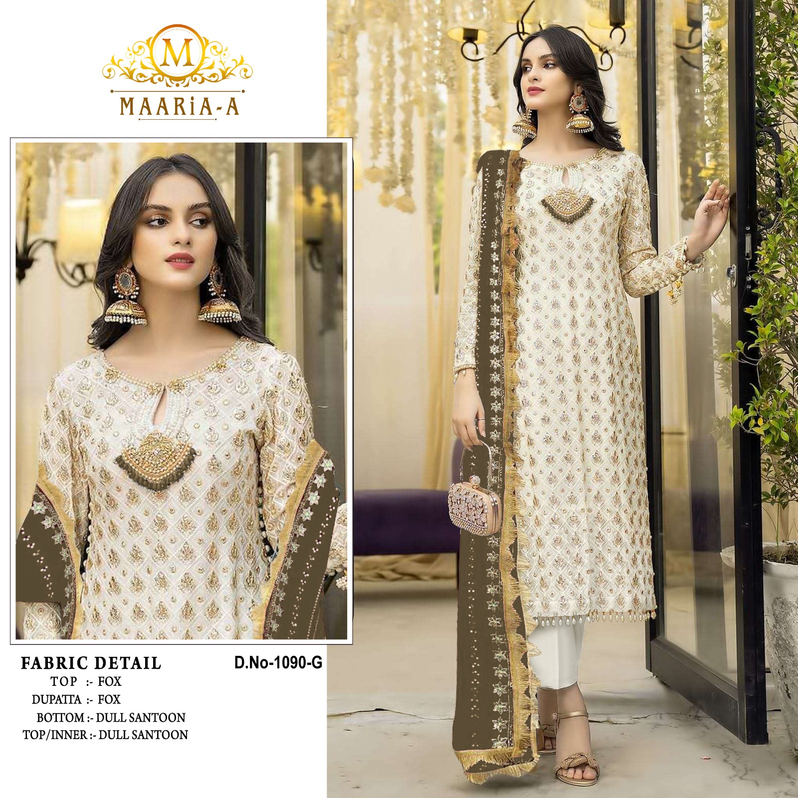 Buy Online Maaria A Pakistani 1090 Georgette Eid Collection 10 Pcs of Full Catalogue at Wholesale Price. Looking for Maaria A Pakistani 1090 Georgette Eid Collection Full Catalouge at Best Price? Buy Now Maaria A Pakistani 1090 Georgette Eid Collection at Wholesale Rate of Rs 11990 with Total 10 Pcs from authroized dealer and supplier of Brand. Cost of Each piece is just only Rs 1199 which is very low and affordable price to resale the product in your retail store ,This is Surat based Wholesale Supplier & Dealer of Brand. Click on Brand name to Know more about Brand's products.Call or Whatsapp on 9898838984 for booking or enquiry