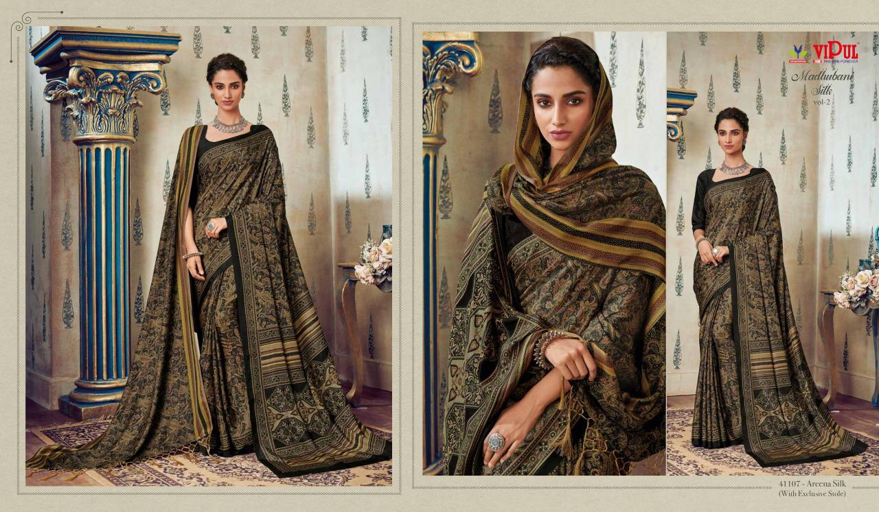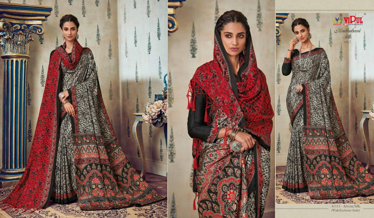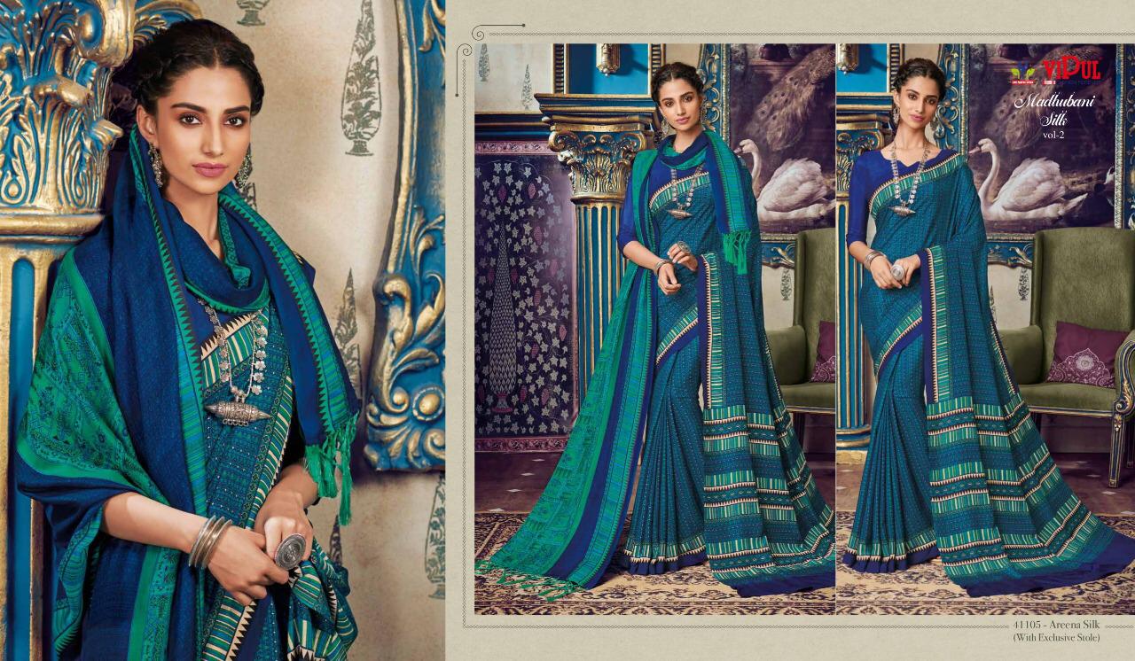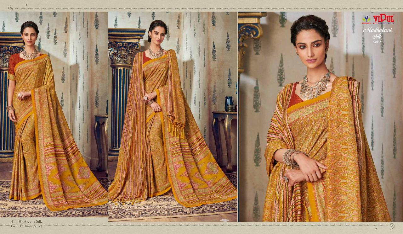 Buy Online Madhubani Silk Vol 2 By Vipul Fancy Silk Sarees Wholesale Supplier Gujarat 9 Pcs of Full Catalogue at Wholesale Price. Looking for Madhubani Silk Vol 2 By Vipul Fancy Silk Sarees Wholesale Supplier Gujarat Full Catalouge at Best Price? Buy Now Madhubani Silk Vol 2 By Vipul Fancy Silk Sarees Wholesale Supplier Gujarat at Wholesale Rate of Rs 8550 with Total 9 Pcs from authroized dealer and supplier of VIPUL Brand. Cost of Each piece is just only Rs 950 which is very low and affordable price to resale the product in your retail store ,This is Surat based Wholesale Supplier & Dealer of VIPUL Brand. Click on Brand name to Know more about VIPUL Brand's products.Call or Whatsapp on 9898838984 for booking or enquiry