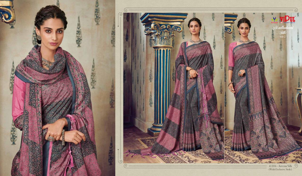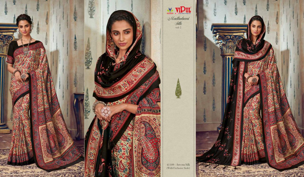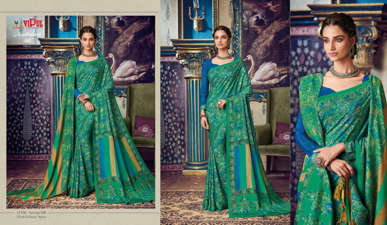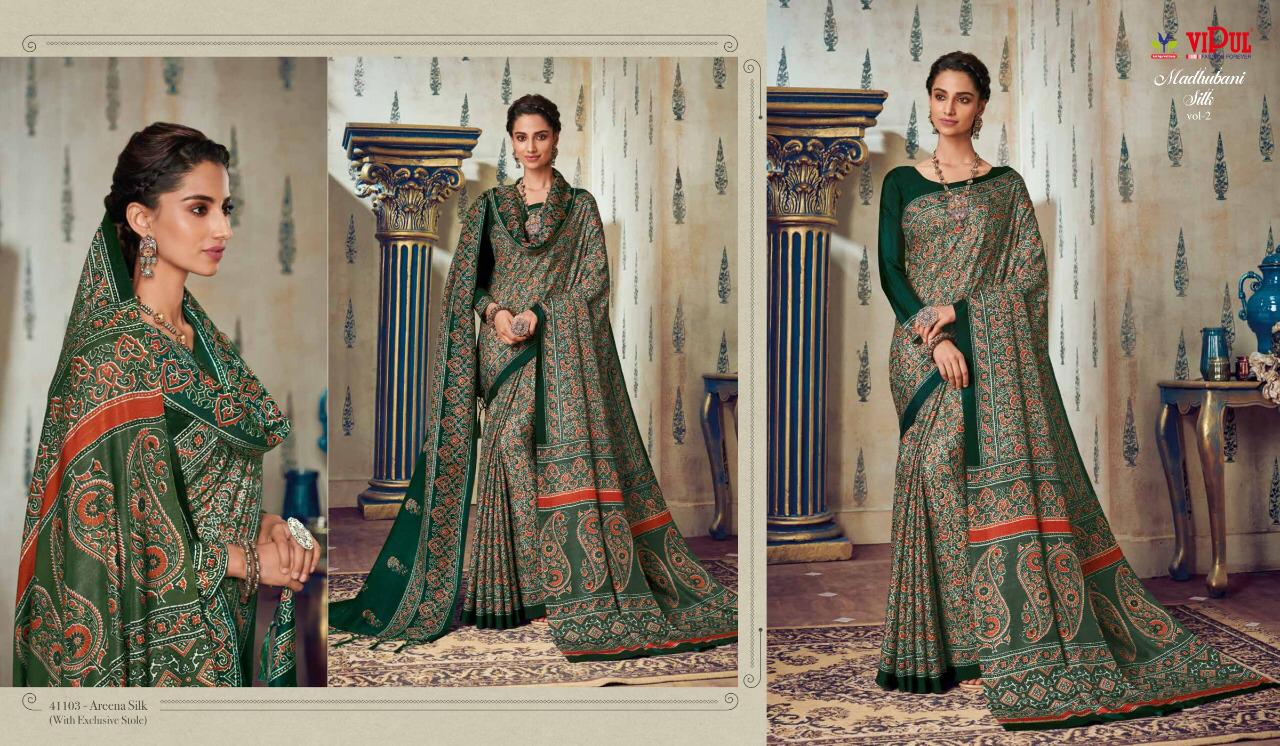 Buy Online Madhubani Silk Vol 2 By Vipul Fancy Silk Sarees Wholesale Supplier Gujarat 9 Pcs of Full Catalogue at Wholesale Price. Looking for Madhubani Silk Vol 2 By Vipul Fancy Silk Sarees Wholesale Supplier Gujarat Full Catalouge at Best Price? Buy Now Madhubani Silk Vol 2 By Vipul Fancy Silk Sarees Wholesale Supplier Gujarat at Wholesale Rate of Rs 8550 with Total 9 Pcs from authroized dealer and supplier of VIPUL Brand. Cost of Each piece is just only Rs 950 which is very low and affordable price to resale the product in your retail store ,This is Surat based Wholesale Supplier & Dealer of VIPUL Brand. Click on Brand name to Know more about VIPUL Brand's products.Call or Whatsapp on 9898838984 for booking or enquiry