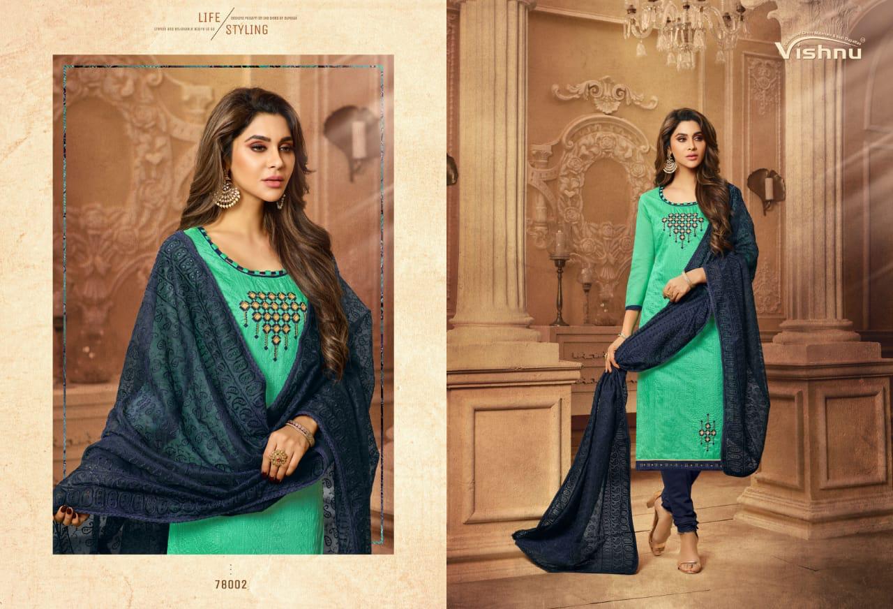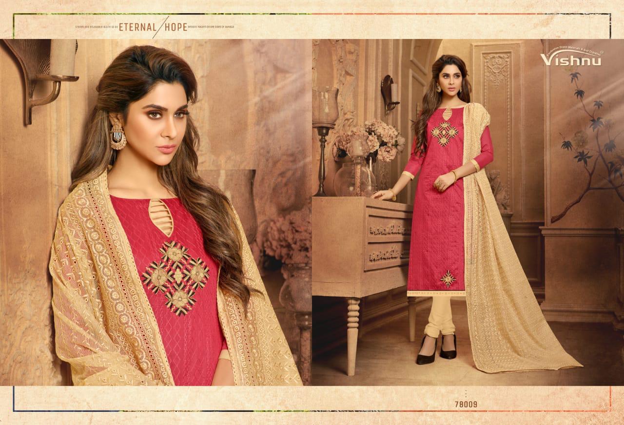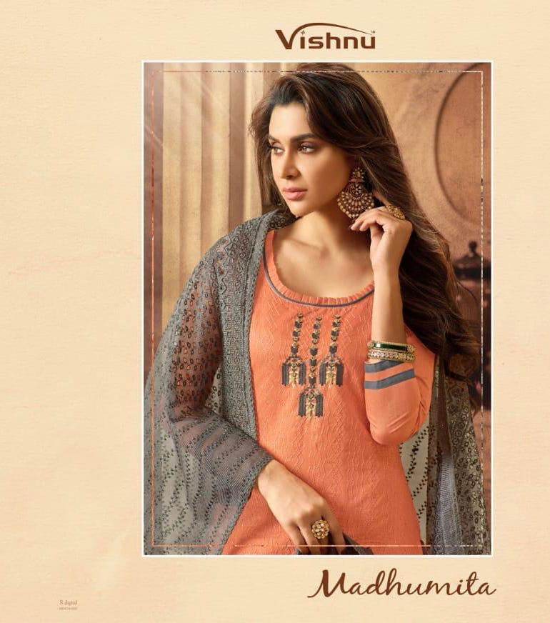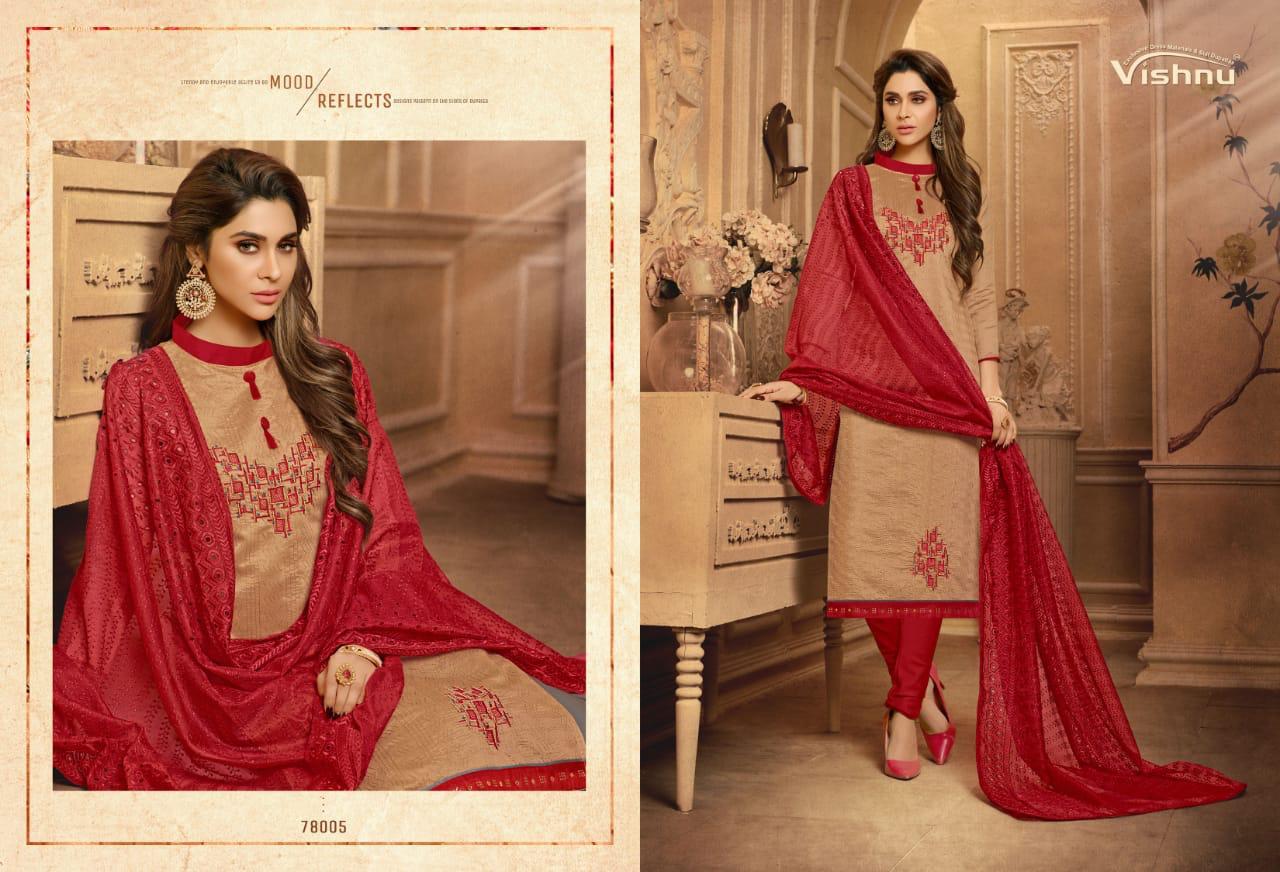 Buy Online Madhumita By Vishnu Impex Chanderi Embroidered Suits Wholesale Supplier And Dealer Surat 12 Pcs of Full Catalogue at Wholesale Price. Looking for Madhumita By Vishnu Impex Chanderi Embroidered Suits Wholesale Supplier And Dealer Surat Full Catalouge at Best Price? Buy Now Madhumita By Vishnu Impex Chanderi Embroidered Suits Wholesale Supplier And Dealer Surat at Wholesale Rate of Rs 7800 with Total 12 Pcs from authroized dealer and supplier of VISHNU IMPEX Brand. Cost of Each piece is just only Rs 650 which is very low and affordable price to resale the product in your retail store ,This is Surat based Wholesale Supplier & Dealer of VISHNU IMPEX Brand. Click on Brand name to Know more about VISHNU IMPEX Brand's products.Call or Whatsapp on 9898838984 for booking or enquiry