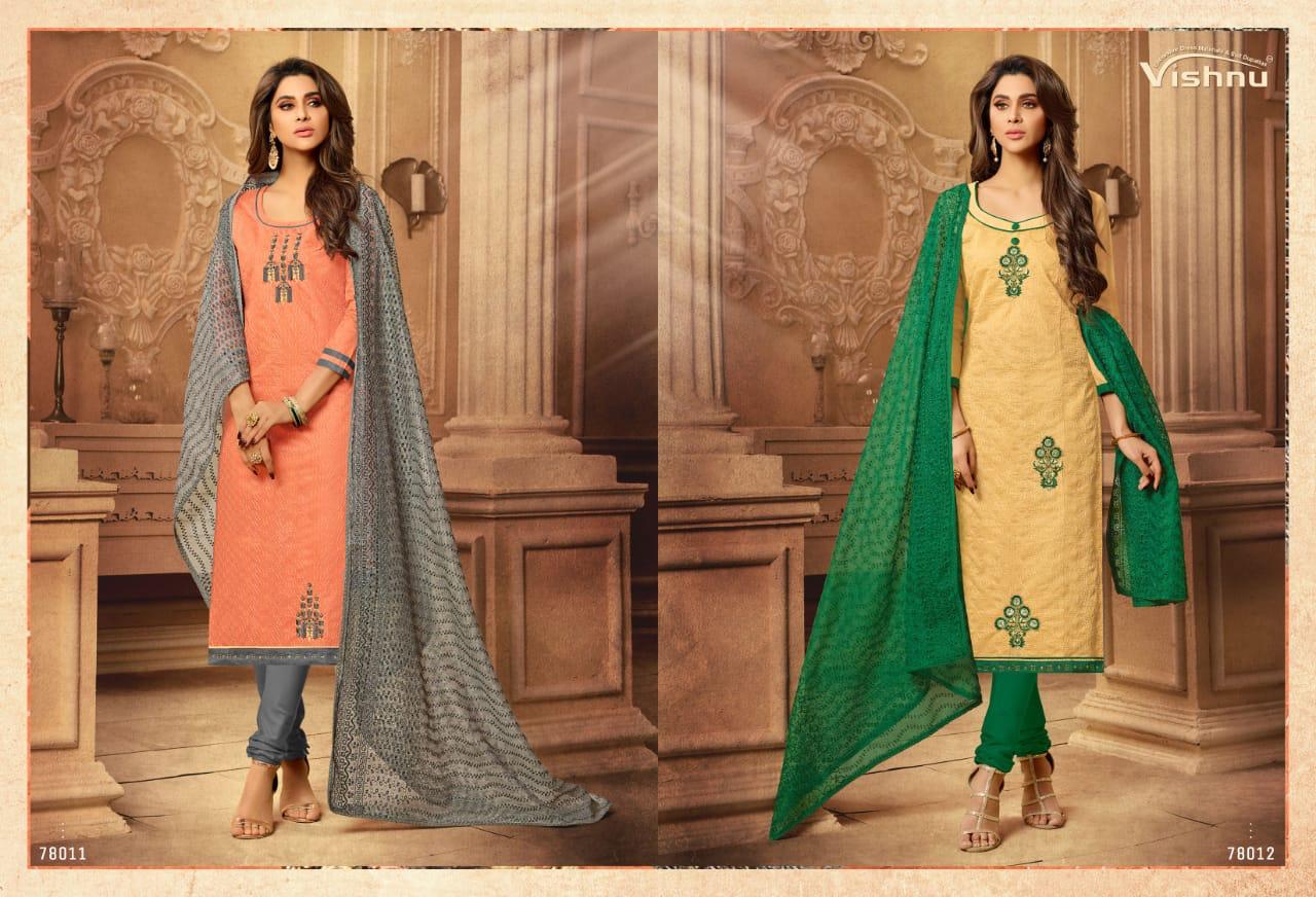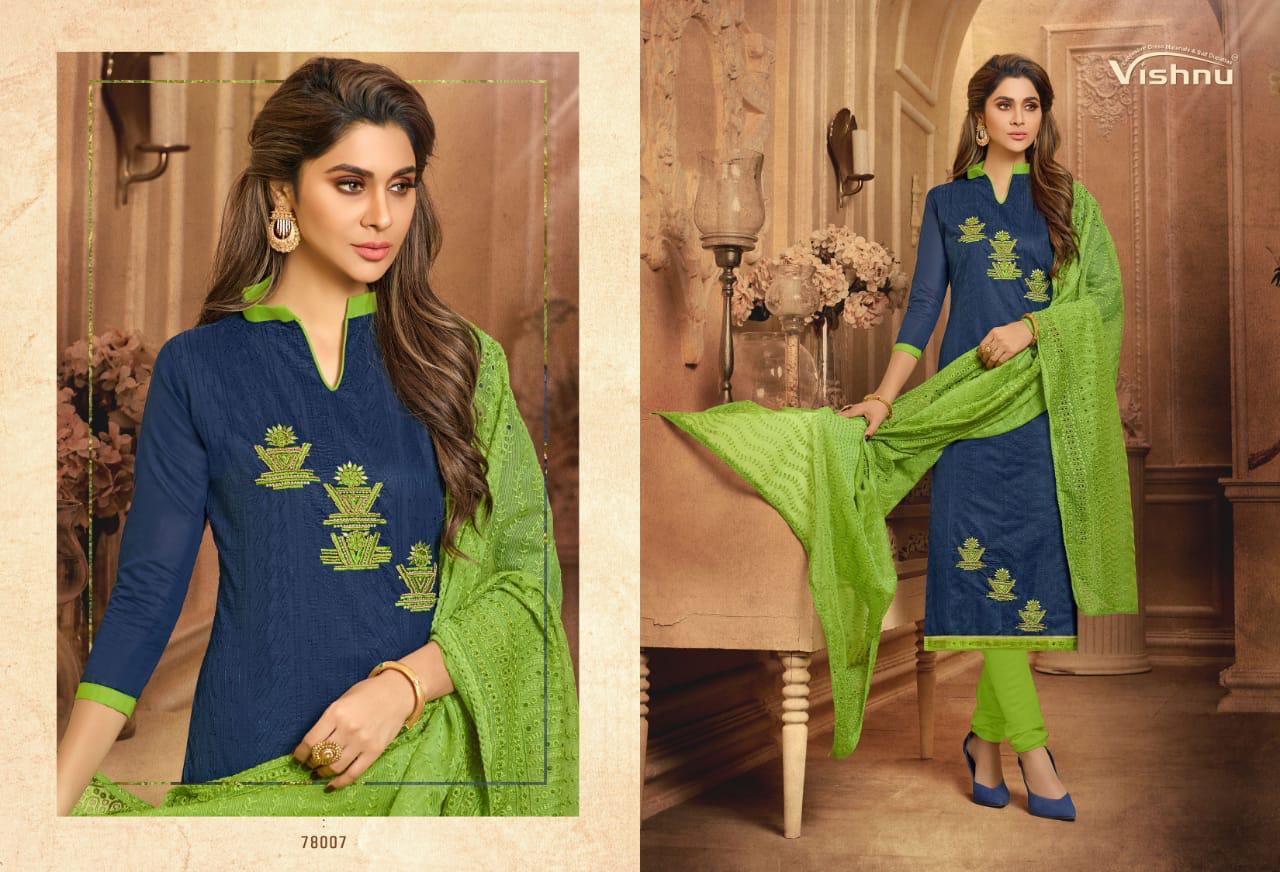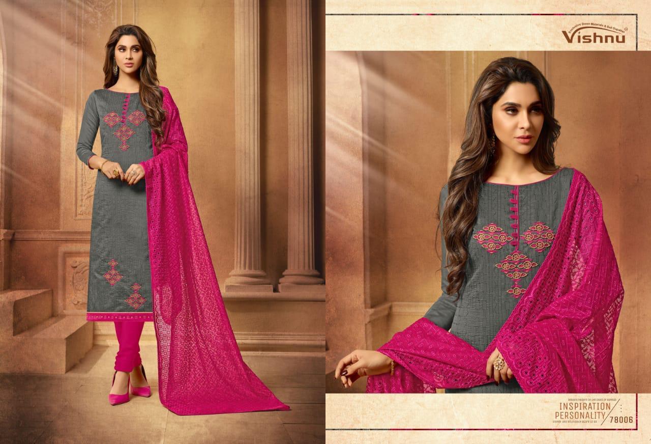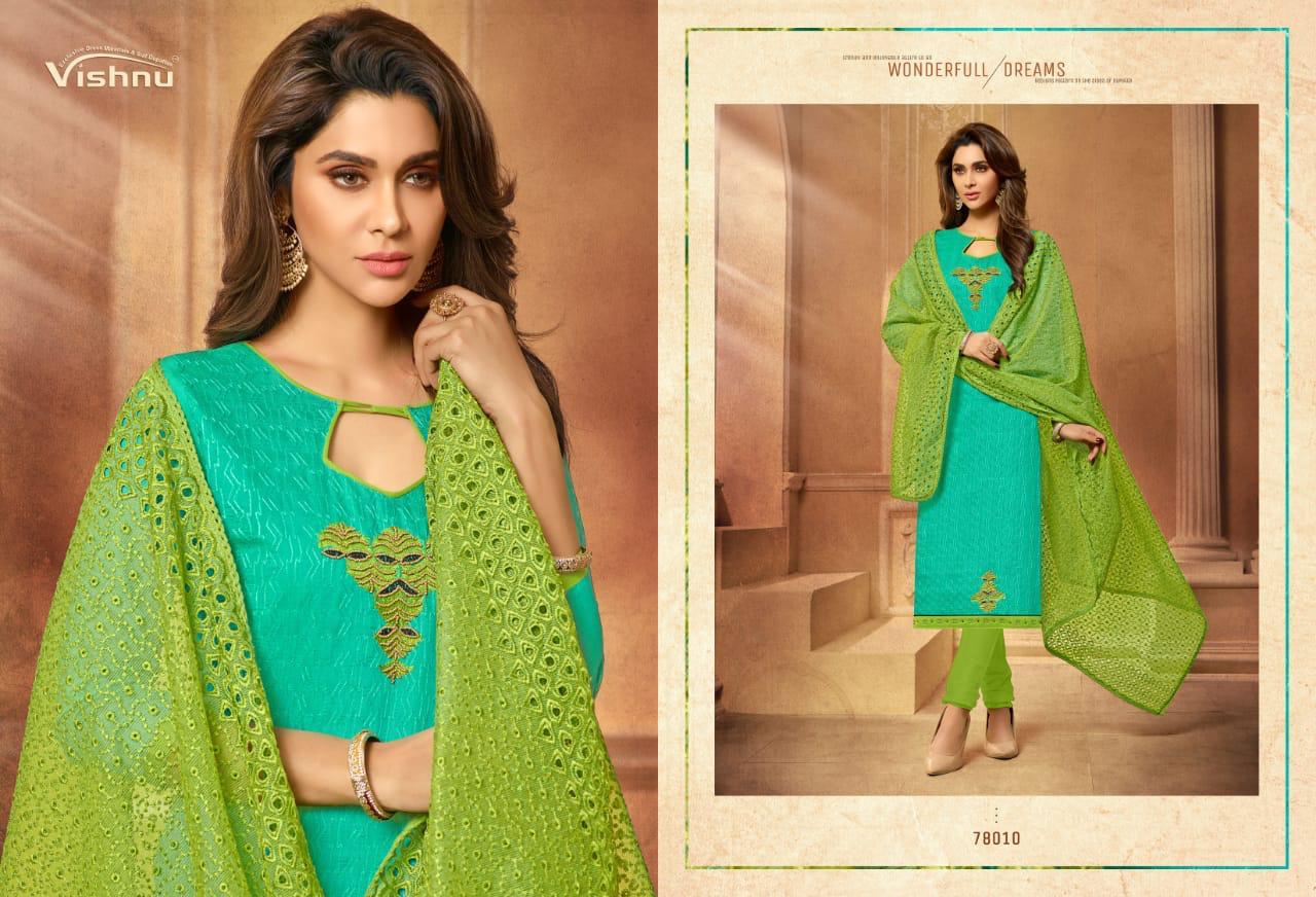 Buy Online Madhumita By Vishnu Impex Chanderi Embroidered Suits Wholesale Supplier And Dealer Surat 12 Pcs of Full Catalogue at Wholesale Price. Looking for Madhumita By Vishnu Impex Chanderi Embroidered Suits Wholesale Supplier And Dealer Surat Full Catalouge at Best Price? Buy Now Madhumita By Vishnu Impex Chanderi Embroidered Suits Wholesale Supplier And Dealer Surat at Wholesale Rate of Rs 7800 with Total 12 Pcs from authroized dealer and supplier of VISHNU IMPEX Brand. Cost of Each piece is just only Rs 650 which is very low and affordable price to resale the product in your retail store ,This is Surat based Wholesale Supplier & Dealer of VISHNU IMPEX Brand. Click on Brand name to Know more about VISHNU IMPEX Brand's products.Call or Whatsapp on 9898838984 for booking or enquiry
