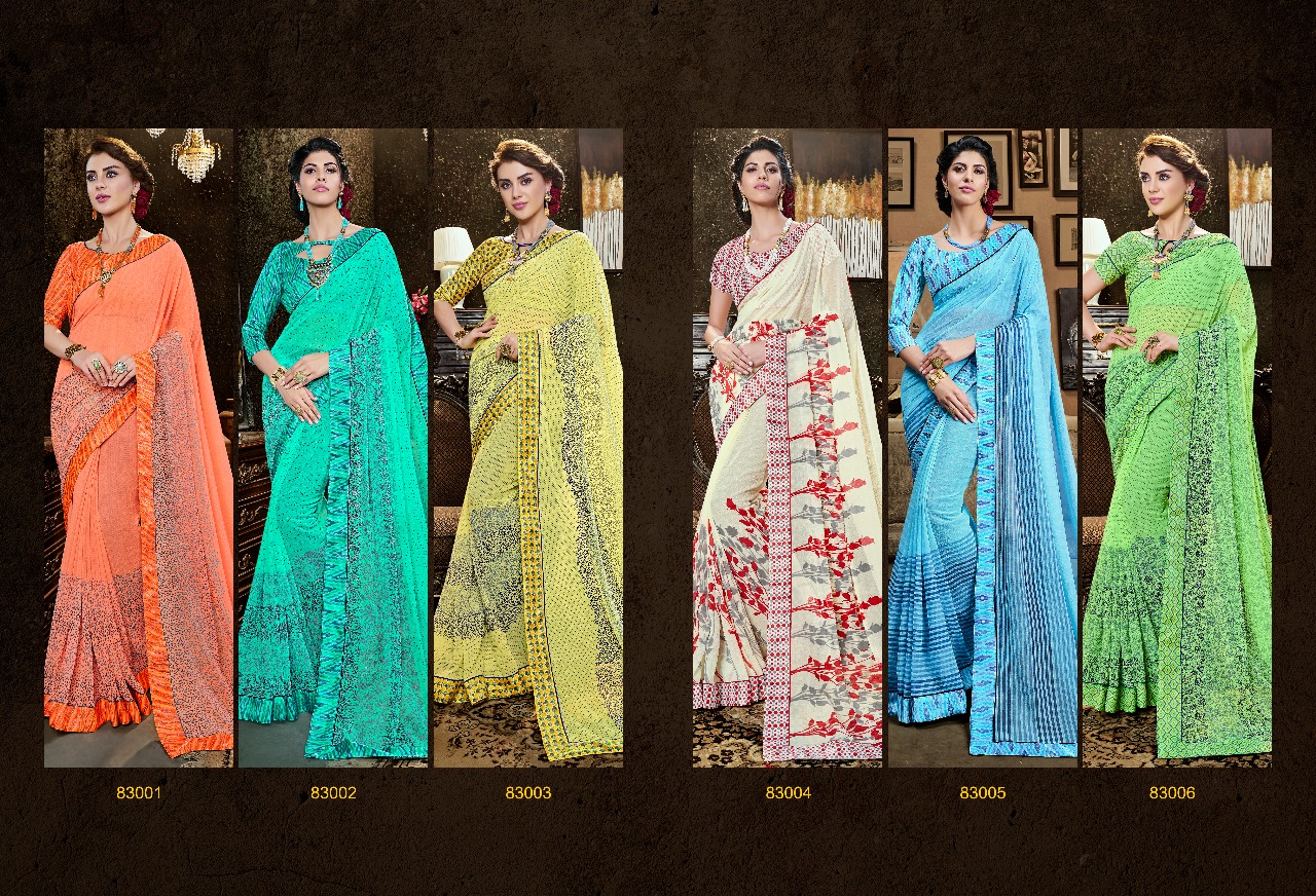 *PIKASHO FASHION* *MADHUR* *FANCY MARBEL GEORGATTE FEEL FABRIC* *FANCY PRINT LIGHT FRUIT COLOUR WITH PRINTED BORDER BLOUSE CONCEPT* *PCS:-06* *RATE:-525/-* Set To Set. GST 5 Percent Extra. *SUMMER SPECIAL* |