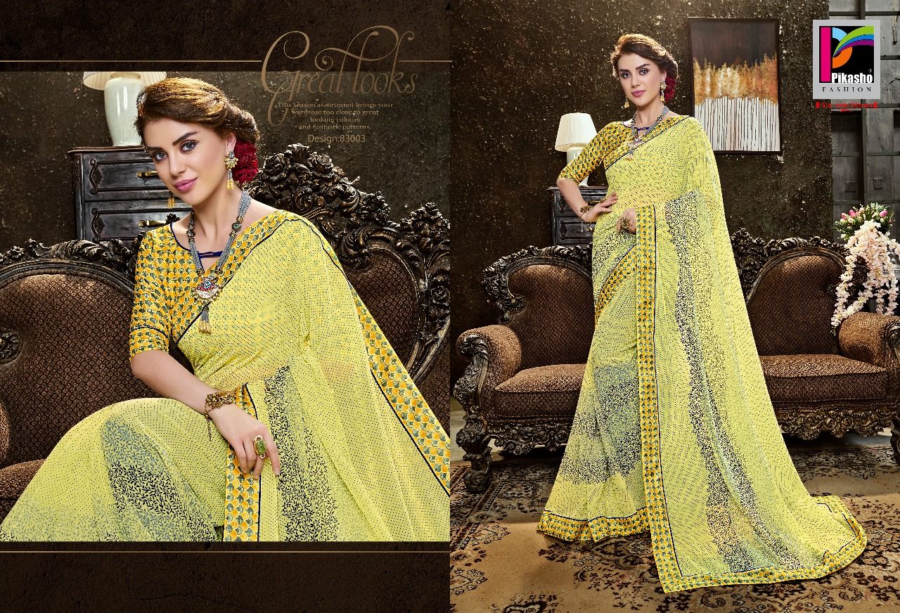 Buy Online Madhur By Pikasho Fashion Fancy Marbel Georgette Sarees Wholesale Supplier India 6 Pcs of Full Catalogue at Wholesale Price. Looking for Madhur By Pikasho Fashion Fancy Marbel Georgette Sarees Wholesale Supplier India Full Catalouge at Best Price? Buy Now Madhur By Pikasho Fashion Fancy Marbel Georgette Sarees Wholesale Supplier India at Wholesale Rate of Rs 3150 with Total 6 Pcs from authroized dealer and supplier of Pikasho Fashion Brand. Cost of Each piece is just only Rs 525 which is very low and affordable price to resale the product in your retail store ,This is Surat based Wholesale Supplier & Dealer of Pikasho Fashion Brand. Click on Brand name to Know more about Pikasho Fashion Brand's products.Call or Whatsapp on 9898838984 for booking or enquiry