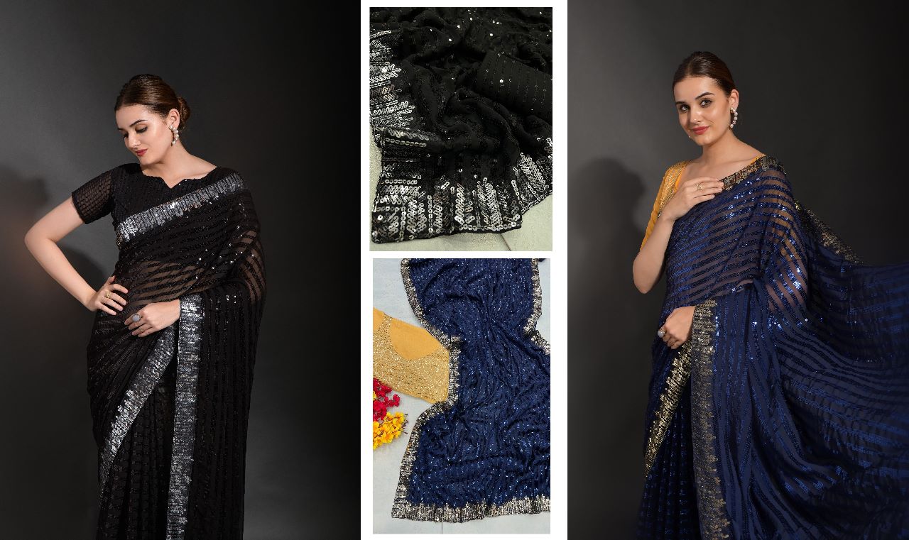 CATELOG NAME Â? MADHURI A PREMIUM SEQUINS SAREE COLLECTION ?DETAILS ? Rate. 850/-. GST shipping extra SAREE FABRIC : Soft Georgette WORK : Beautiful Sequence Embroidery Work in double run viscous thread with sequins work lace border BLOUSE : Beautiful sequins embroidery work in georgette ?Be a festive ceremony or a family get-together, these stunning sequence saree are some great picks to amp up your personal style. ? ?% QUALITY SATISFACTION GUARANTEE ?BE AWARE FROM LOW QUALITY PRODUCT? BOOK YOUR ORDER NOW..... Hd link. https://flic.kr/s/aHBqjAvbCv 100+single |