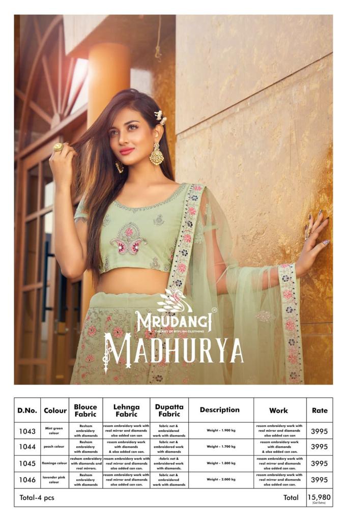 Buy Online Madhurya Series 1043 To 1046 By Mrudangi 4 Pcs of Full Catalogue at Wholesale Price. Looking for Madhurya Series 1043 To 1046 By Mrudangi Full Catalouge at Best Price? Buy Now Madhurya Series 1043 To 1046 By Mrudangi at Wholesale Rate of Rs 15980 with Total 4 Pcs from authroized dealer and supplier of Brand. Cost of Each piece is just only Rs 3995 which is very low and affordable price to resale the product in your retail store ,This is Surat based Wholesale Supplier & Dealer of Brand. Click on Brand name to Know more about Brand's products.Call or Whatsapp on 9898838984 for booking or enquiry