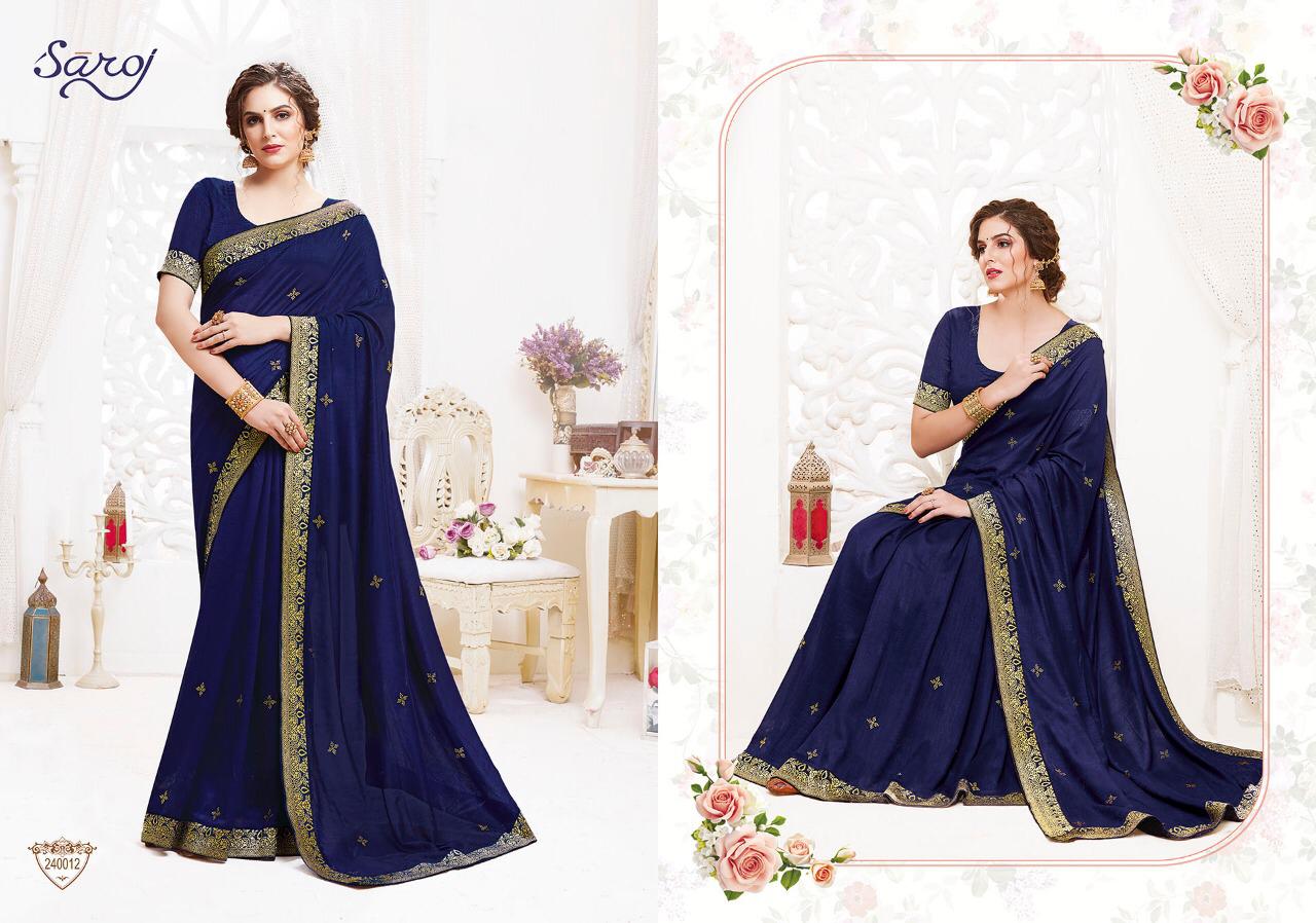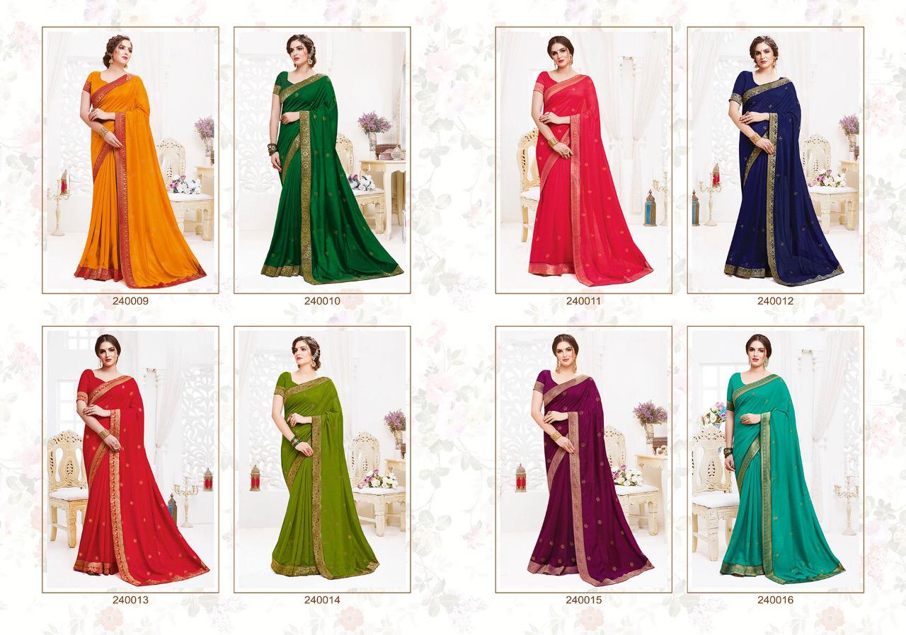 *Magical 2 by Saroj * Rate -985 per pcs Fabric: Vichitra Silk with Swarovski Work. Blouse: Vichitra Silk. 8 Designs in set . Set To Set . GST 5 Percent Extra. Delivery 3-4 days |