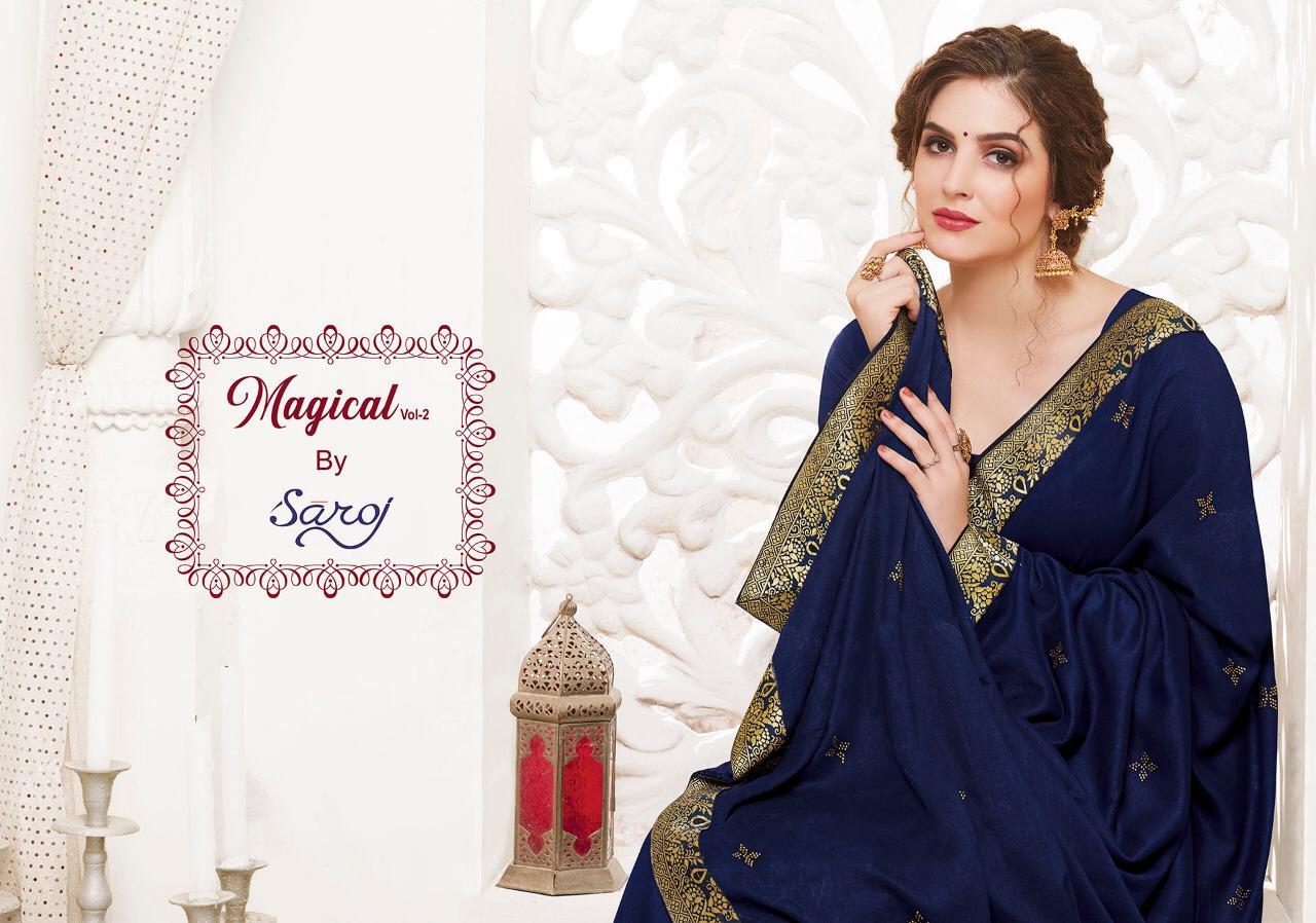 Buy Online Magical 2 By Saroj Vichitra Silk Sarees Wholesale Supplier And Dealer Surat 8 Pcs of Full Catalogue at Wholesale Price. Looking for Magical 2 By Saroj Vichitra Silk Sarees Wholesale Supplier And Dealer Surat Full Catalouge at Best Price? Buy Now Magical 2 By Saroj Vichitra Silk Sarees Wholesale Supplier And Dealer Surat at Wholesale Rate of Rs 7880 with Total 8 Pcs from authroized dealer and supplier of SAROJ SAREE Brand. Cost of Each piece is just only Rs 985 which is very low and affordable price to resale the product in your retail store ,This is Surat based Wholesale Supplier & Dealer of SAROJ SAREE Brand. Click on Brand name to Know more about SAROJ SAREE Brand's products.Call or Whatsapp on 9898838984 for booking or enquiry