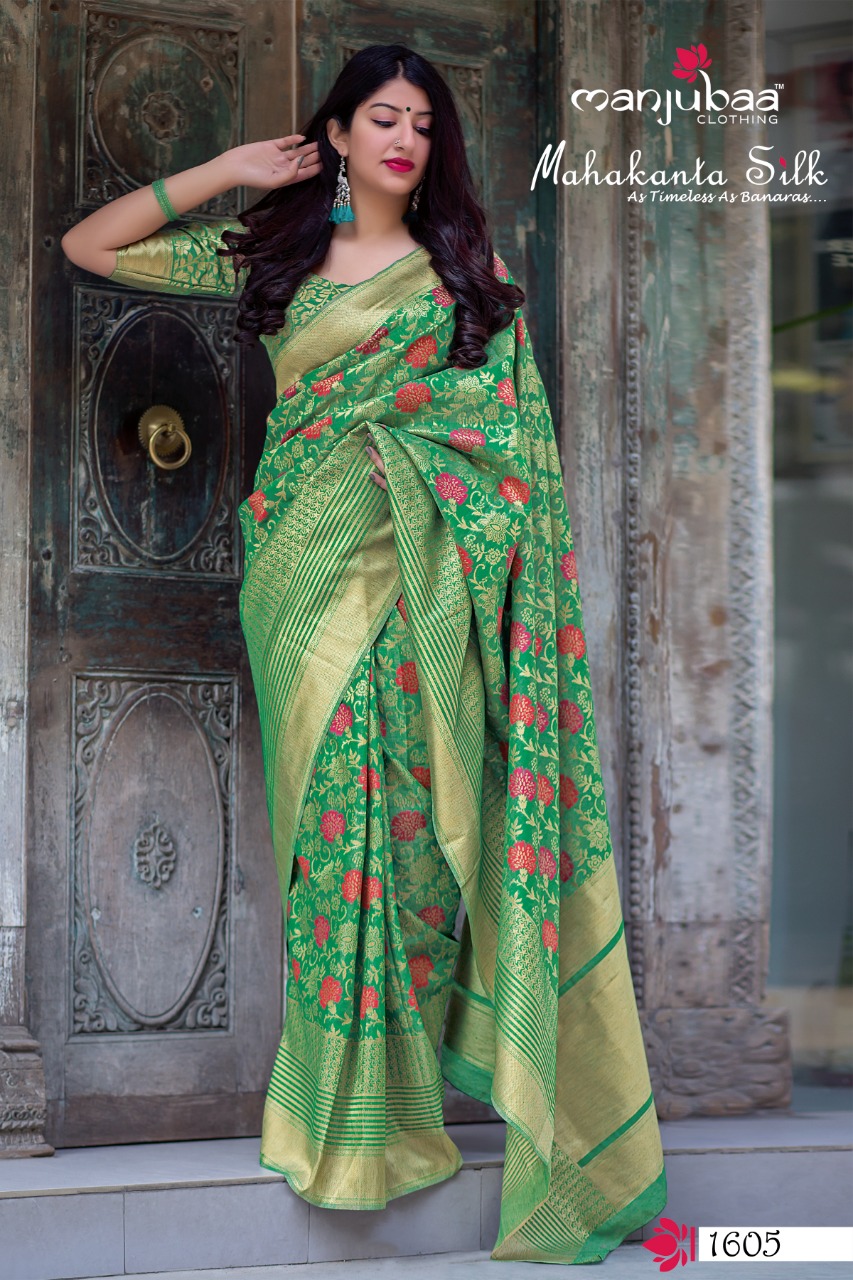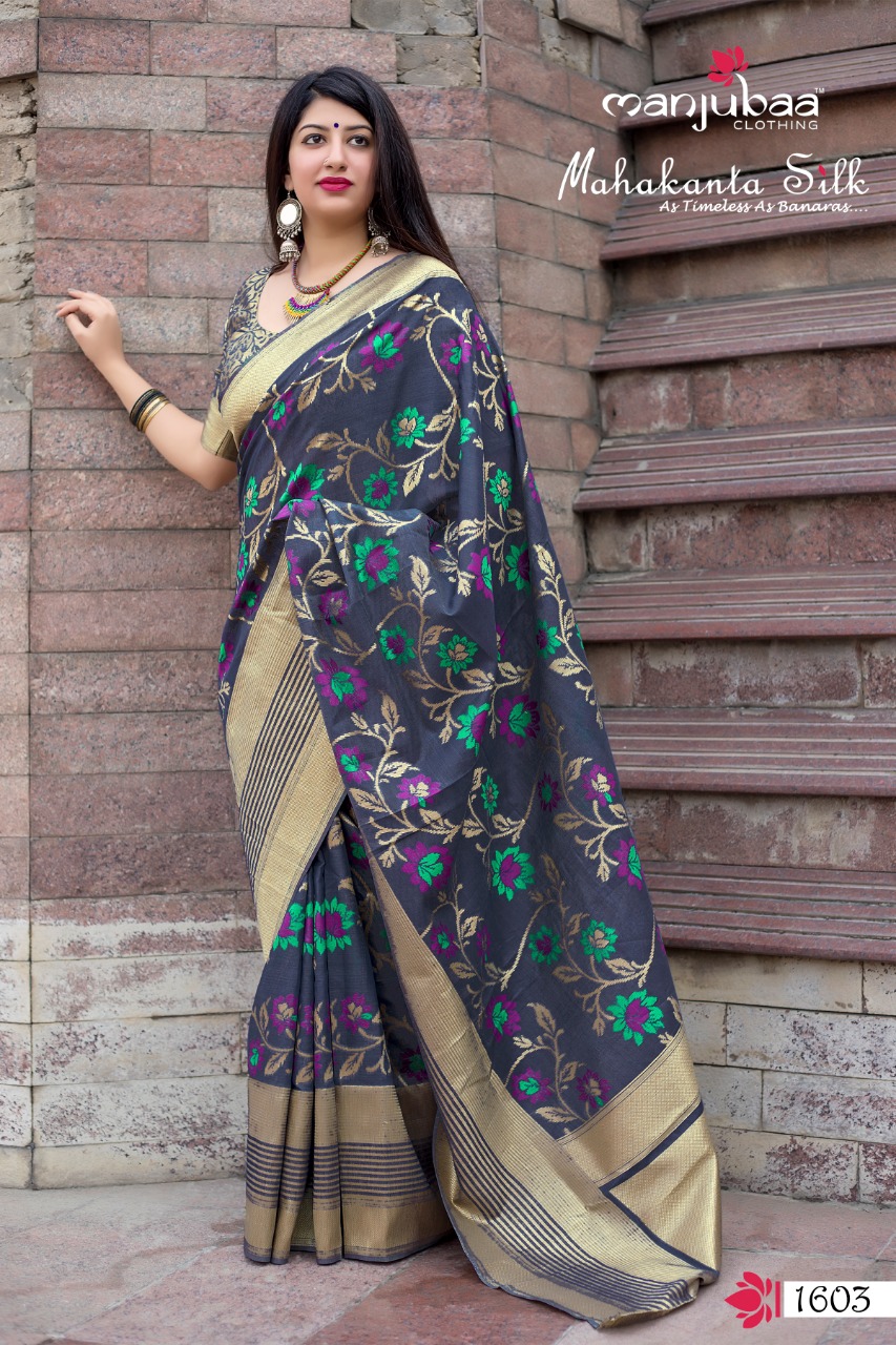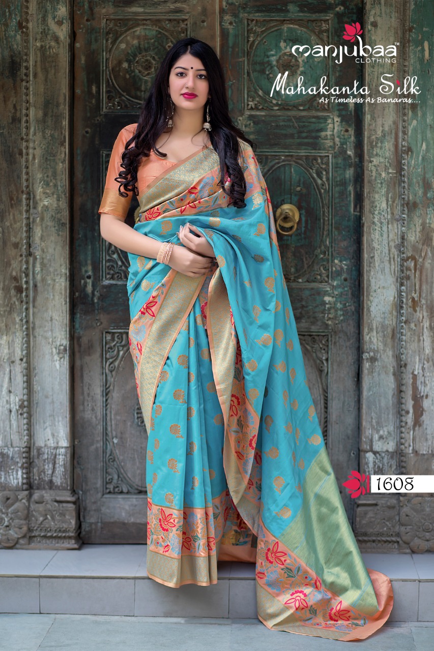 Buy Online Mahakanta Silk By Manjubaa 1601 Series Fancy Pure Jamdani Silk Minakari Weaving Saree Vollection Wholesaler Surat 10 Pcs of Full Catalogue at Wholesale Price. Looking for Mahakanta Silk By Manjubaa 1601 Series Fancy Pure Jamdani Silk Minakari Weaving Saree Vollection Wholesaler Surat Full Catalouge at Best Price? Buy Now Mahakanta Silk By Manjubaa 1601 Series Fancy Pure Jamdani Silk Minakari Weaving Saree Vollection Wholesaler Surat at Wholesale Rate of Rs 17950 with Total 10 Pcs from authroized dealer and supplier of Manjubaa Clothing Brand. Cost of Each piece is just only Rs 1795 which is very low and affordable price to resale the product in your retail store ,This is Surat based Wholesale Supplier & Dealer of Manjubaa Clothing Brand. Click on Brand name to Know more about Manjubaa Clothing Brand's products.Call or Whatsapp on 9898838984 for booking or enquiry