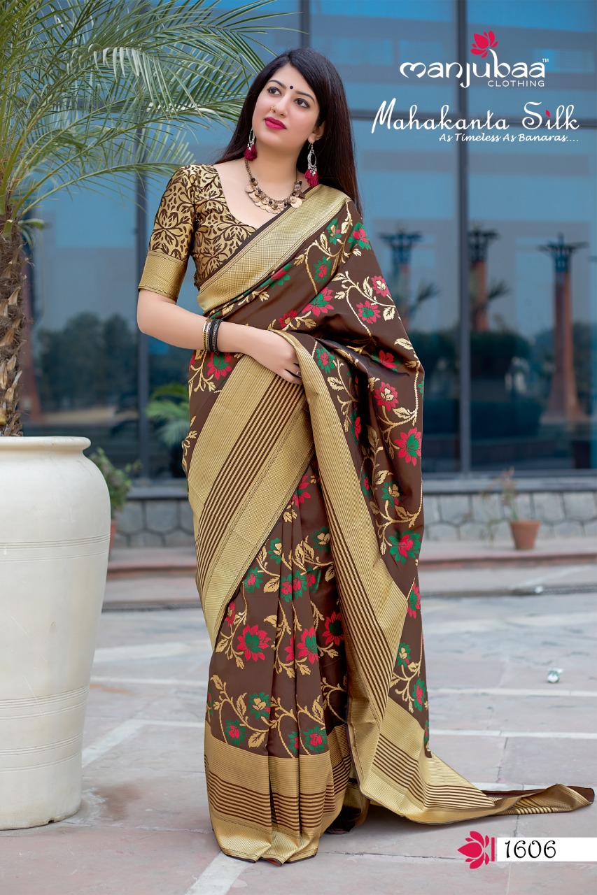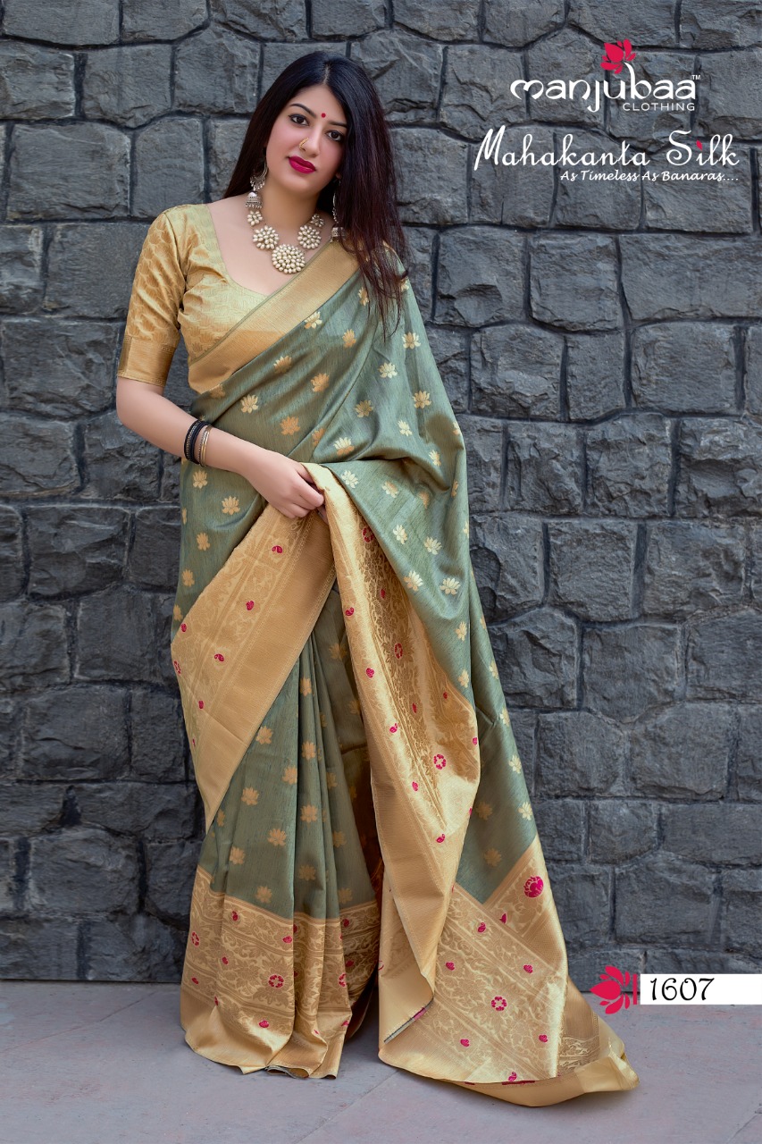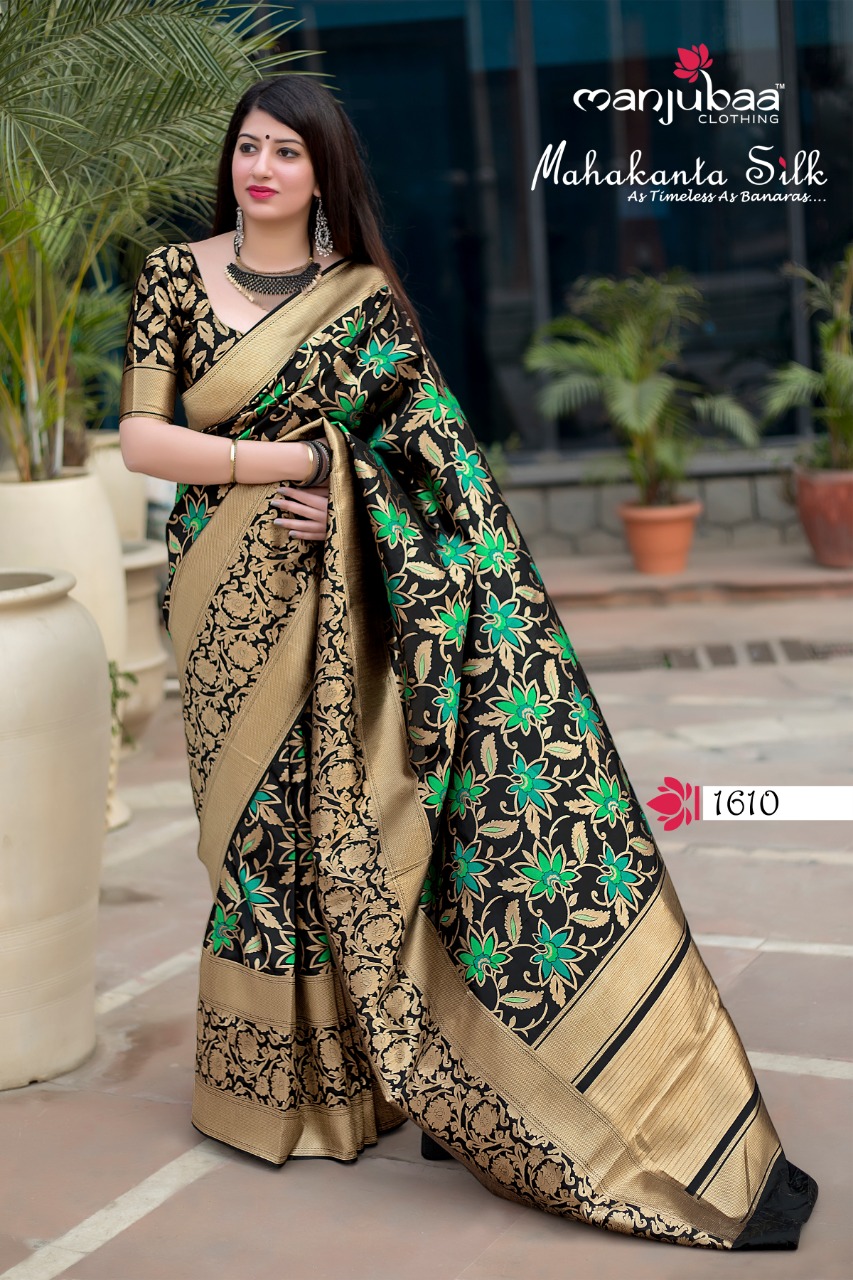 Buy Online Mahakanta Silk By Manjubaa 1601 Series Fancy Pure Jamdani Silk Minakari Weaving Saree Vollection Wholesaler Surat 10 Pcs of Full Catalogue at Wholesale Price. Looking for Mahakanta Silk By Manjubaa 1601 Series Fancy Pure Jamdani Silk Minakari Weaving Saree Vollection Wholesaler Surat Full Catalouge at Best Price? Buy Now Mahakanta Silk By Manjubaa 1601 Series Fancy Pure Jamdani Silk Minakari Weaving Saree Vollection Wholesaler Surat at Wholesale Rate of Rs 17950 with Total 10 Pcs from authroized dealer and supplier of Manjubaa Clothing Brand. Cost of Each piece is just only Rs 1795 which is very low and affordable price to resale the product in your retail store ,This is Surat based Wholesale Supplier & Dealer of Manjubaa Clothing Brand. Click on Brand name to Know more about Manjubaa Clothing Brand's products.Call or Whatsapp on 9898838984 for booking or enquiry