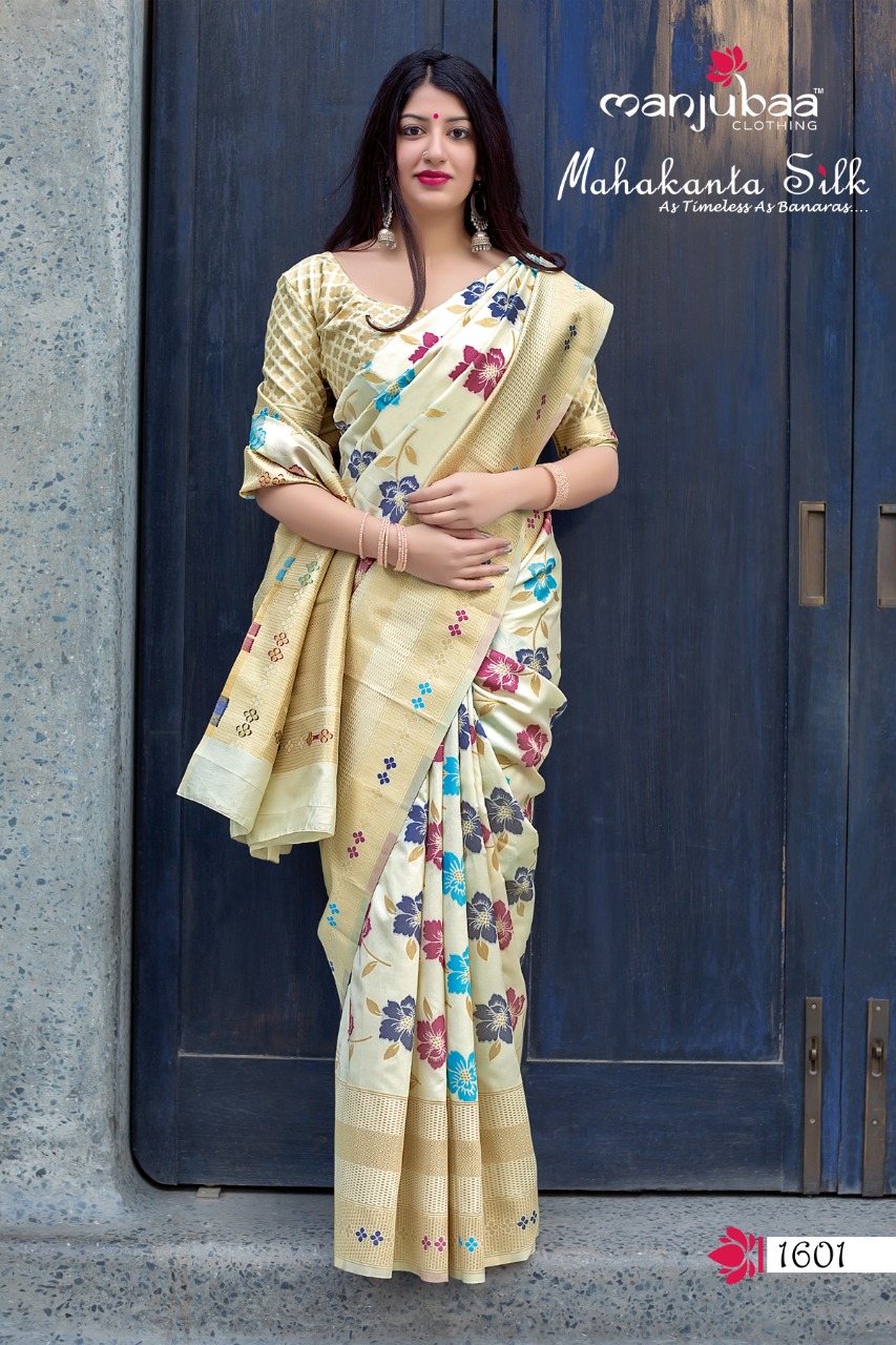 Mahakanta Silk By Manjubaa 1601 Series Fancy Pure Jamdani Silk Minakari Weaving Saree Vollection Wholesaler Surat