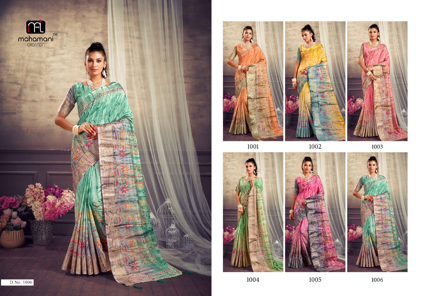 Buy Online Mahamani Creation New Launching Maheshwari Dola Silk Jari Border Sarees Collection Surat 6 Pcs of Full Catalogue at Wholesale Price. Looking for Mahamani Creation New Launching Maheshwari Dola Silk Jari Border Sarees Collection Surat Full Catalouge at Best Price? Buy Now Mahamani Creation New Launching Maheshwari Dola Silk Jari Border Sarees Collection Surat at Wholesale Rate of Rs 3150 with Total 6 Pcs from authroized dealer and supplier of Brand. Cost of Each piece is just only Rs 525 which is very low and affordable price to resale the product in your retail store ,This is Surat based Wholesale Supplier & Dealer of Brand. Click on Brand name to Know more about Brand's products.Call or Whatsapp on 9898838984 for booking or enquiry