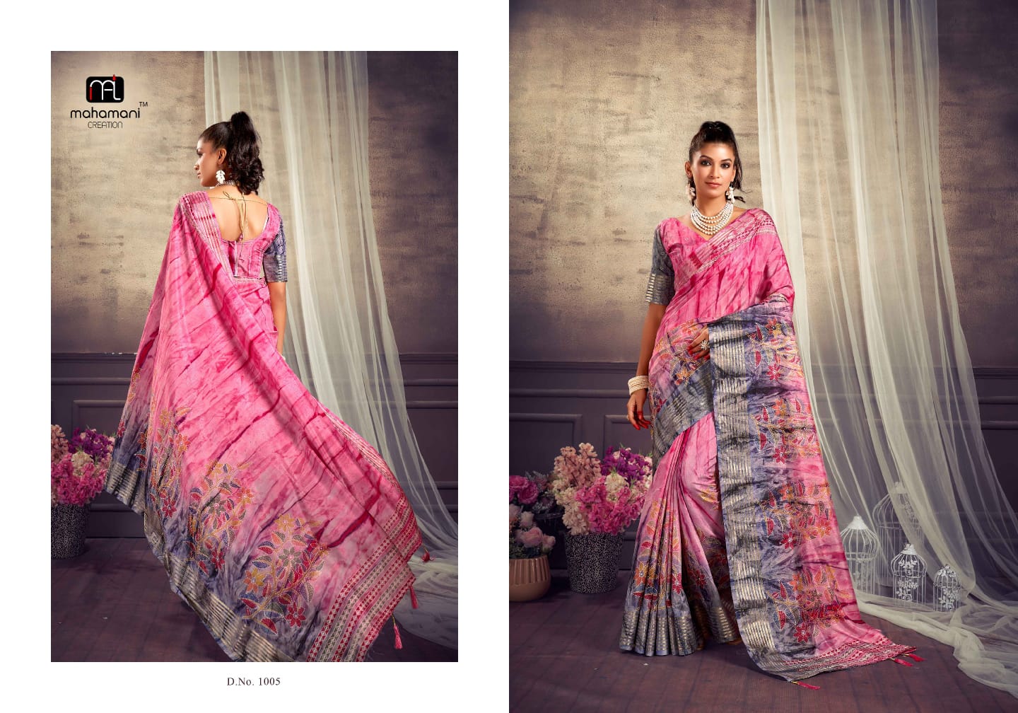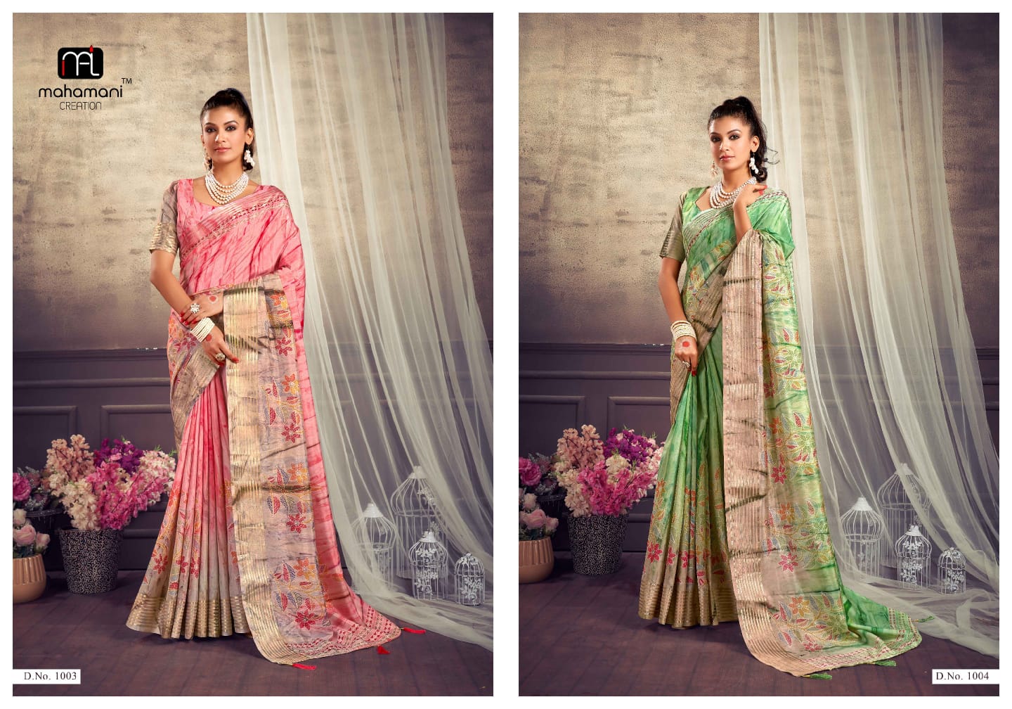 Mahamani Creation New Launching Maheshwari Dola Silk Jari Border Sarees Collection Surat