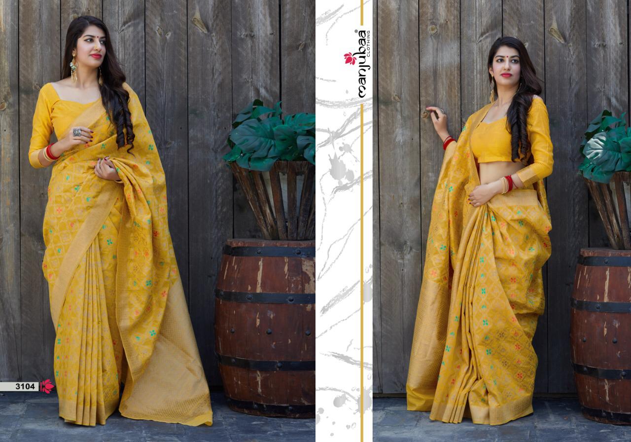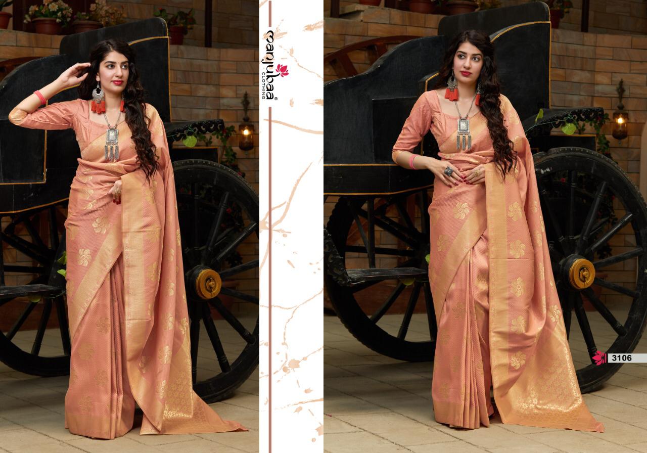 Buy Online Mahamaya Silk By Manjubaa Series 3103 To 3106 Silk Sarees Set And Single Wholesale Supplier Gujarat 0 Pcs of Full Catalogue at Wholesale Price. Looking for Mahamaya Silk By Manjubaa Series 3103 To 3106 Silk Sarees Set And Single Wholesale Supplier Gujarat Full Catalouge at Best Price? Buy Now Mahamaya Silk By Manjubaa Series 3103 To 3106 Silk Sarees Set And Single Wholesale Supplier Gujarat at Wholesale Rate of Rs 0 with Total 0 Pcs from authroized dealer and supplier of Manjubaa Clothing Brand. Cost of Each piece is just only Rs 0 which is very low and affordable price to resale the product in your retail store ,This is Surat based Wholesale Supplier & Dealer of Manjubaa Clothing Brand. Click on Brand name to Know more about Manjubaa Clothing Brand's products.Call or Whatsapp on 9898838984 for booking or enquiry