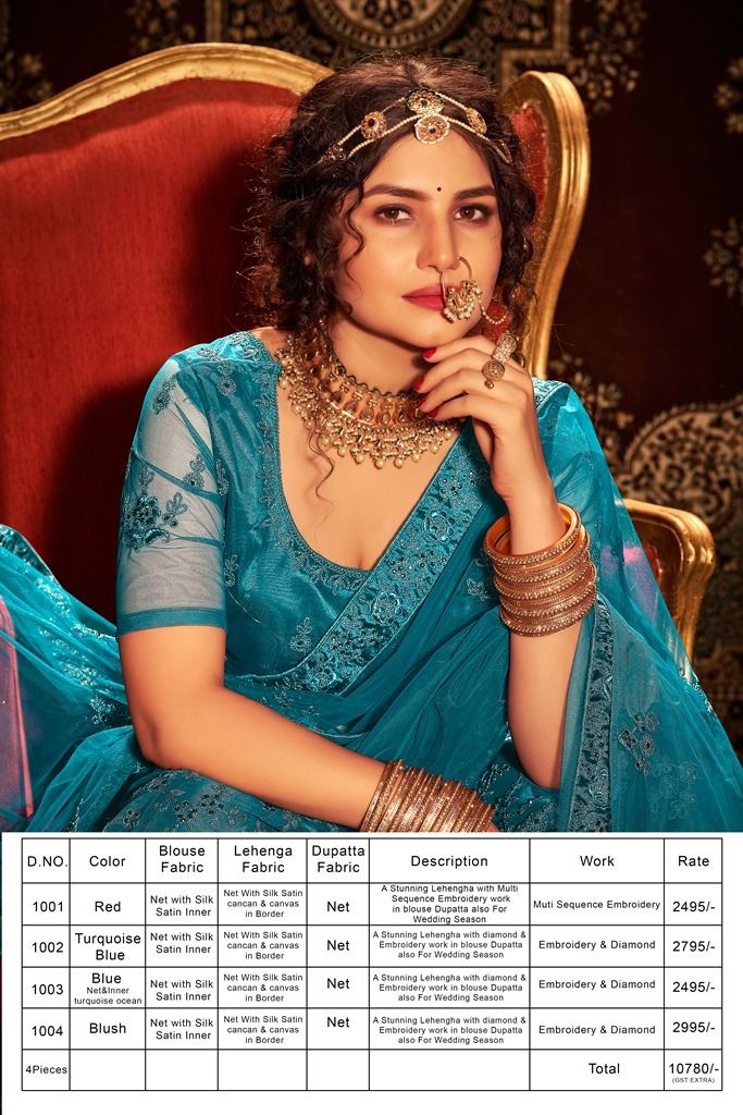 Buy Online Maharani 1001 Series By Mrudangi Lehanga Choli Single And Set Stockiest And Supplier From Surat 4 Pcs of Full Catalogue at Wholesale Price. Looking for Maharani 1001 Series By Mrudangi Lehanga Choli Single And Set Stockiest And Supplier From Surat Full Catalouge at Best Price? Buy Now Maharani 1001 Series By Mrudangi Lehanga Choli Single And Set Stockiest And Supplier From Surat at Wholesale Rate of Rs 0 with Total 4 Pcs from authroized dealer and supplier of Brand. Cost of Each piece is just only Rs 0 which is very low and affordable price to resale the product in your retail store ,This is Surat based Wholesale Supplier & Dealer of Brand. Click on Brand name to Know more about Brand's products.Call or Whatsapp on 9898838984 for booking or enquiry