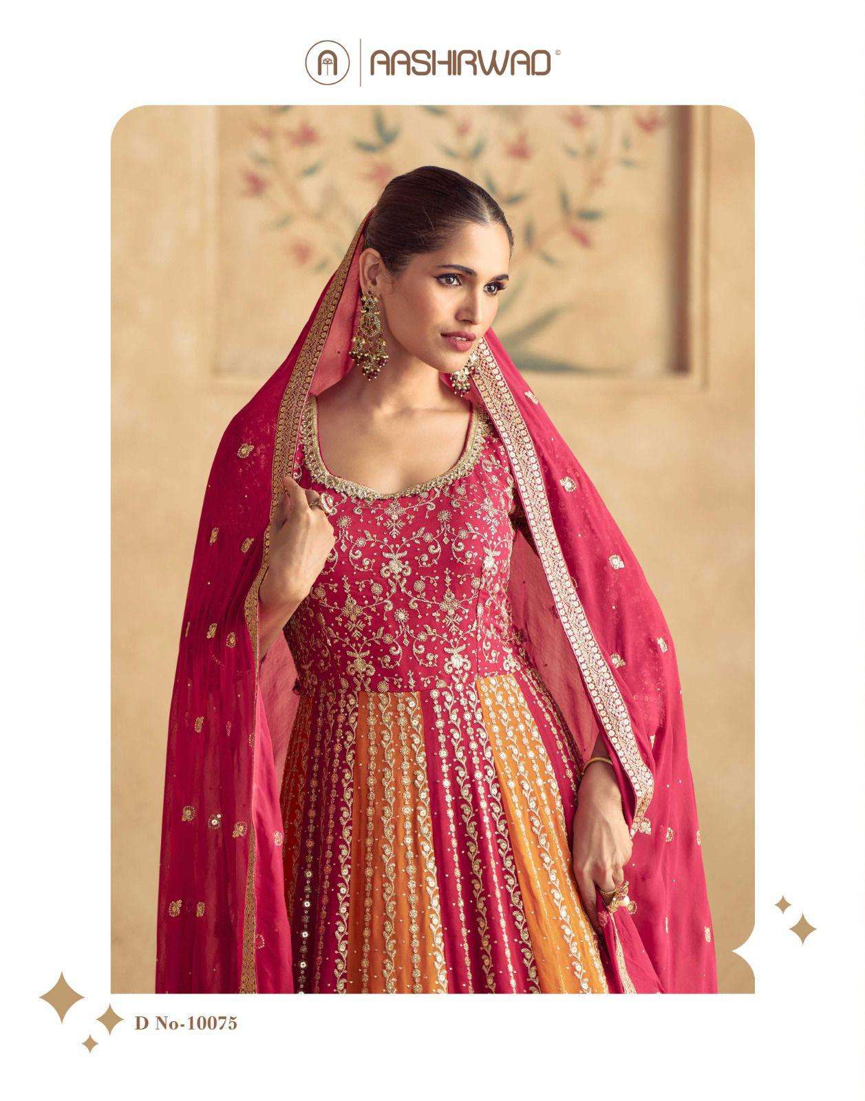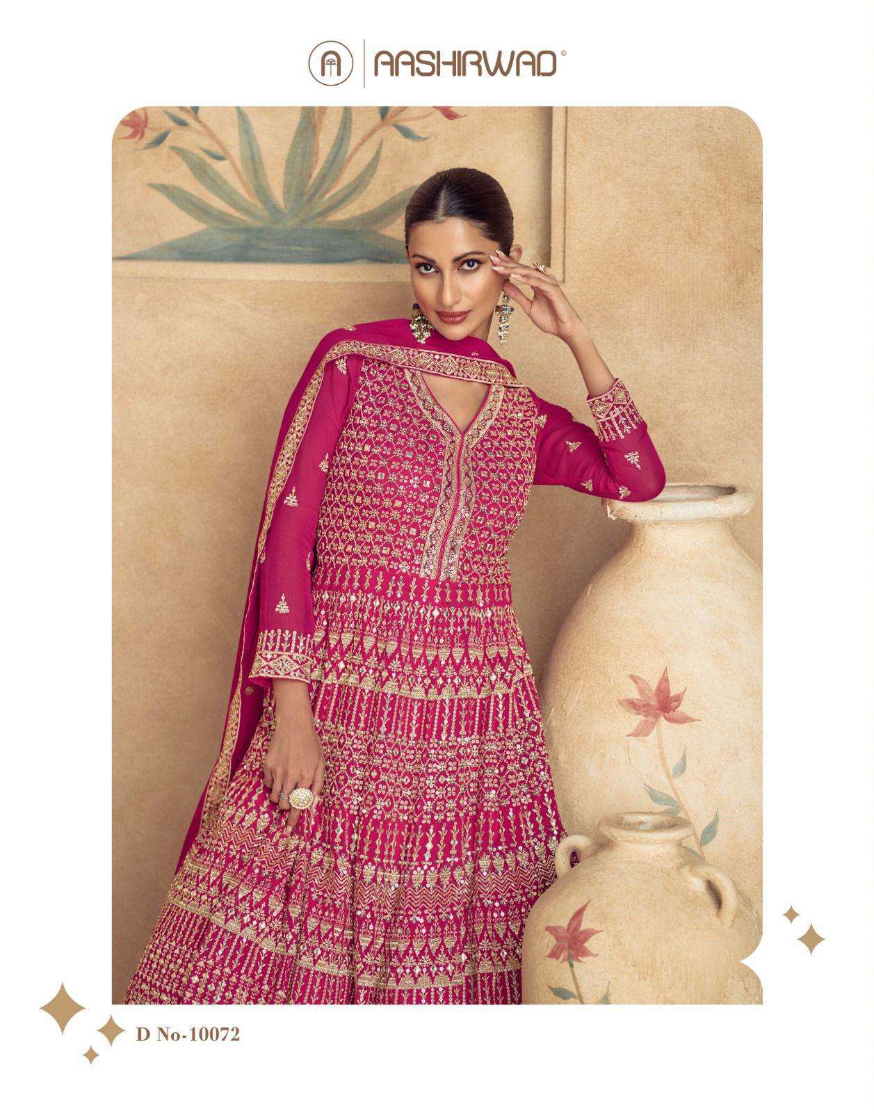 Buy Online MAHARANI 10072 TO 10075 BY AASHIRWAD CREATION LONG GOWN TIPE SUITS COLLECTION MANUFACTURER SURAT 4 Pcs of Full Catalogue at Wholesale Price. Looking for MAHARANI 10072 TO 10075 BY AASHIRWAD CREATION LONG GOWN TIPE SUITS COLLECTION MANUFACTURER SURAT Full Catalouge at Best Price? Buy Now MAHARANI 10072 TO 10075 BY AASHIRWAD CREATION LONG GOWN TIPE SUITS COLLECTION MANUFACTURER SURAT at Wholesale Rate of Rs 13980 with Total 4 Pcs from authroized dealer and supplier of AASHIRWAD Brand. Cost of Each piece is just only Rs 3495 which is very low and affordable price to resale the product in your retail store ,This is Surat based Wholesale Supplier & Dealer of AASHIRWAD Brand. Click on Brand name to Know more about AASHIRWAD Brand's products.Call or Whatsapp on 9898838984 for booking or enquiry