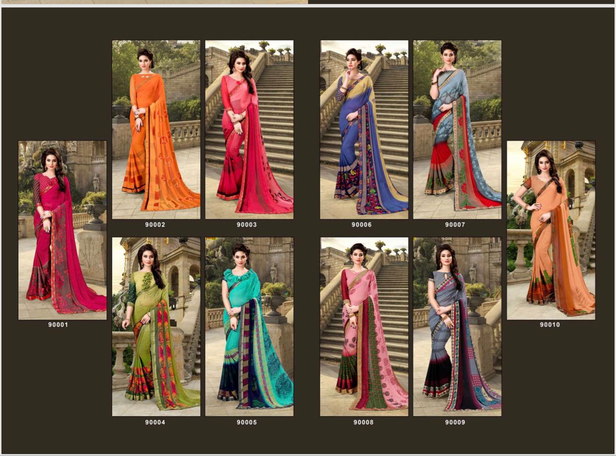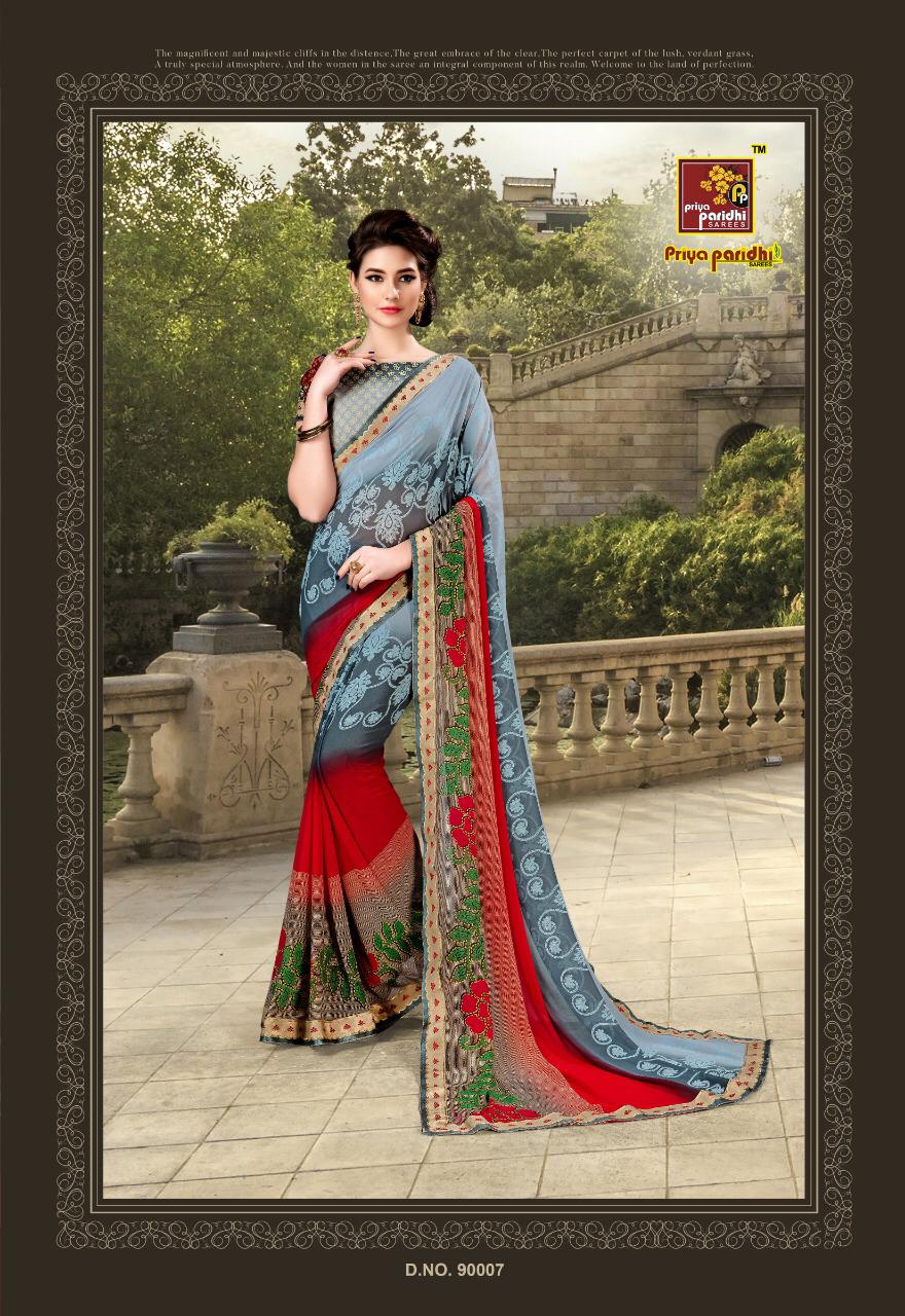 Buy Online Maharani By Priya Paridhi 90001 Series Fancy Weightless Printed Saree Catlog Wholesale Dealer Surat 10 Pcs of Full Catalogue at Wholesale Price. Looking for Maharani By Priya Paridhi 90001 Series Fancy Weightless Printed Saree Catlog Wholesale Dealer Surat Full Catalouge at Best Price? Buy Now Maharani By Priya Paridhi 90001 Series Fancy Weightless Printed Saree Catlog Wholesale Dealer Surat at Wholesale Rate of Rs 5650 with Total 10 Pcs from authroized dealer and supplier of PRIYA PARIDHI Brand. Cost of Each piece is just only Rs 565 which is very low and affordable price to resale the product in your retail store ,This is Surat based Wholesale Supplier & Dealer of PRIYA PARIDHI Brand. Click on Brand name to Know more about PRIYA PARIDHI Brand's products.Call or Whatsapp on 9898838984 for booking or enquiry