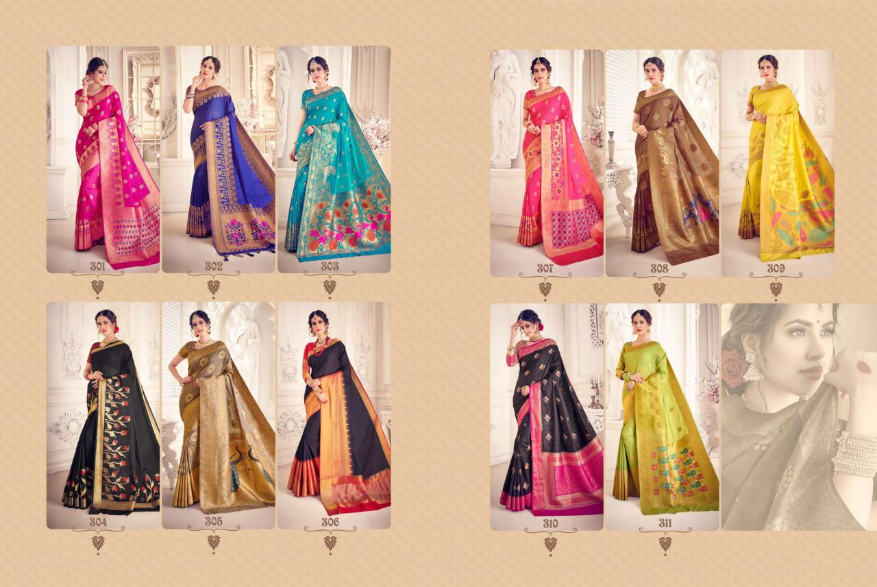 Maharani Silk Vol 301 By Raj Sanskar Takht 301 Series Fancy Party Wear Weaving Silk Saree Collection Wholesaler Surat