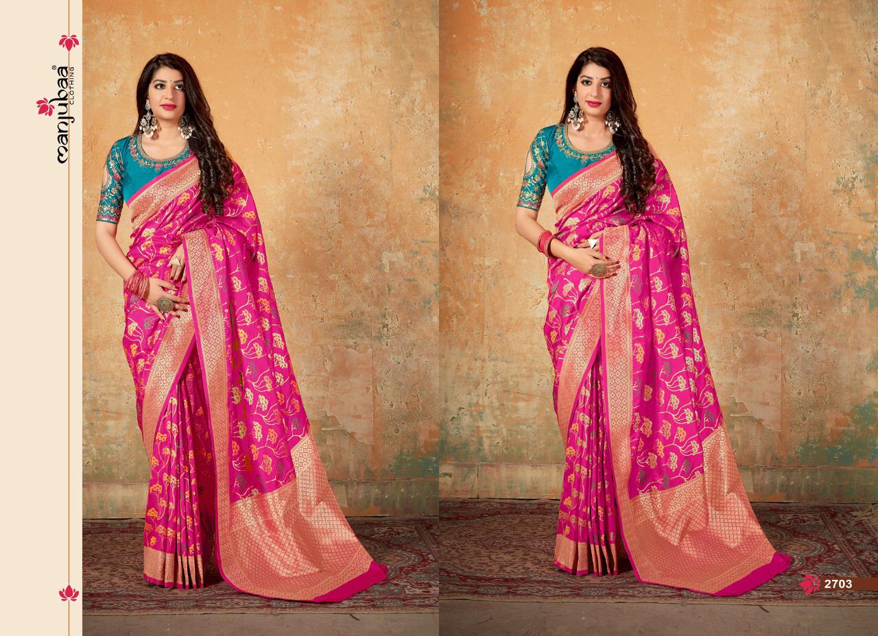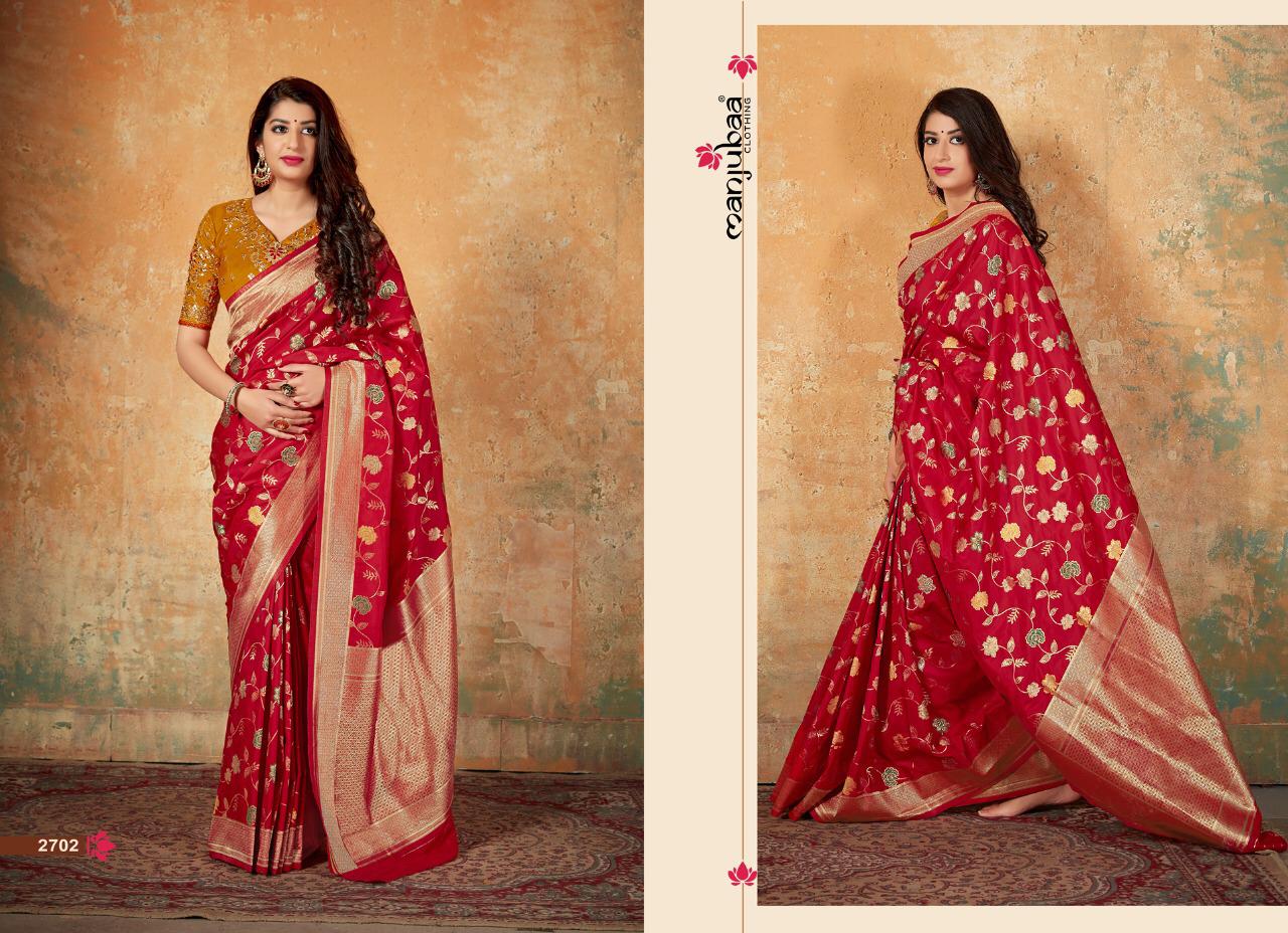 Buy Online Mahavalli Silk Series 2701 To 2705 B And Manjuba Silk Sarees Set And Single Wholesale Supplier And Dealer Gujarat 0 Pcs of Full Catalogue at Wholesale Price. Looking for Mahavalli Silk Series 2701 To 2705 B And Manjuba Silk Sarees Set And Single Wholesale Supplier And Dealer Gujarat Full Catalouge at Best Price? Buy Now Mahavalli Silk Series 2701 To 2705 B And Manjuba Silk Sarees Set And Single Wholesale Supplier And Dealer Gujarat at Wholesale Rate of Rs 0 with Total 0 Pcs from authroized dealer and supplier of Manjubaa Clothing Brand. Cost of Each piece is just only Rs 0 which is very low and affordable price to resale the product in your retail store ,This is Surat based Wholesale Supplier & Dealer of Manjubaa Clothing Brand. Click on Brand name to Know more about Manjubaa Clothing Brand's products.Call or Whatsapp on 9898838984 for booking or enquiry